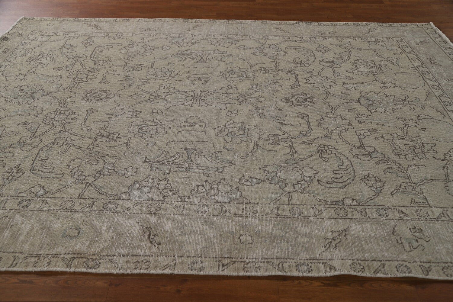 A Beautiful Genuine Persia ( Persia ) Tabriz rug is Hand Knotted by skillful weavers in Persia ( Persia ) with 100% Wool Material. This rug is in Very Good (Evenly Low Pile) condition. dimensions are 9' 7'' X 6' 6'' in foot and 292 X 198 in centimeter. the primary color is Beige & Ivories.