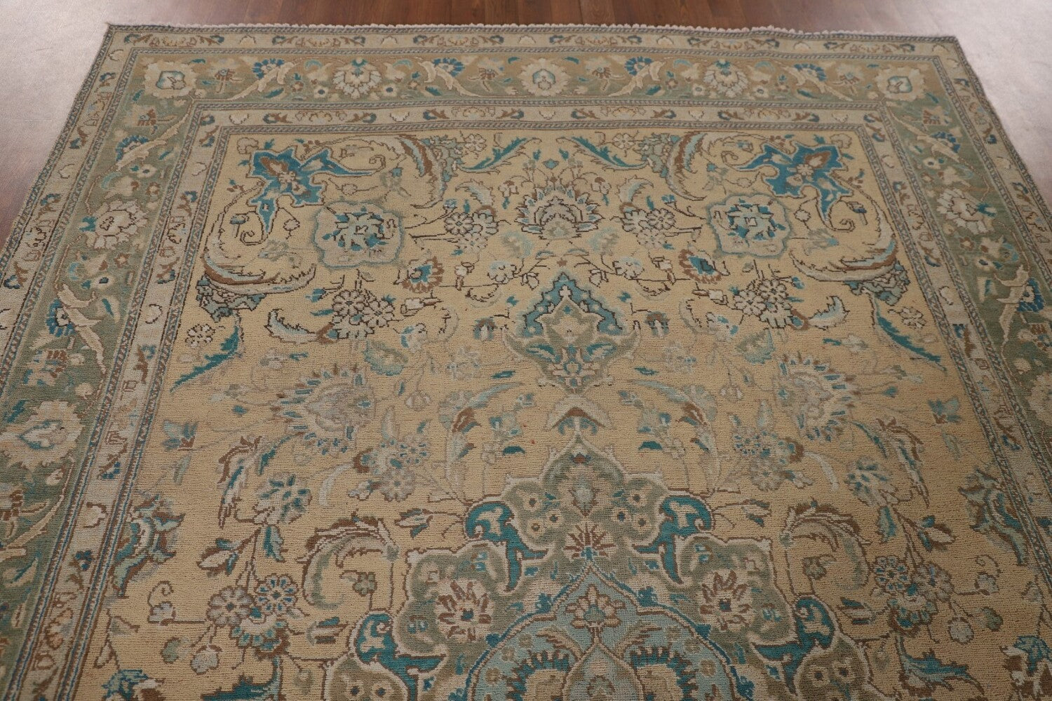 A Beautiful Genuine Persia ( Persia ) Tabriz rug is Hand Knotted by skillful weavers in Persia ( Persia ) with 100% Wool Material. This rug is in Very Good (Evenly Low Pile) condition. dimensions are 10' 2'' X 6' 8'' in foot and 310 X 203 in centimeter. the primary color is Peach.
