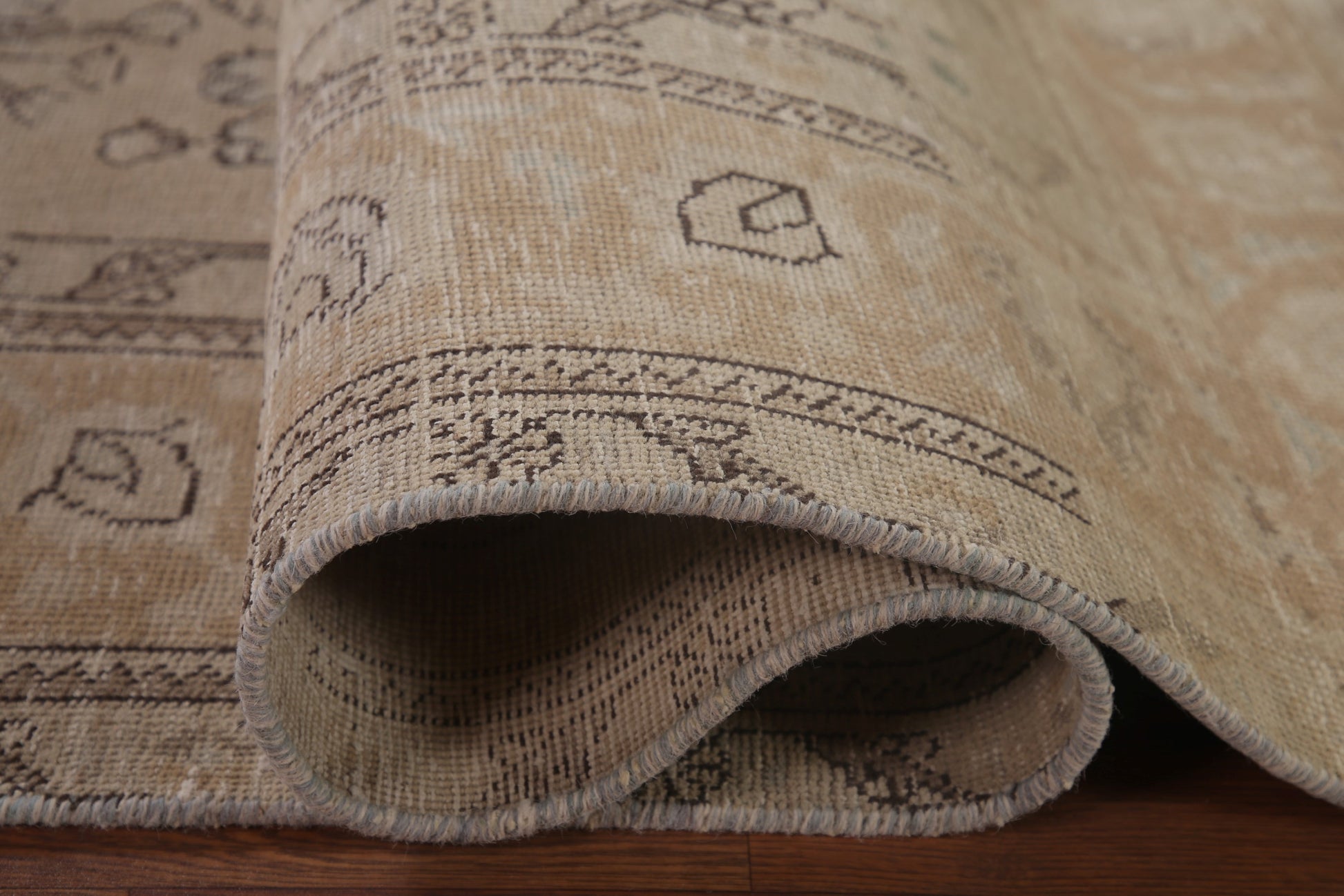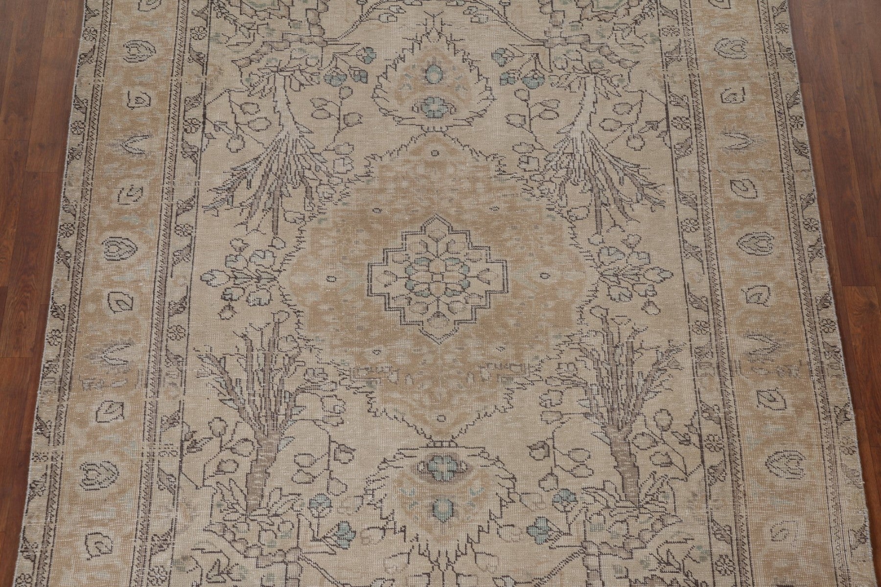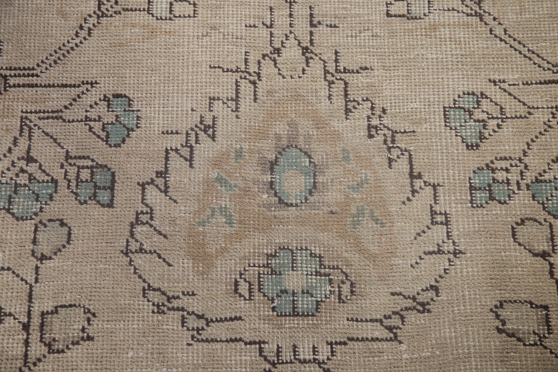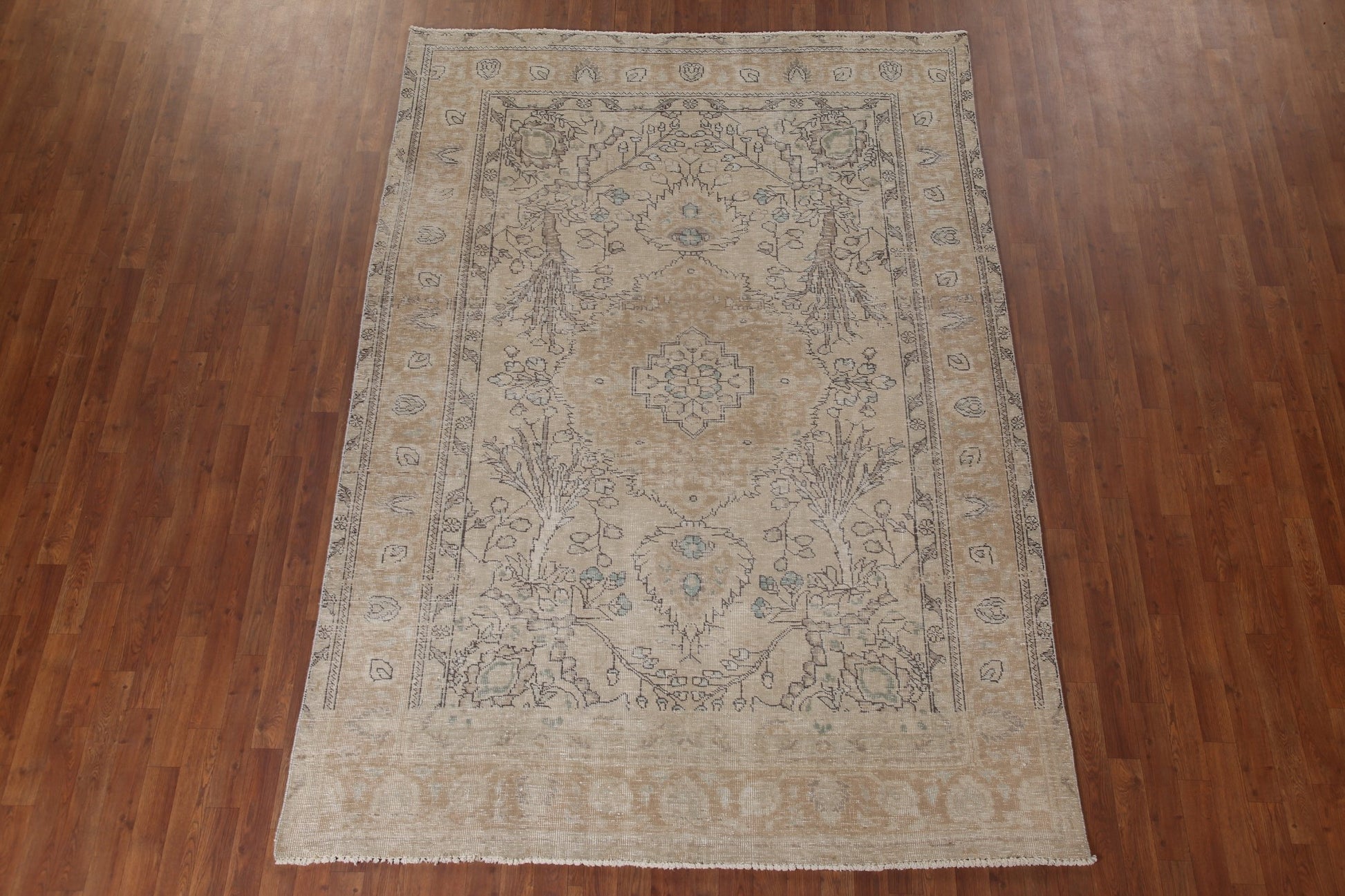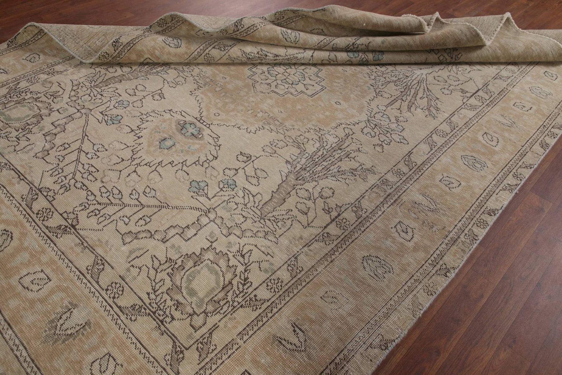 A Beautiful Genuine Persia ( Persia ) Tabriz rug is Hand Knotted by skillful weavers in Persia ( Persia ) with 100% Wool Material. This rug is in Very Good (Low Pile-Abrash) condition. dimensions are 9' 3'' X 6' 6'' in foot and 282 X 198 in centimeter. the primary color is Beige & Ivories.