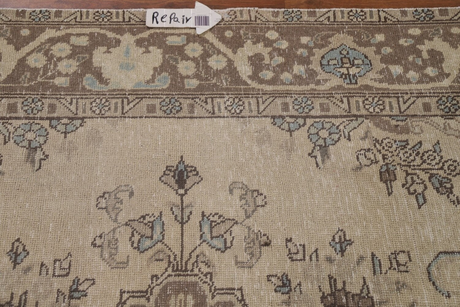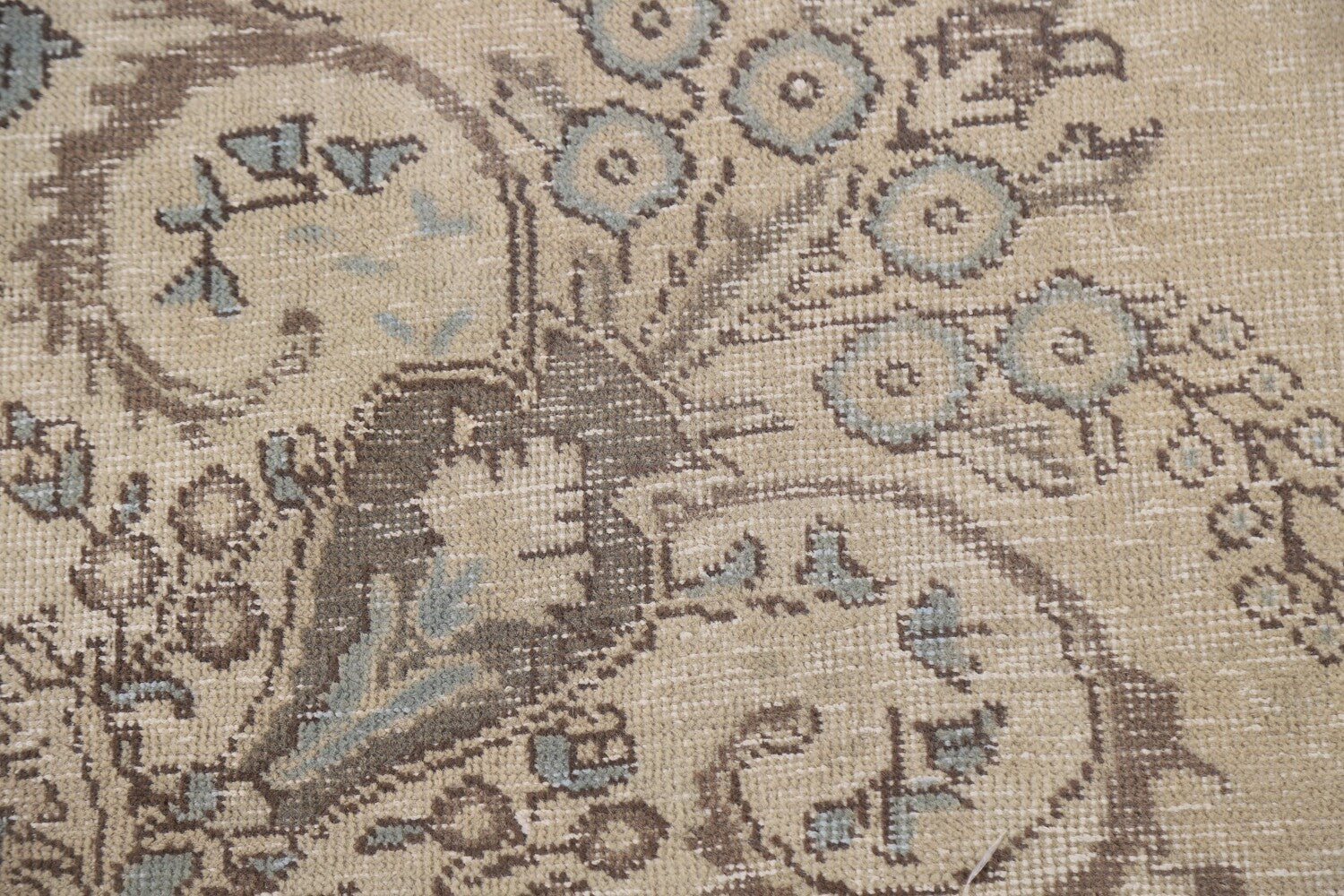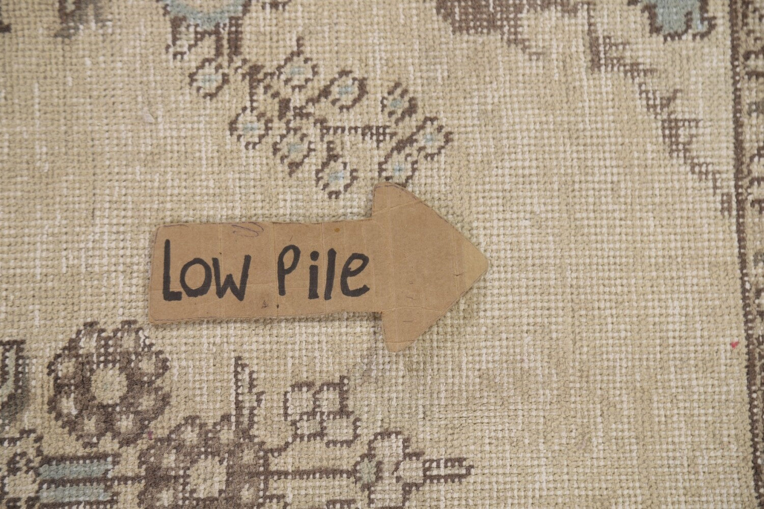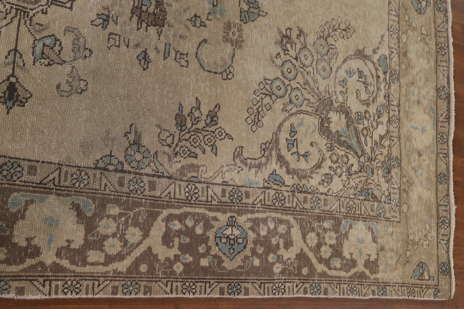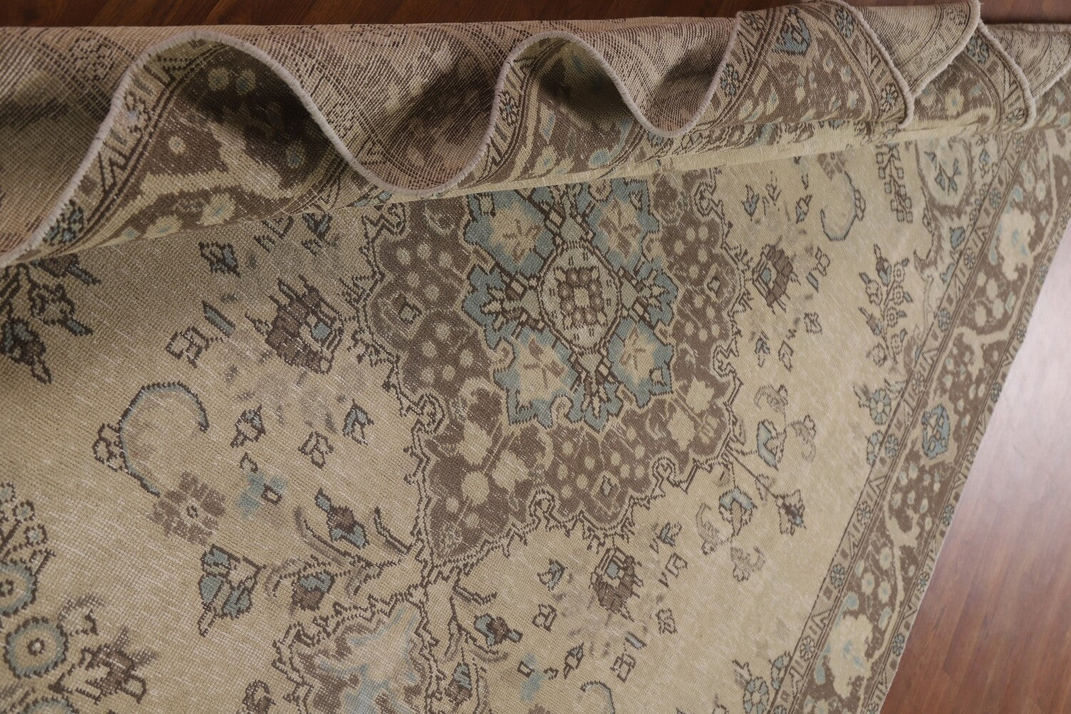 A Beautiful Genuine Persia ( Persia ) Tabriz rug is Hand Knotted by skillful weavers in Persia ( Persia ) with 100% Wool Material. This rug is in Very Good (Low Pile-Abrash-Repair) condition. dimensions are 9' 2'' X 6' 8'' in foot and 279 X 203 in centimeter. the primary color is Beige & Ivories.