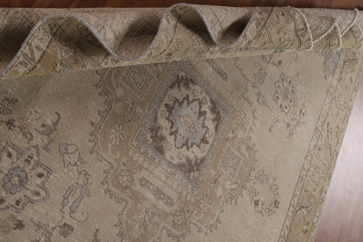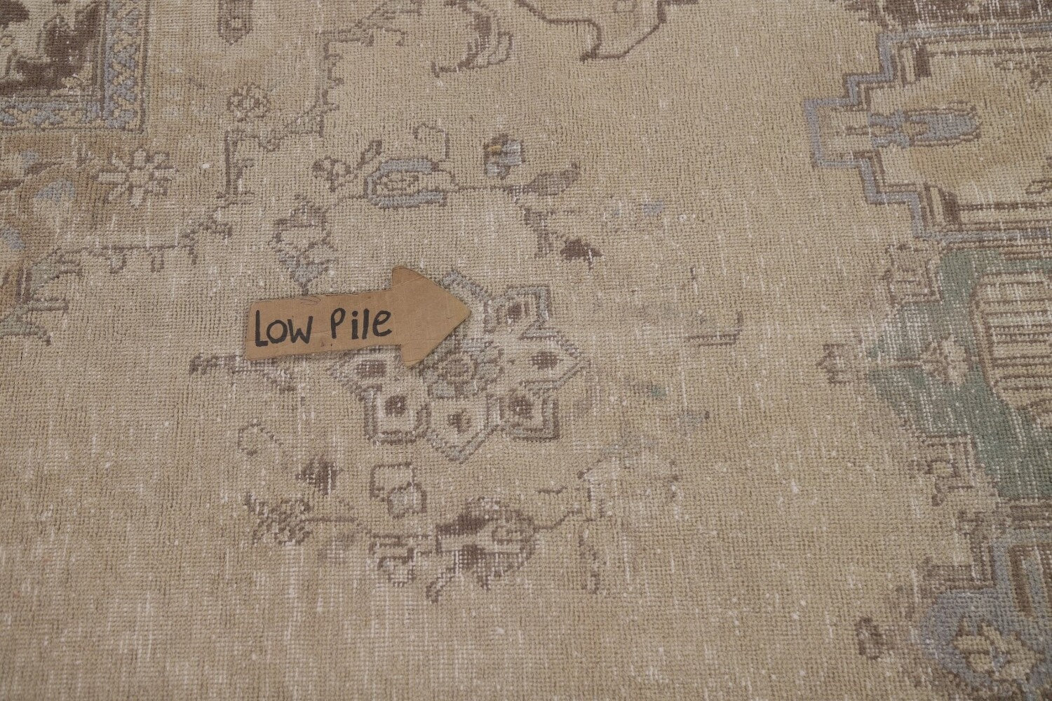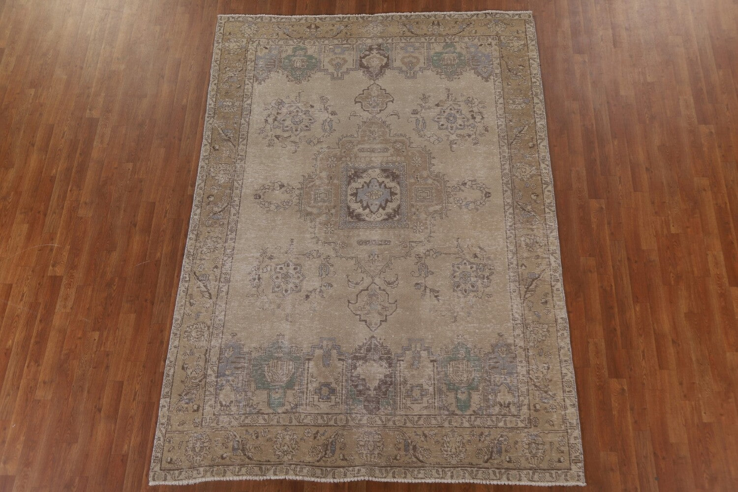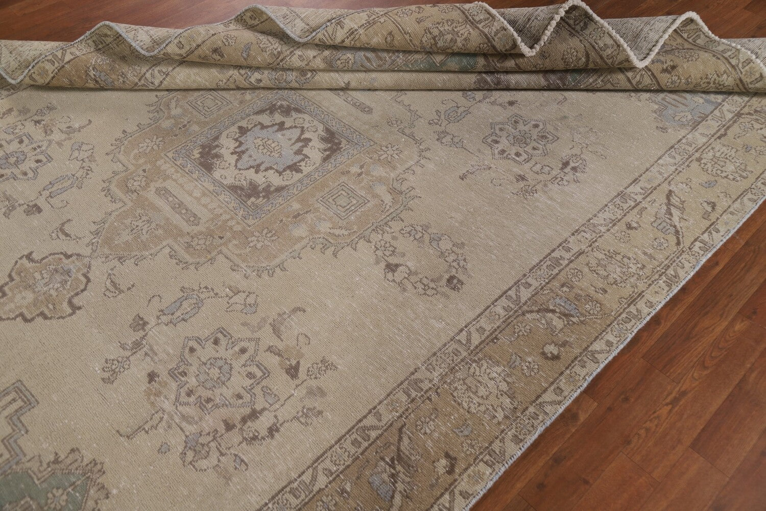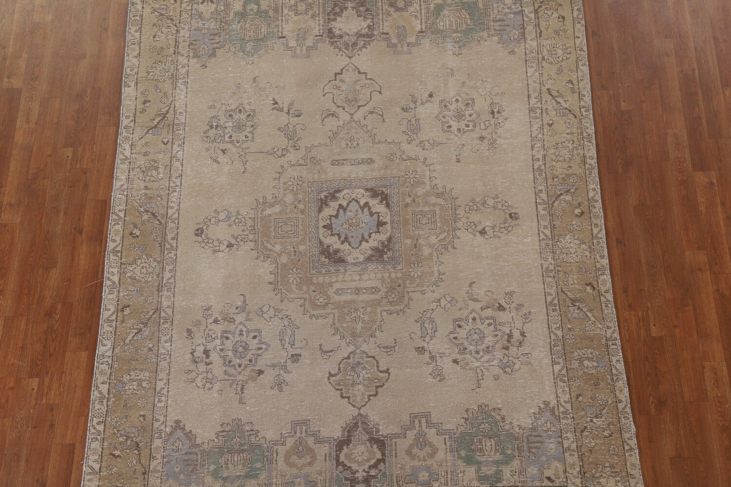 A Beautiful Genuine Persia ( Persia ) Tabriz rug is Hand Knotted by skillful weavers in Persia ( Persia ) with 100% Wool Material. This rug is in Very Good (Low Pile) condition. dimensions are 9' 1'' X 6' 6'' in foot and 277 X 198 in centimeter. the primary color is Beige & Ivories.