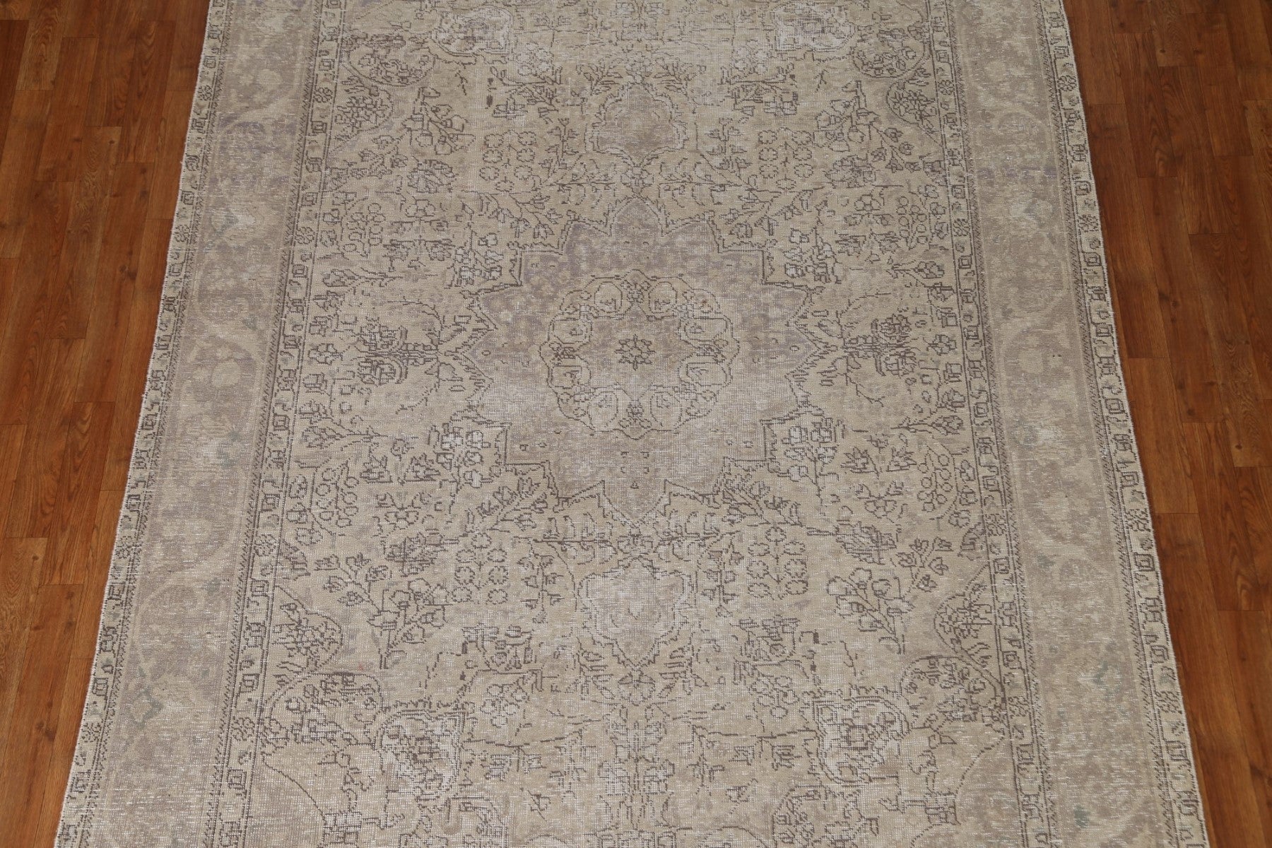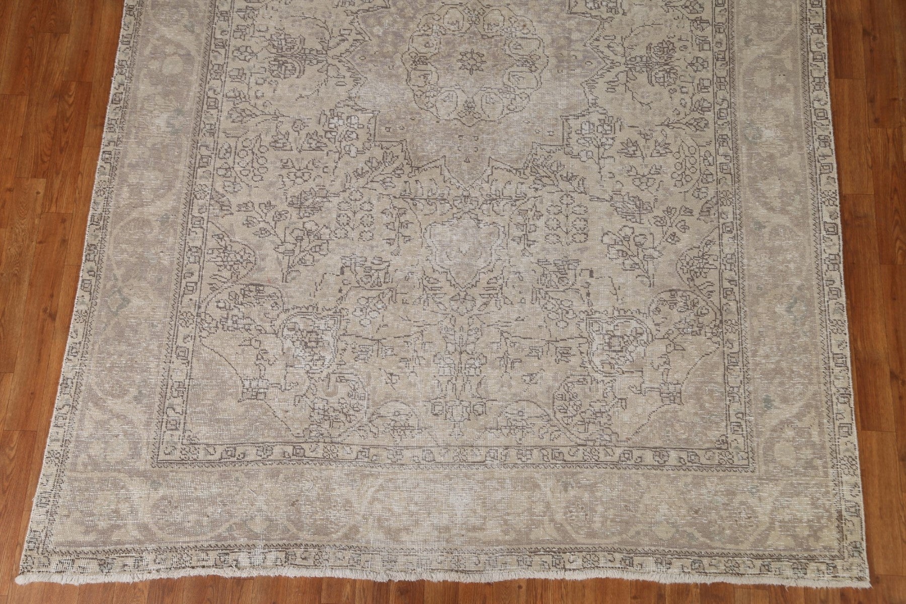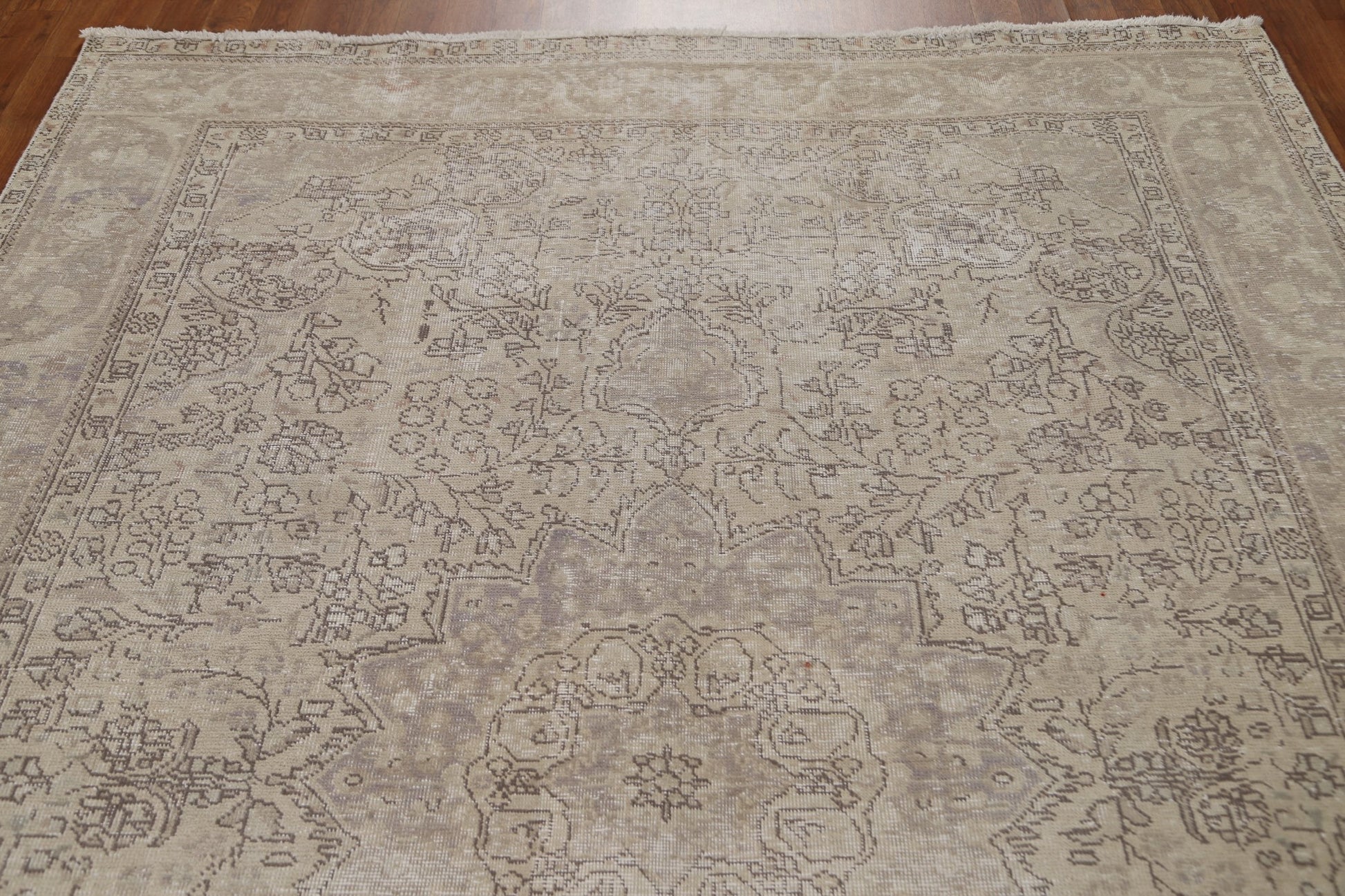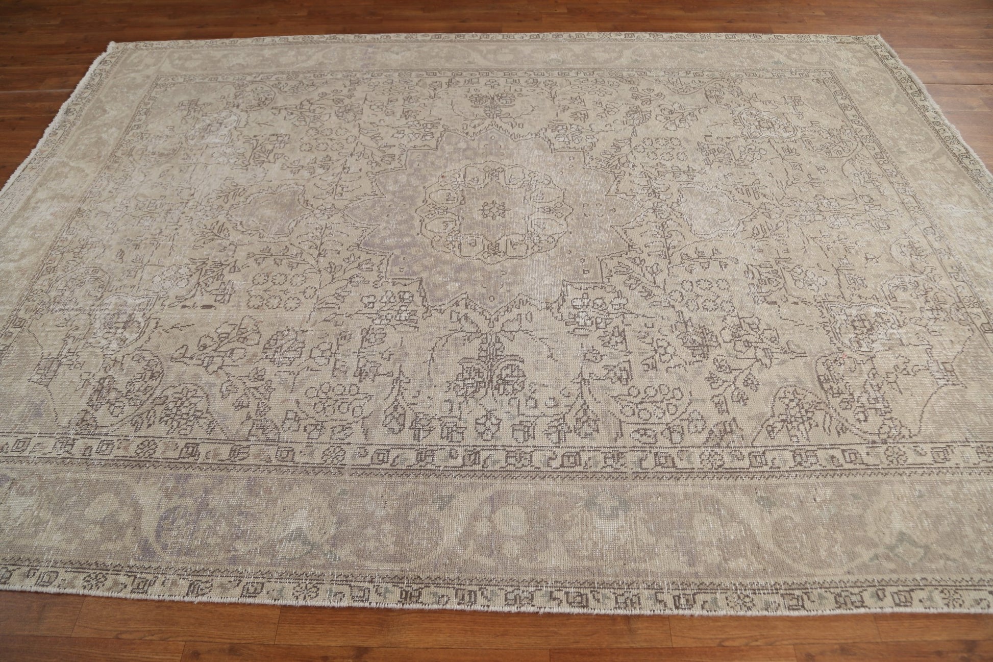 A Beautiful Genuine Persia ( Persia ) Tabriz rug is Hand Knotted by skillful weavers in Persia ( Persia ) with 100% Wool Material. This rug is in Very Good (Evenly Low Pile) condition. dimensions are 9' 4'' X 6' 8'' in foot and 284 X 203 in centimeter. the primary color is Beige & Ivories.
