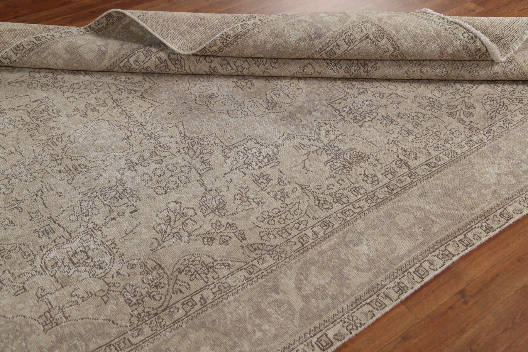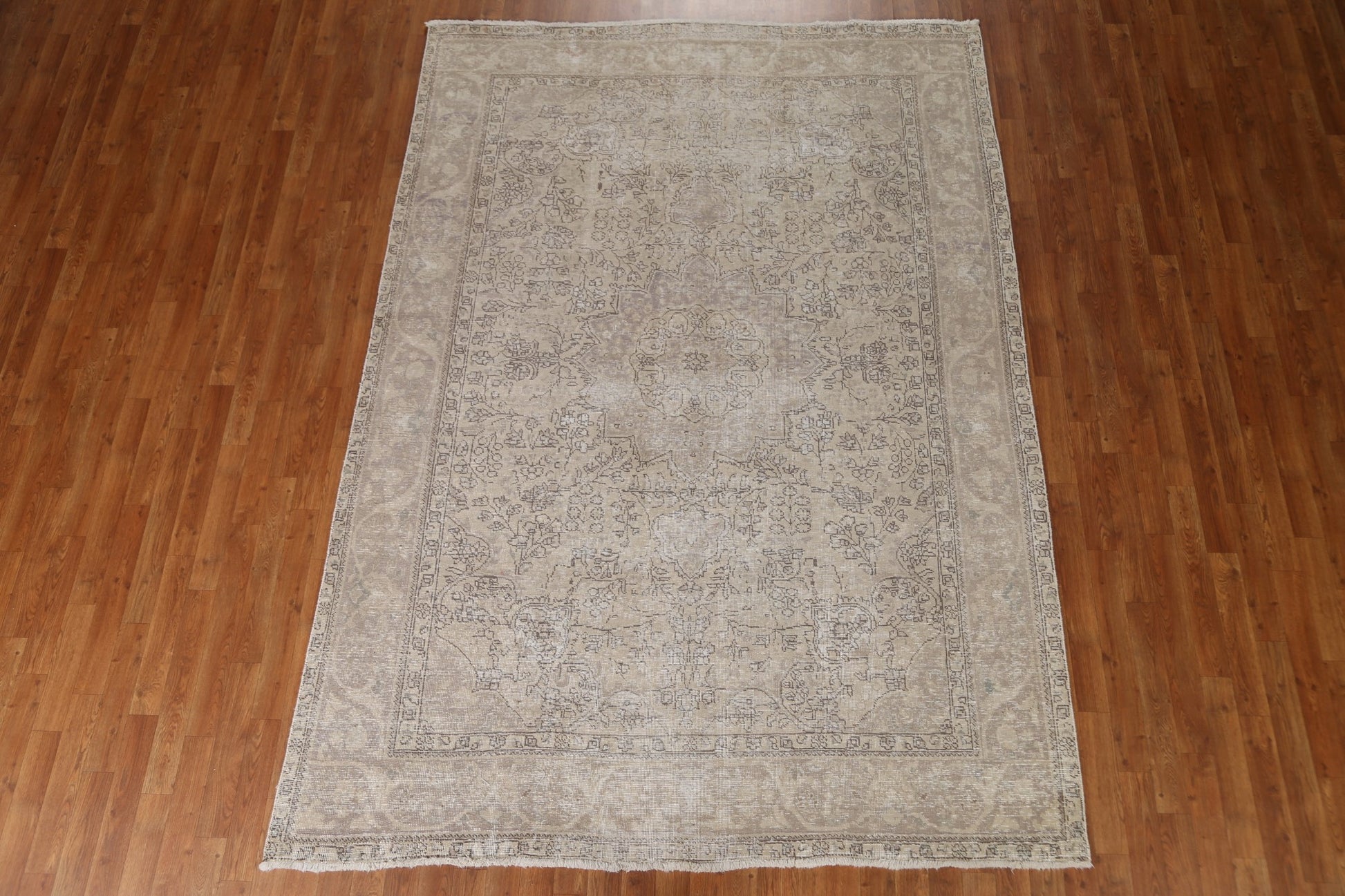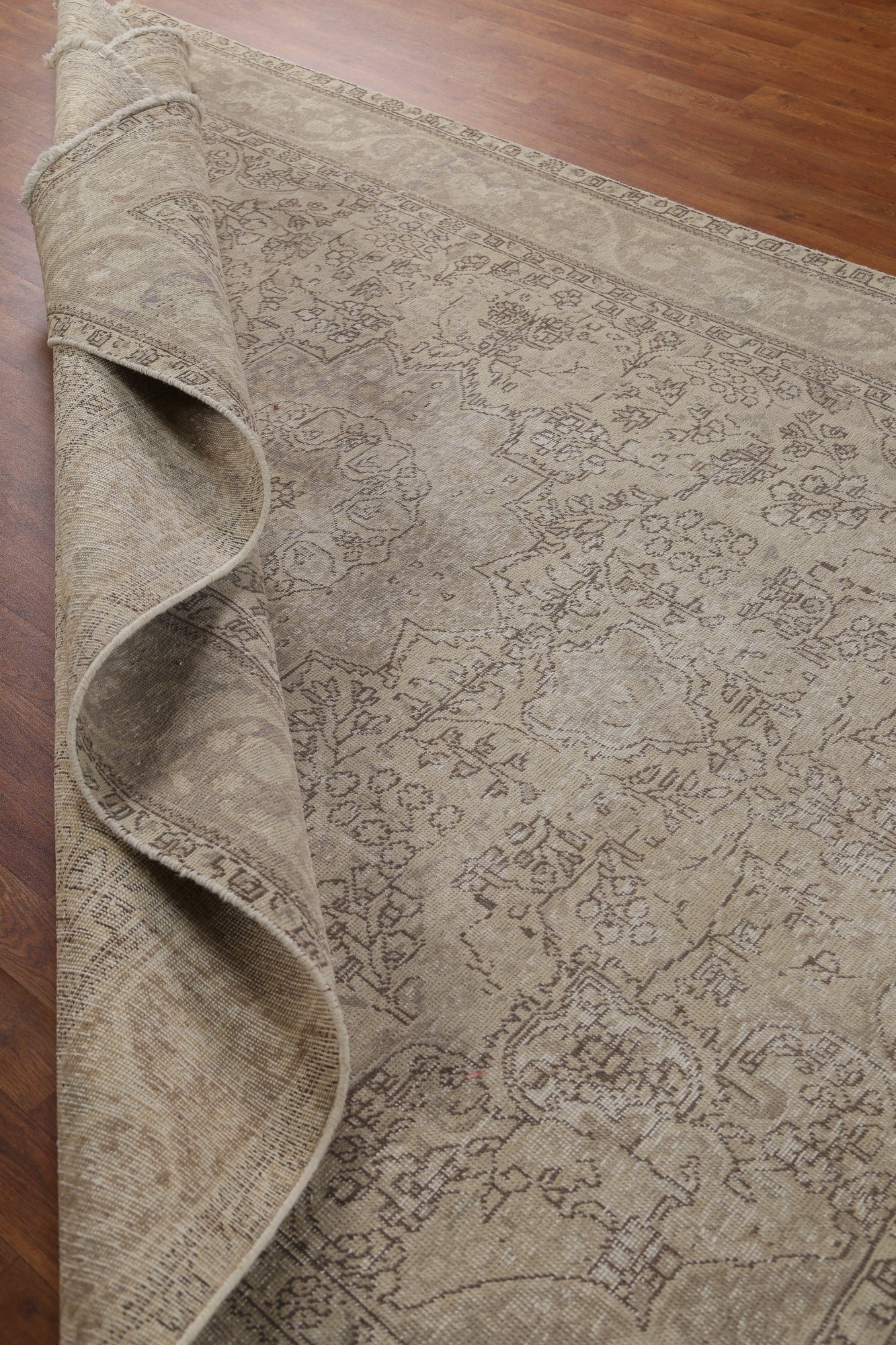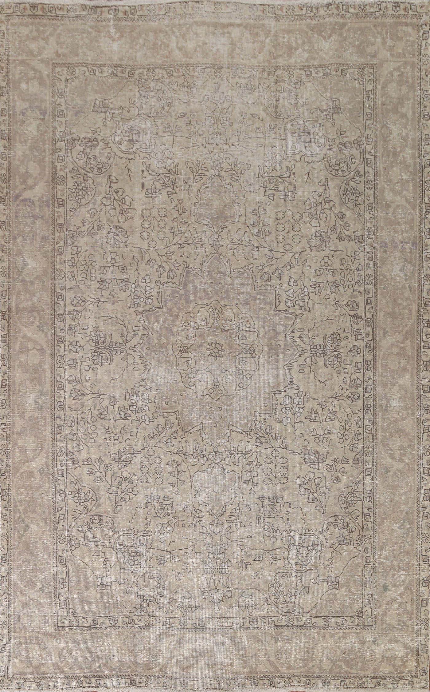 A Beautiful Genuine Persia ( Persia ) Tabriz rug is Hand Knotted by skillful weavers in Persia ( Persia ) with 100% Wool Material. This rug is in Very Good (Evenly Low Pile) condition. dimensions are 9' 4'' X 6' 8'' in foot and 284 X 203 in centimeter. the primary color is Beige & Ivories.