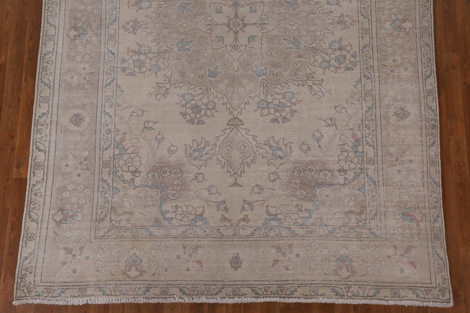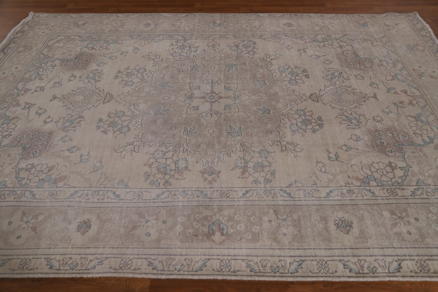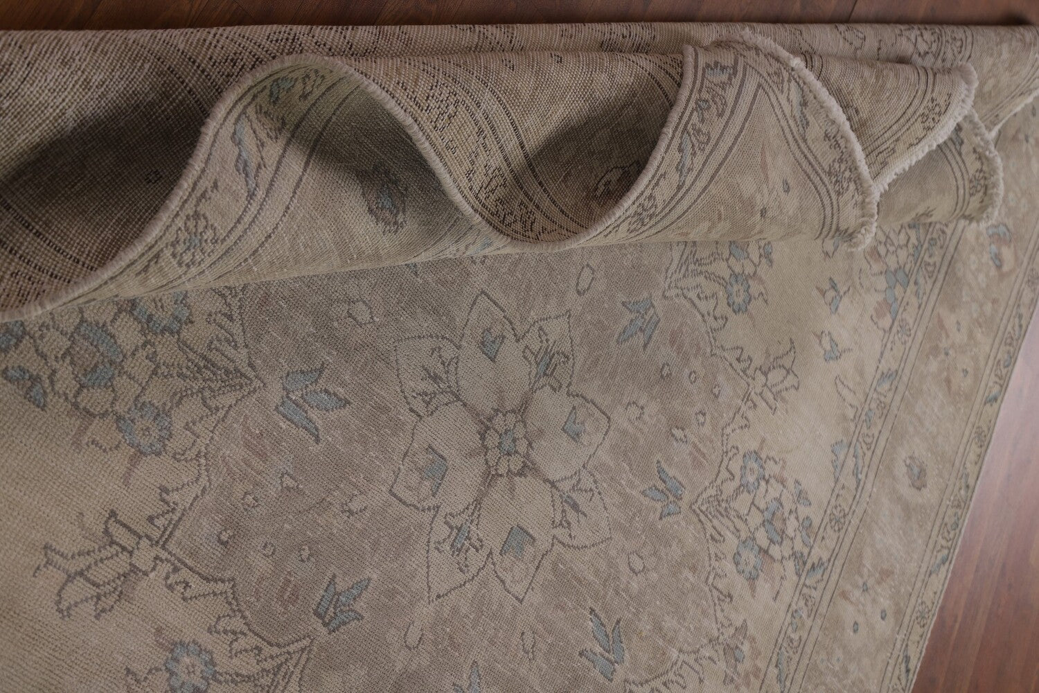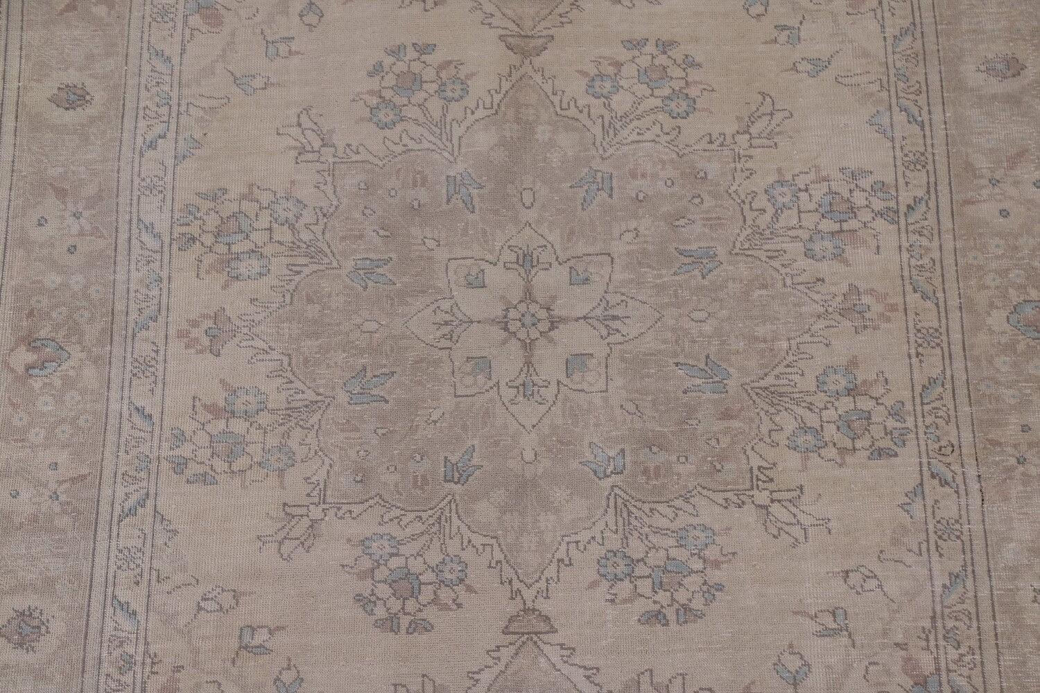 A Beautiful Genuine Persia ( Persia ) Tabriz rug is Hand Knotted by skillful weavers in Persia ( Persia ) with 100% Wool Material. This rug is in Very Good (Evenly Low Pile) condition. dimensions are 9' 4'' X 6' 8'' in foot and 284 X 203 in centimeter. the primary color is Beige & Ivories.