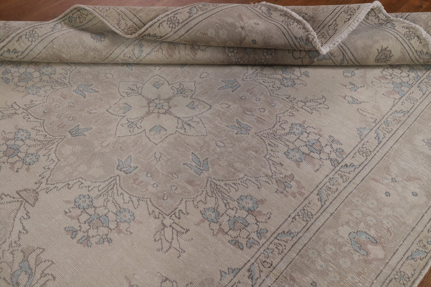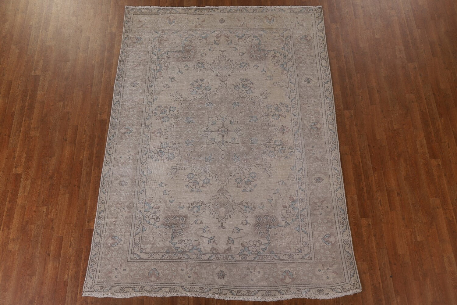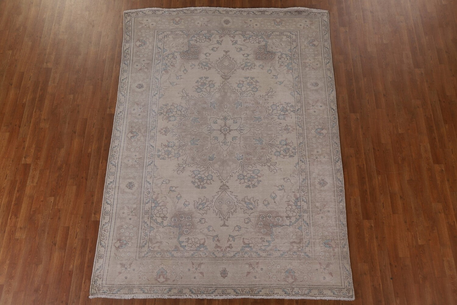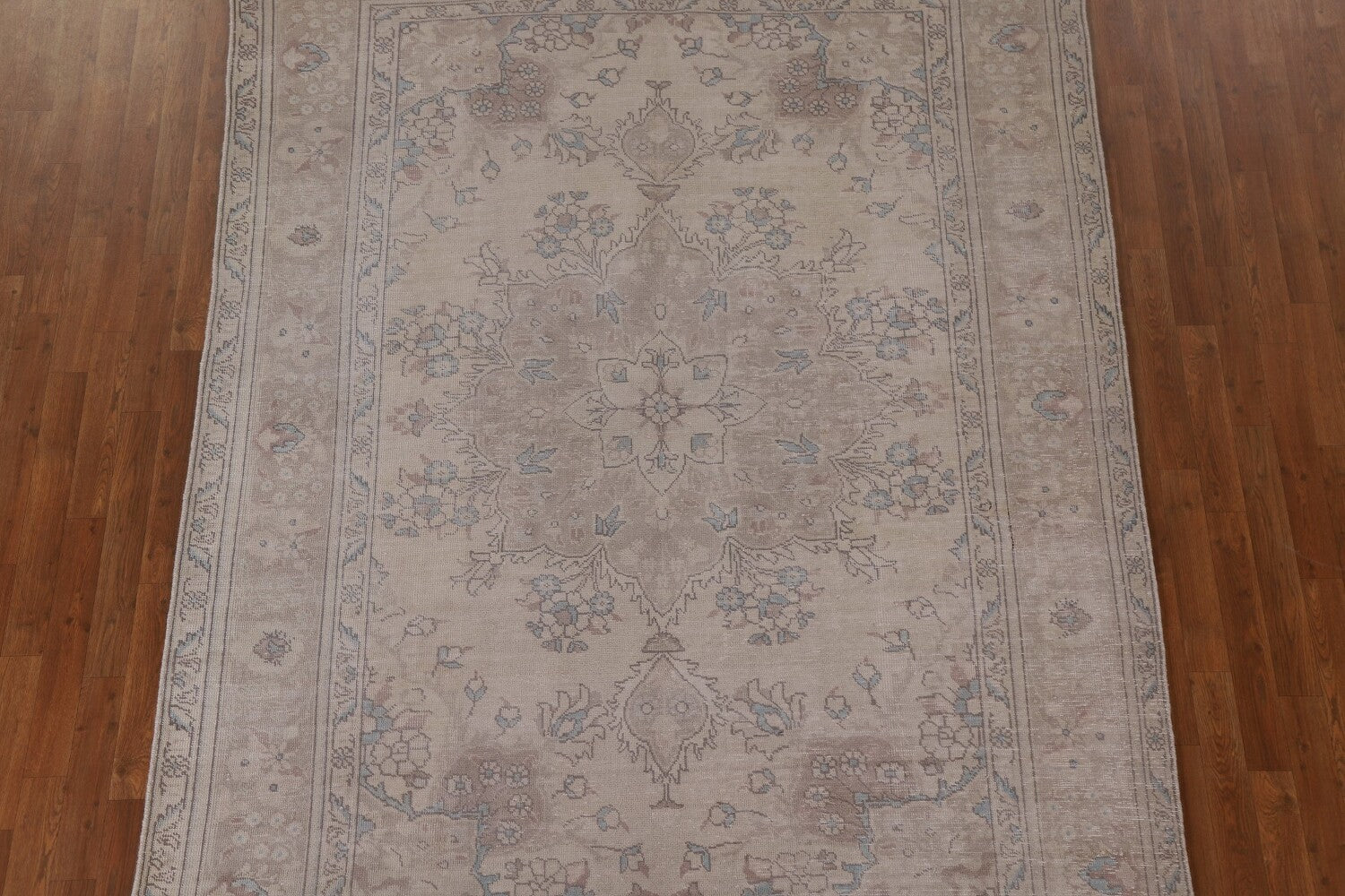 A Beautiful Genuine Persia ( Persia ) Tabriz rug is Hand Knotted by skillful weavers in Persia ( Persia ) with 100% Wool Material. This rug is in Very Good (Evenly Low Pile) condition. dimensions are 9' 4'' X 6' 8'' in foot and 284 X 203 in centimeter. the primary color is Beige & Ivories.