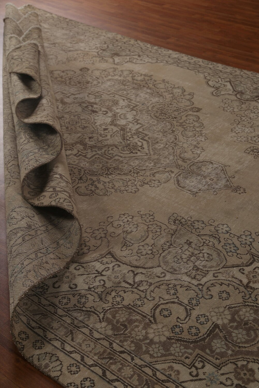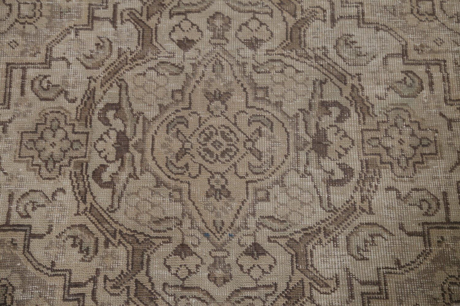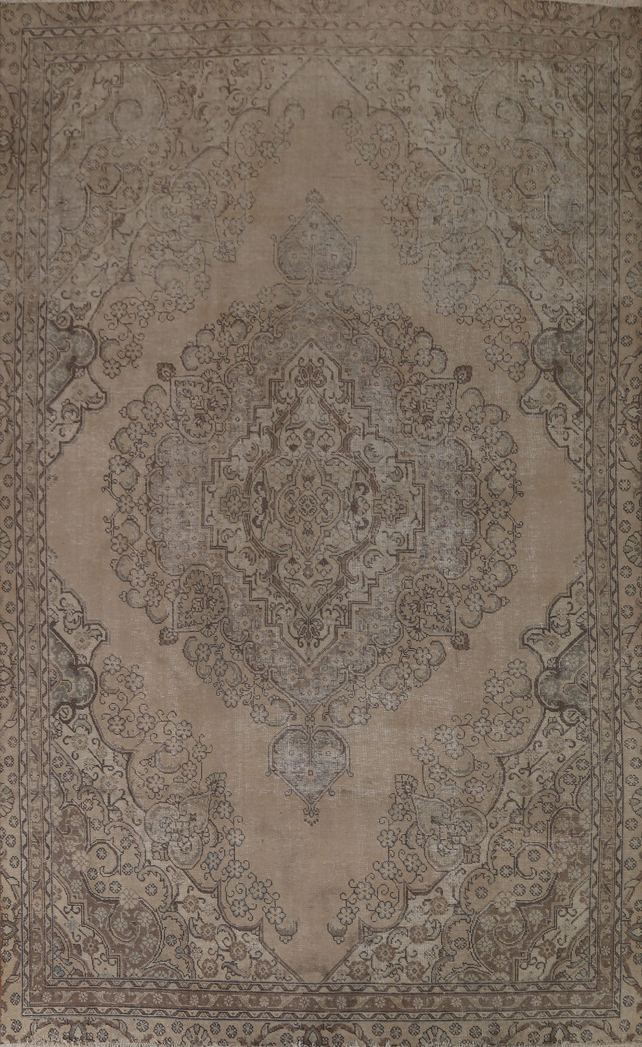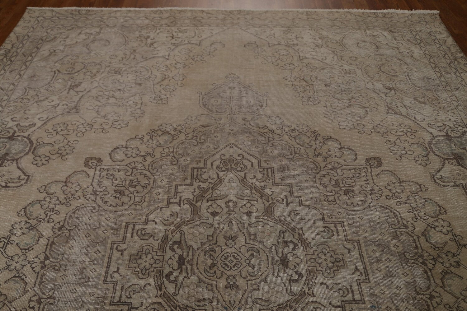 A Beautiful Genuine Persia ( Persia ) Tabriz rug is Hand Knotted by skillful weavers in Persia ( Persia ) with 100% Wool Material. This rug is in Very Good (Low Pile) condition. dimensions are 10' 11'' X 7' 9'' in foot and 333 X 236 in centimeter. the primary color is Beige & Ivories.