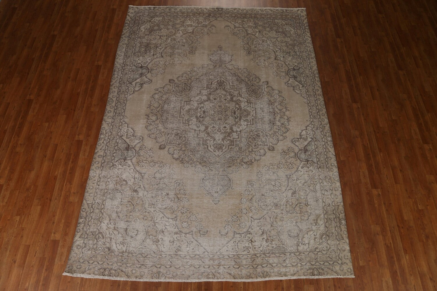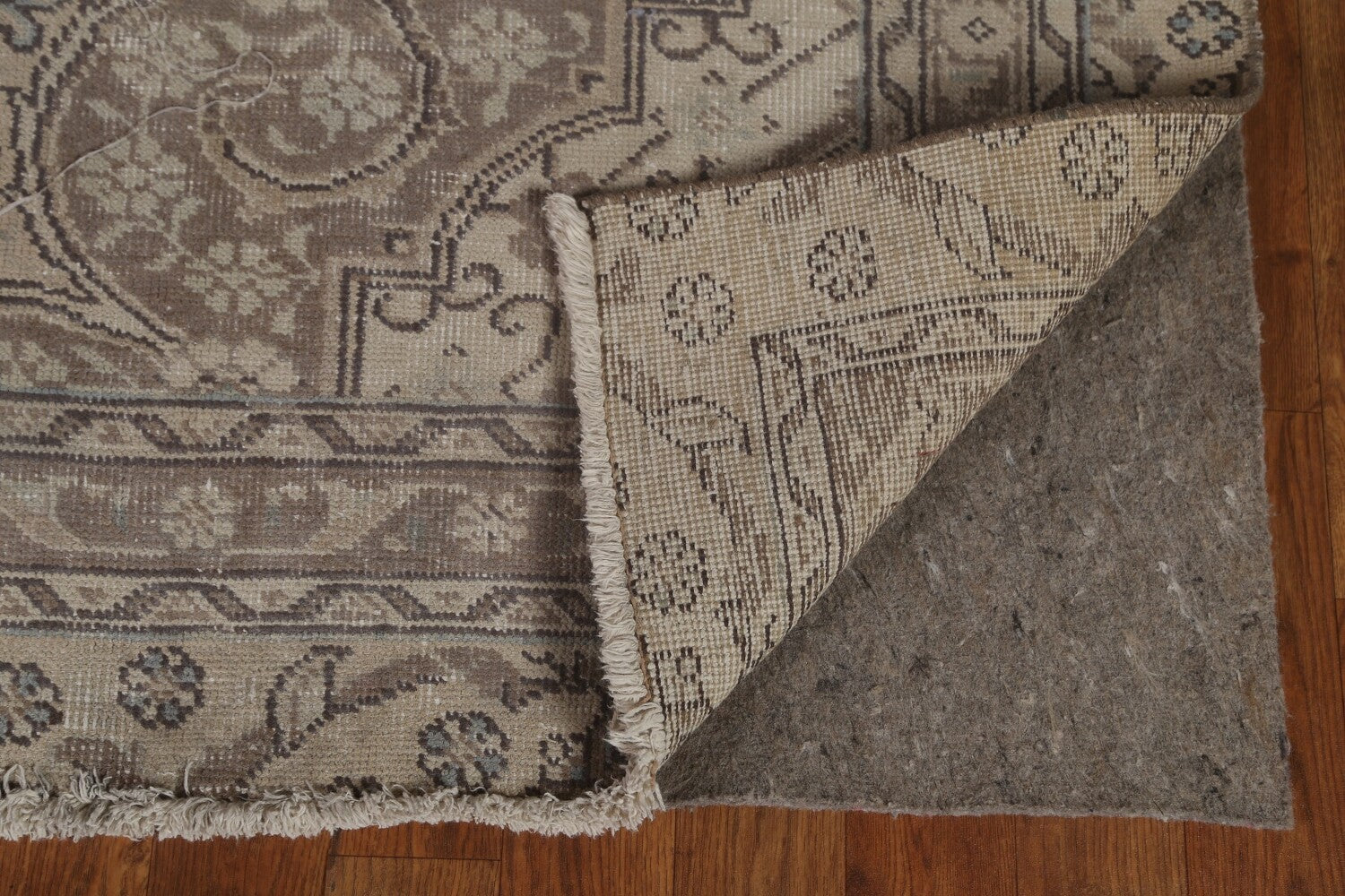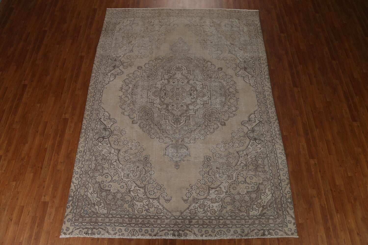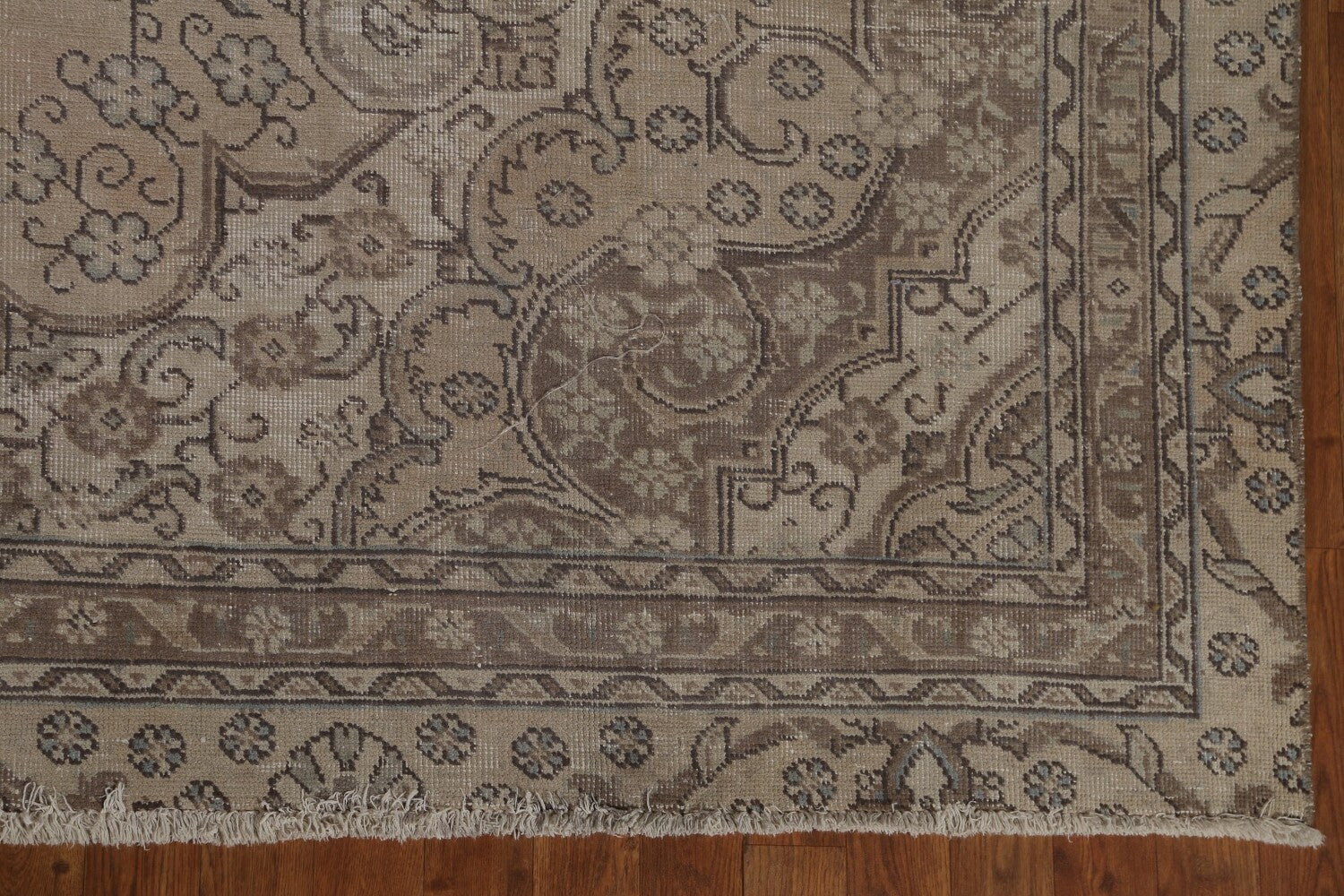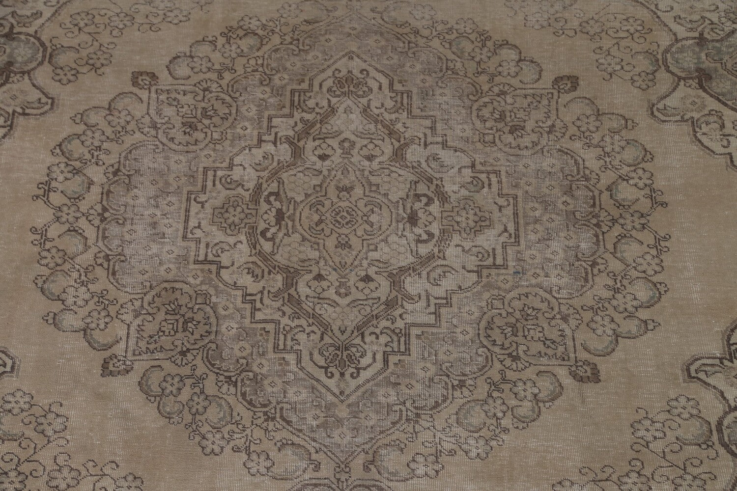 A Beautiful Genuine Persia ( Persia ) Tabriz rug is Hand Knotted by skillful weavers in Persia ( Persia ) with 100% Wool Material. This rug is in Very Good (Low Pile) condition. dimensions are 10' 11'' X 7' 9'' in foot and 333 X 236 in centimeter. the primary color is Beige & Ivories.