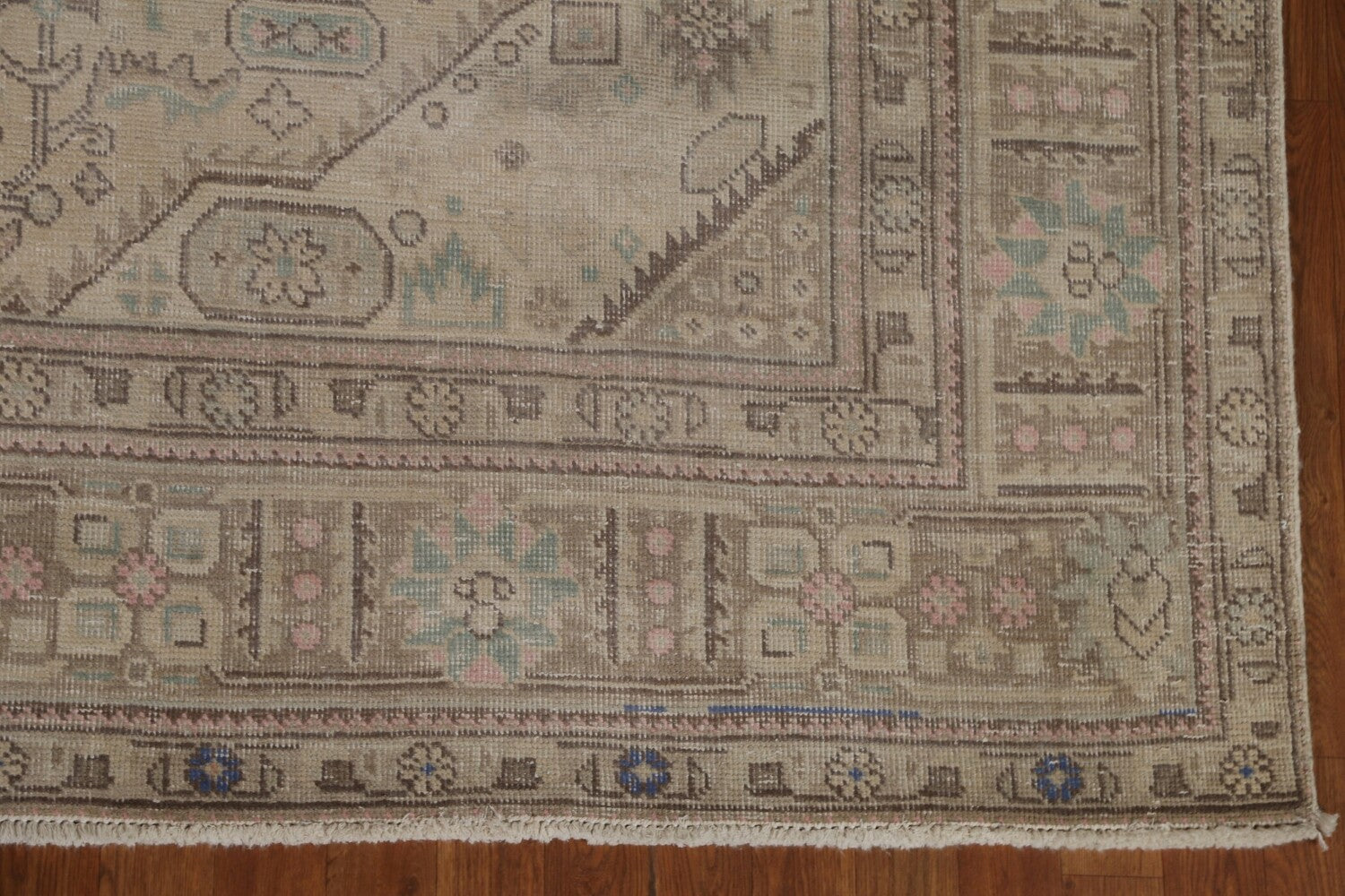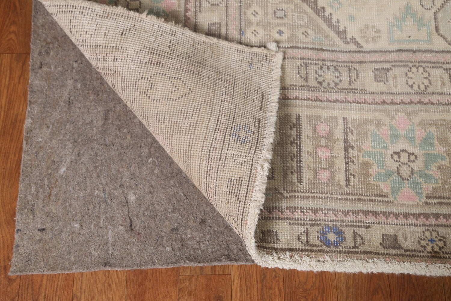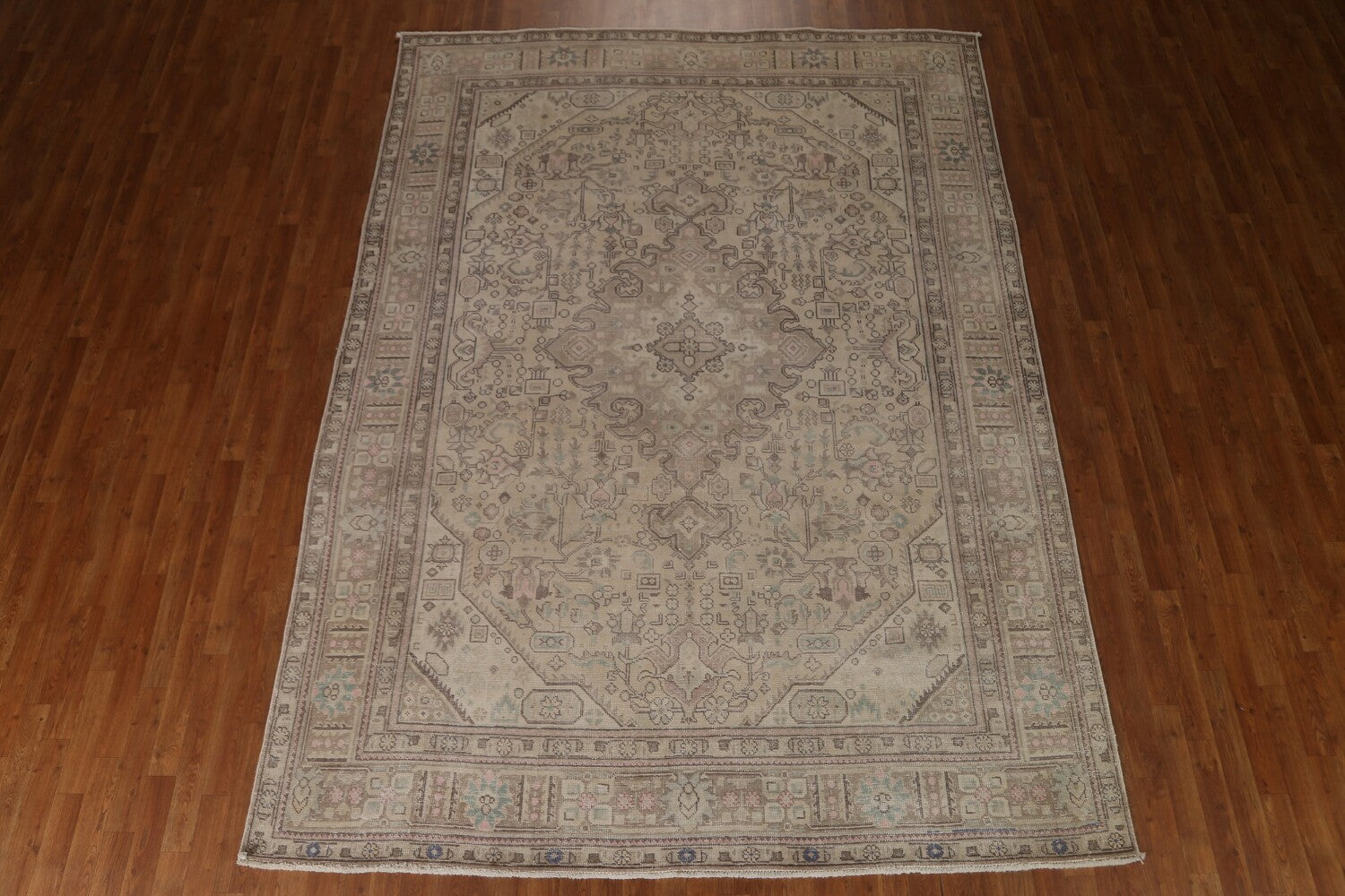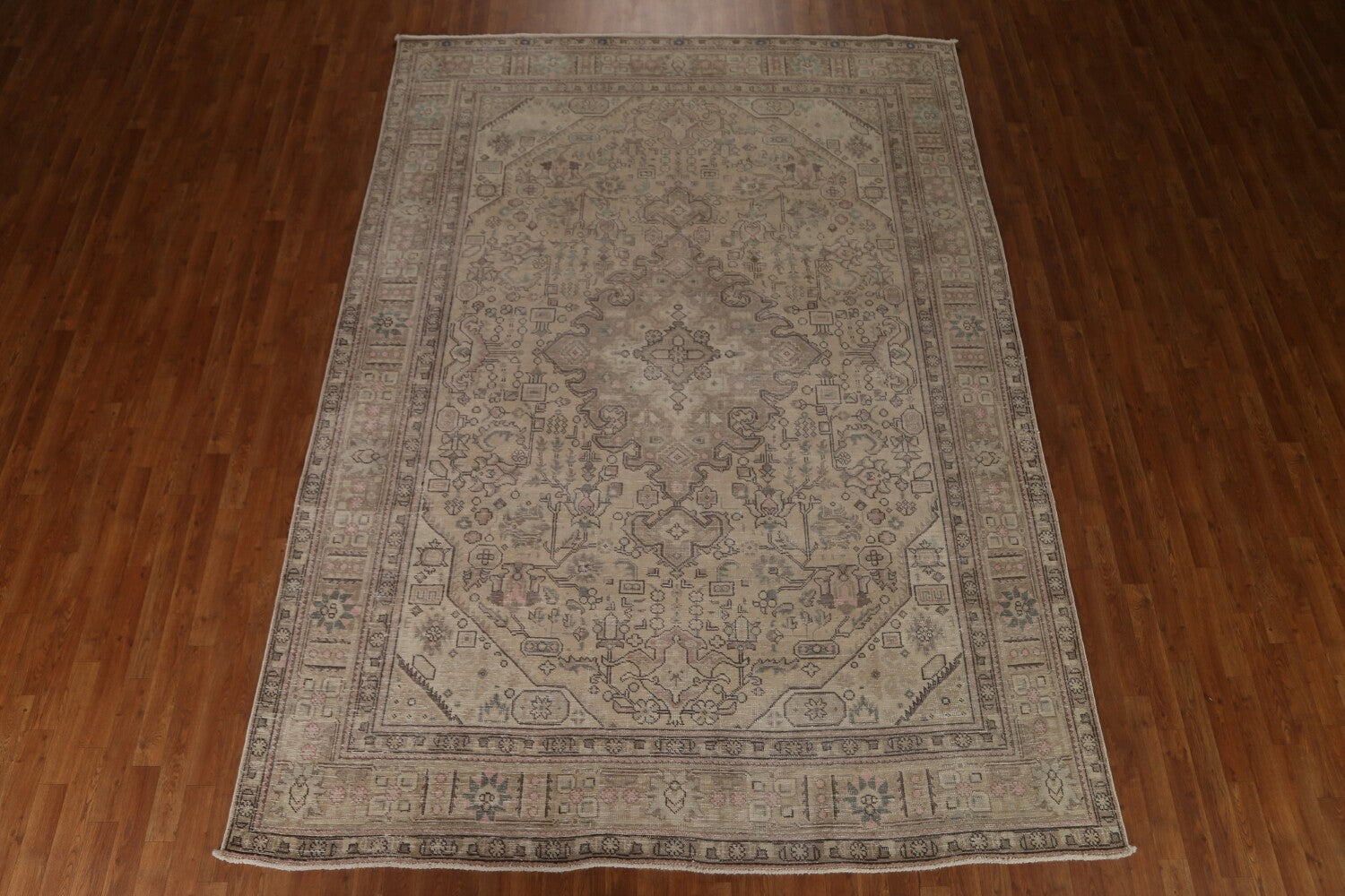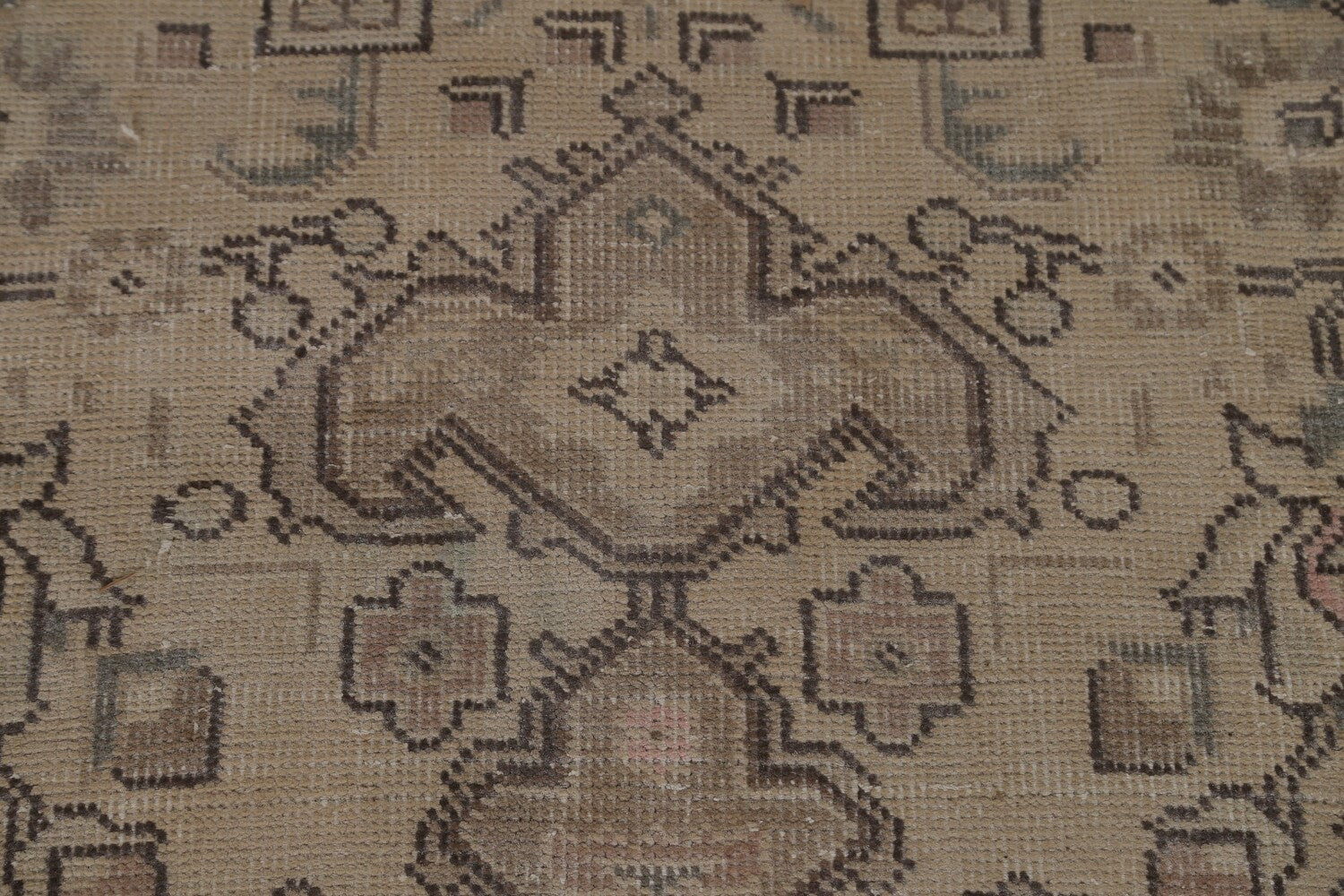 A Beautiful Genuine Persia ( Persia ) Tabriz rug is Hand Knotted by skillful weavers in Persia ( Persia ) with 100% Wool Material. This rug is in Very Good (Evenly Low Pile) condition. dimensions are 10' 10'' X 7' 11'' in foot and 330 X 241 in centimeter. the primary color is Beige & Ivories.