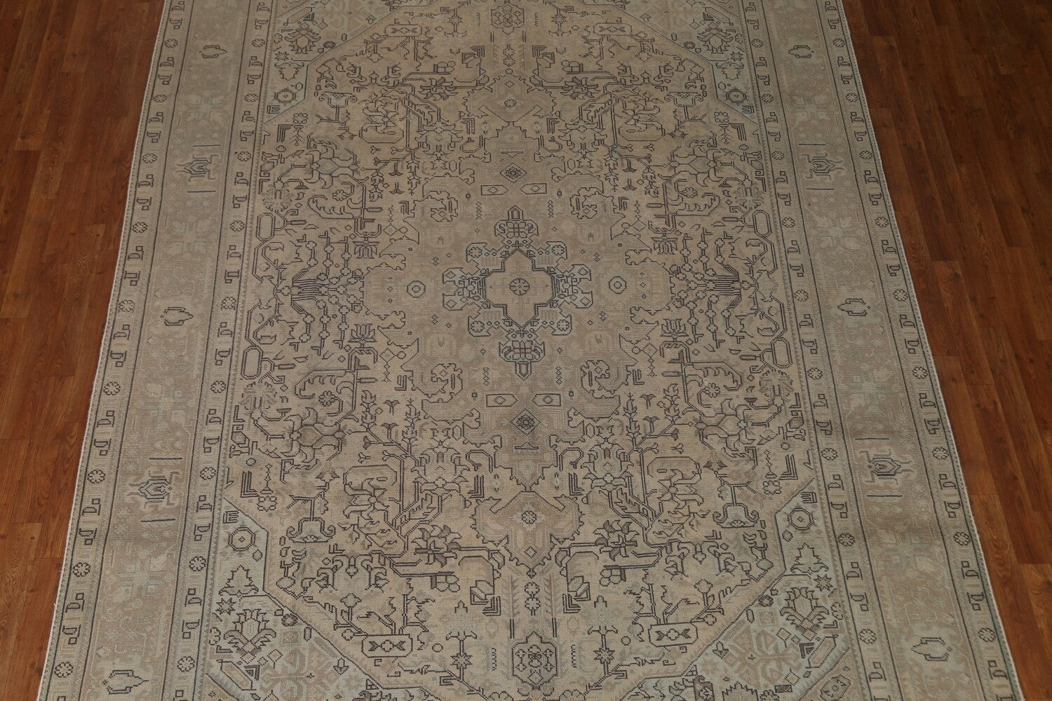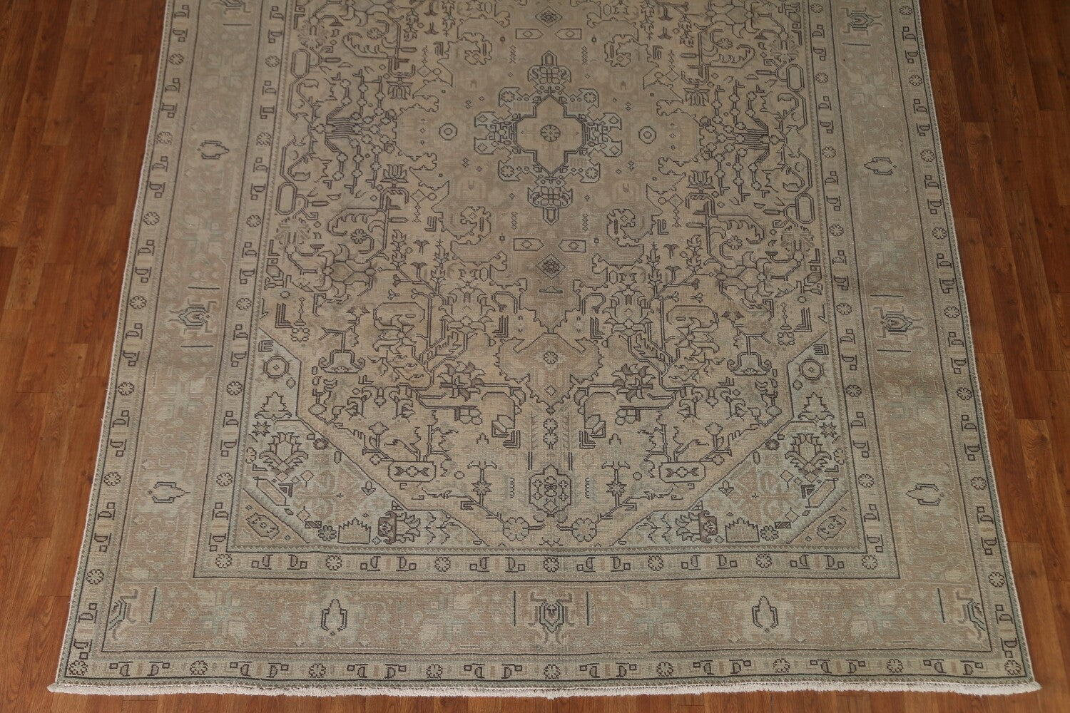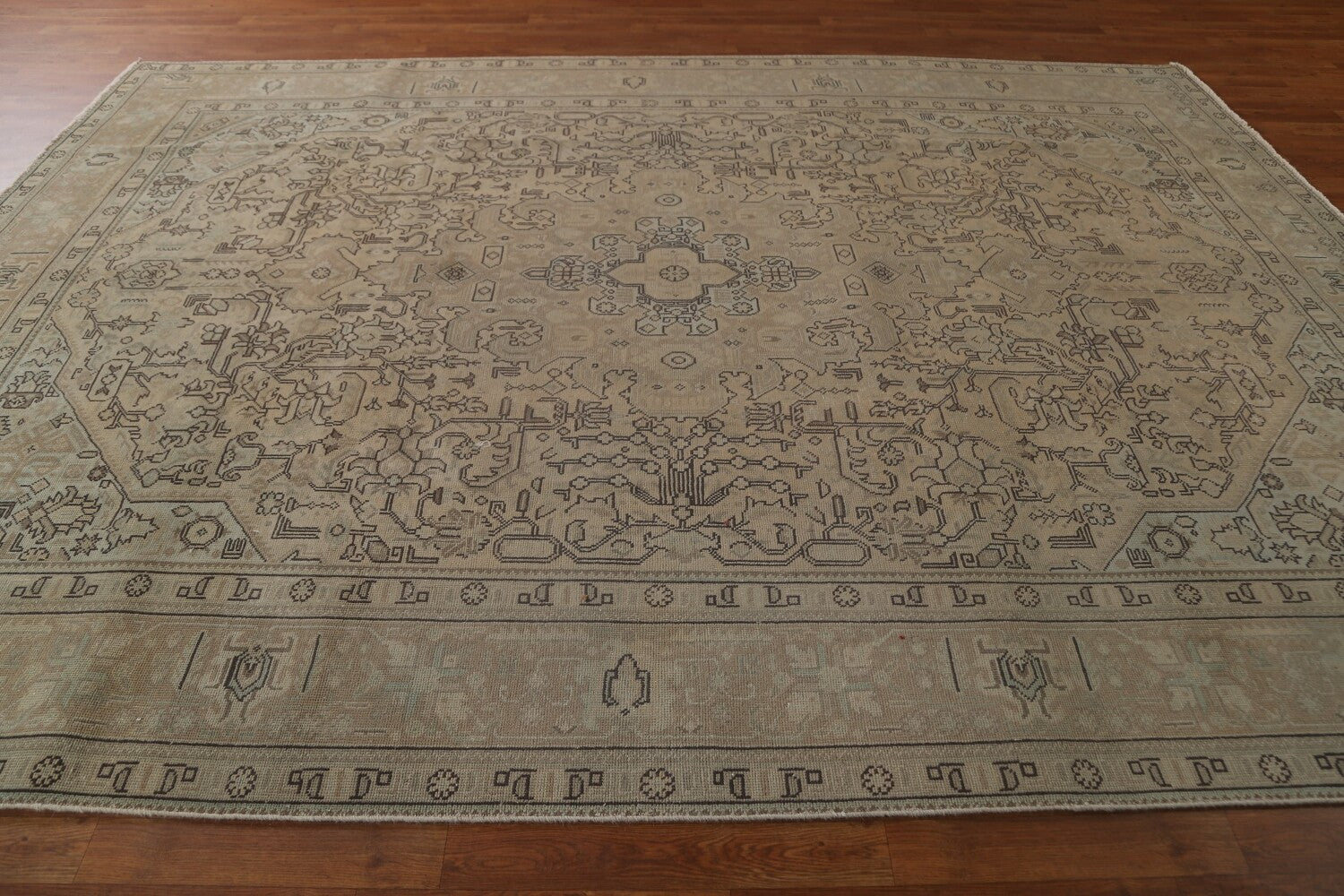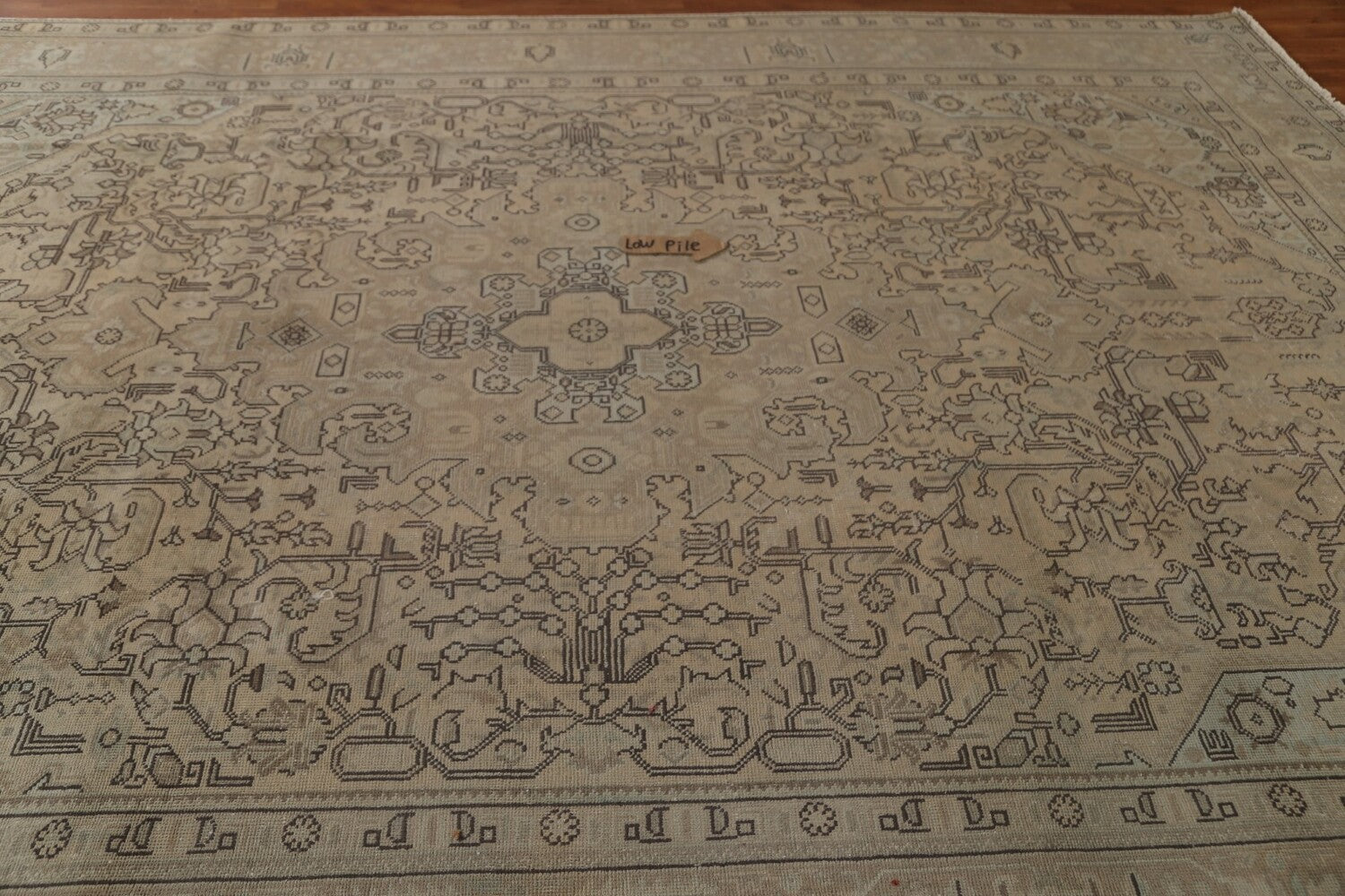 A Beautiful Genuine Persia ( Persia ) Tabriz rug is Hand Knotted by skillful weavers in Persia ( Persia ) with 100% Wool Material. This rug is in Very Good (Low Pile) condition. dimensions are 11' 0'' X 8' 0'' in foot and 335 X 244 in centimeter. the primary color is Beige & Ivories.