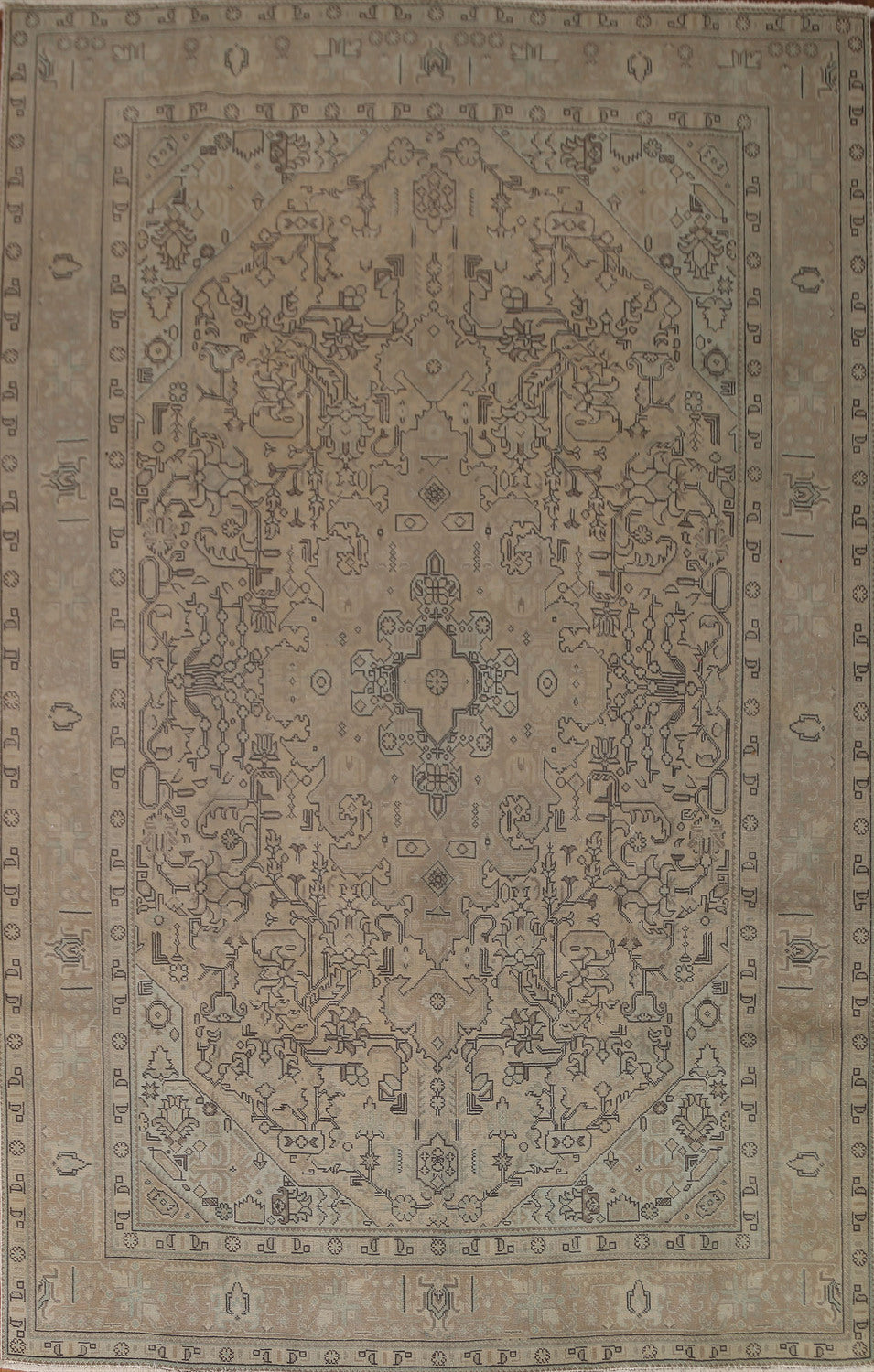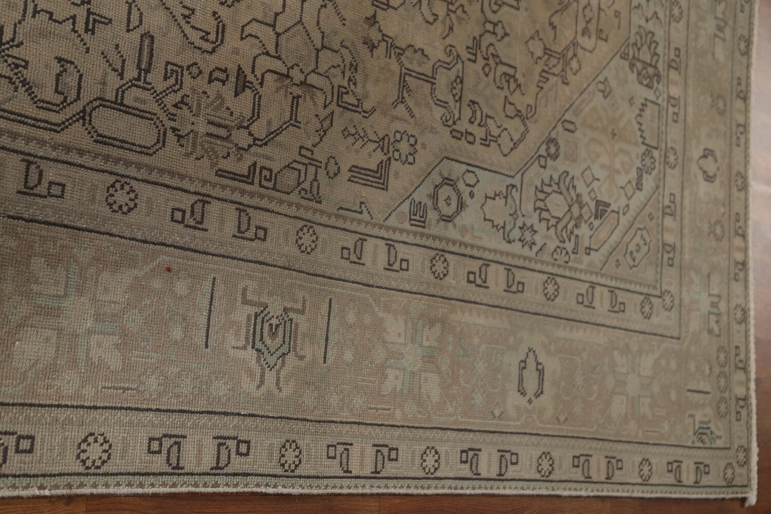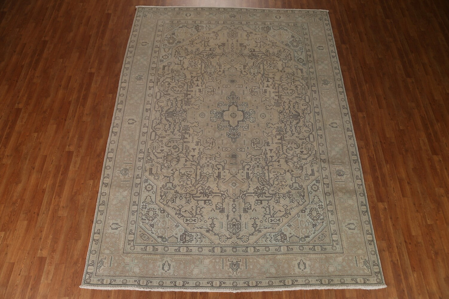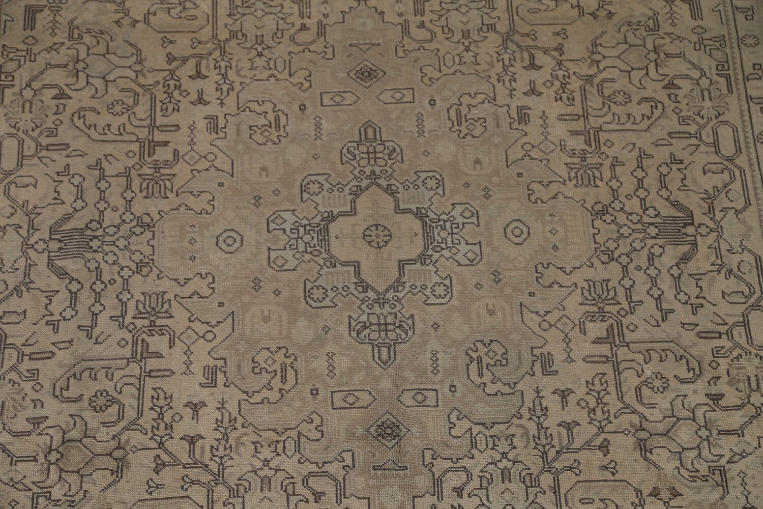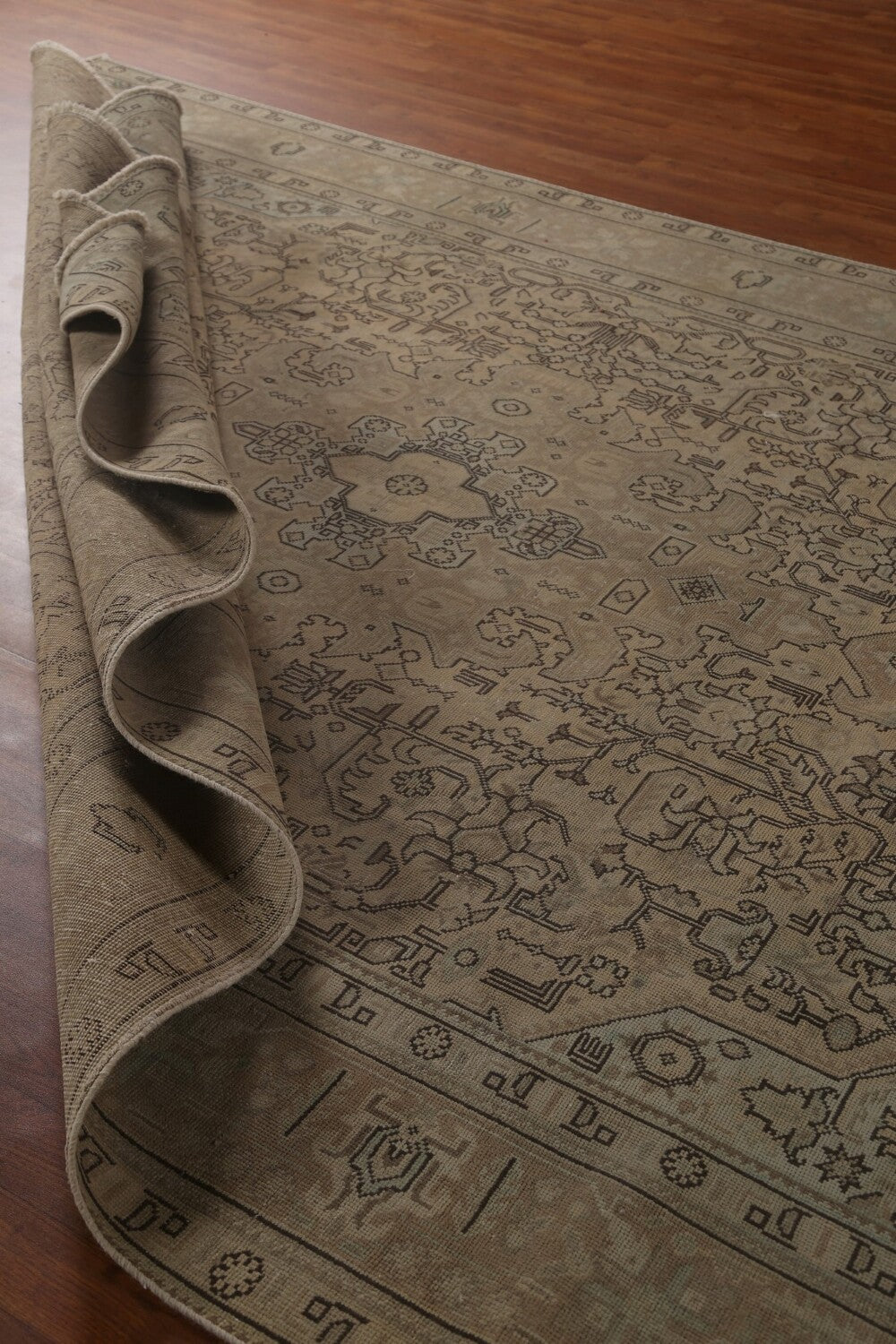 A Beautiful Genuine Persia ( Persia ) Tabriz rug is Hand Knotted by skillful weavers in Persia ( Persia ) with 100% Wool Material. This rug is in Very Good (Low Pile) condition. dimensions are 11' 0'' X 8' 0'' in foot and 335 X 244 in centimeter. the primary color is Beige & Ivories.