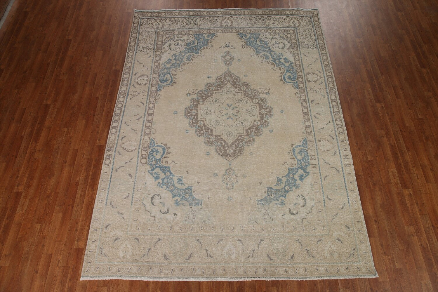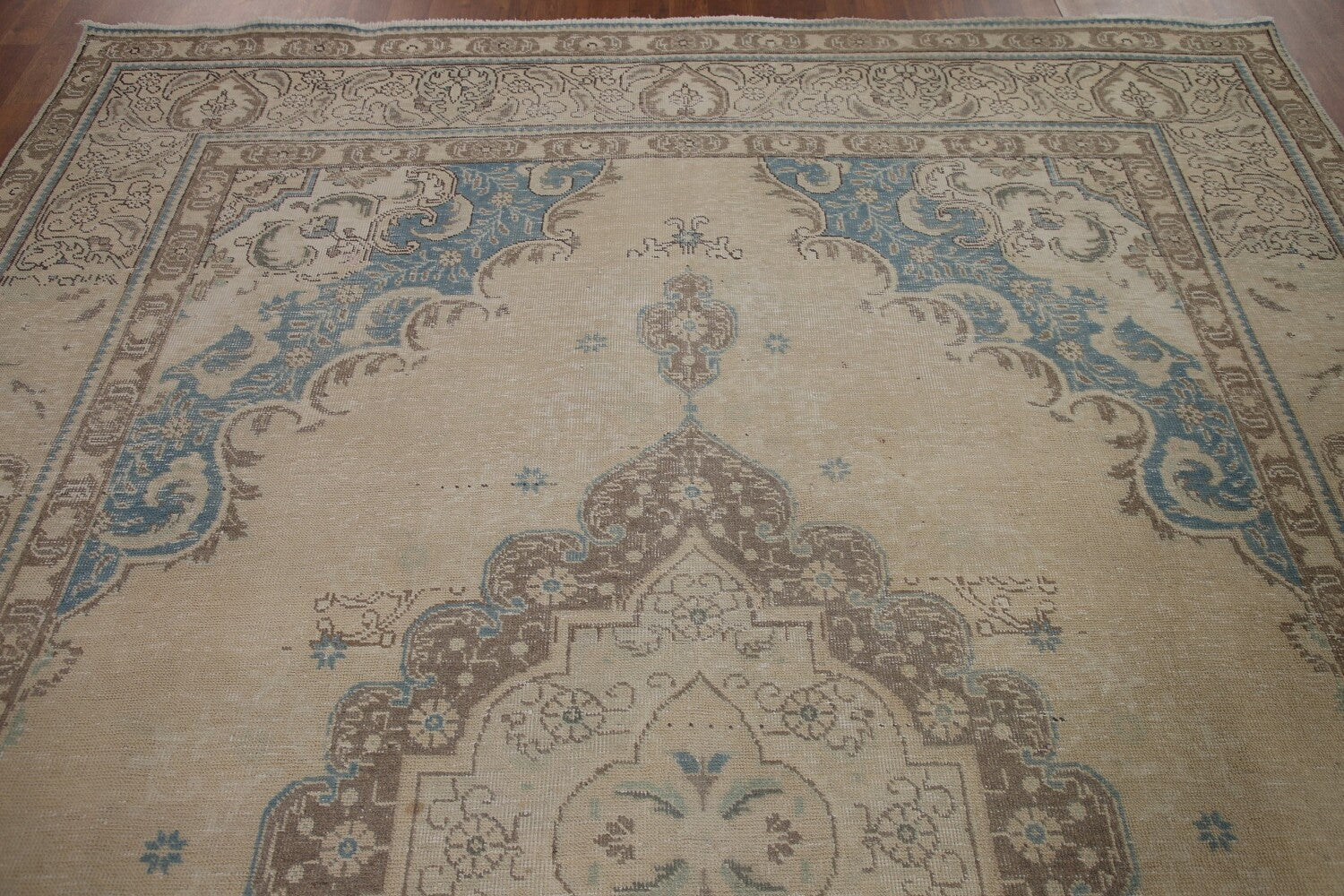 A Beautiful Genuine Persia ( Persia ) Tabriz rug is Hand Knotted by skillful weavers in Persia ( Persia ) with 100% Wool Material. This rug is in Very Good (Evenly Low Pile) condition. dimensions are 10' 10'' X 7' 11'' in foot and 330 X 241 in centimeter. the primary color is Beige & Ivories.