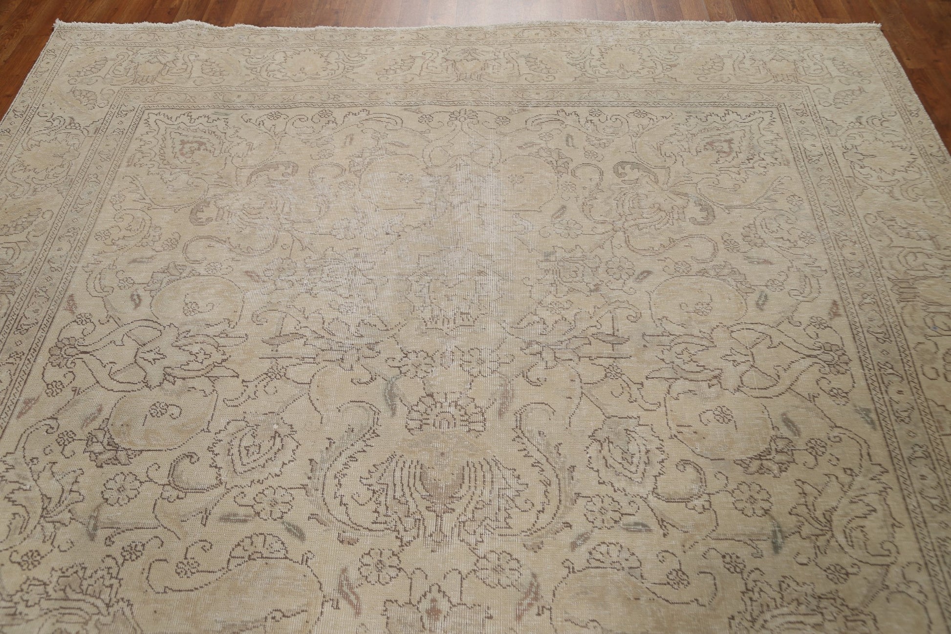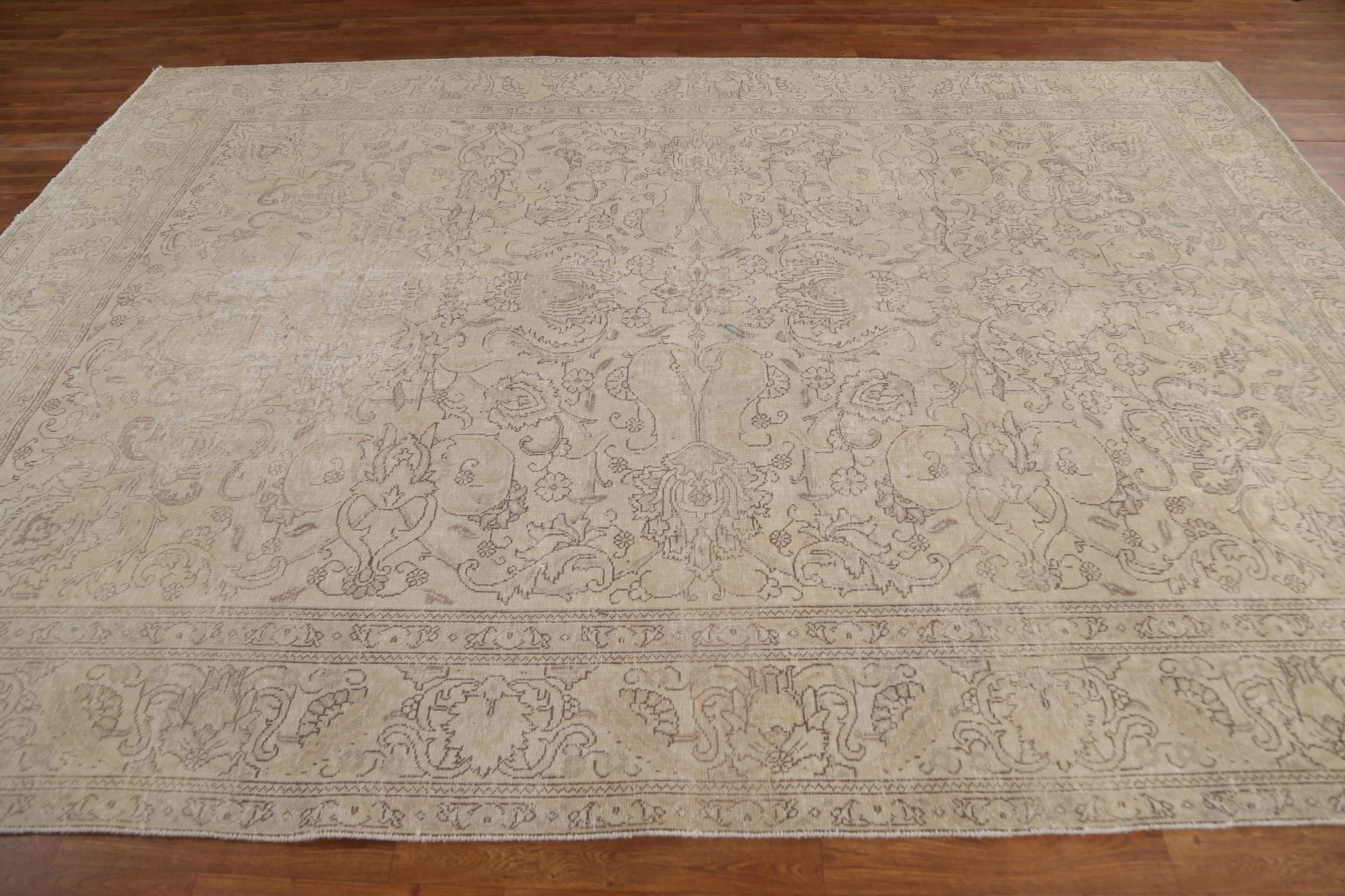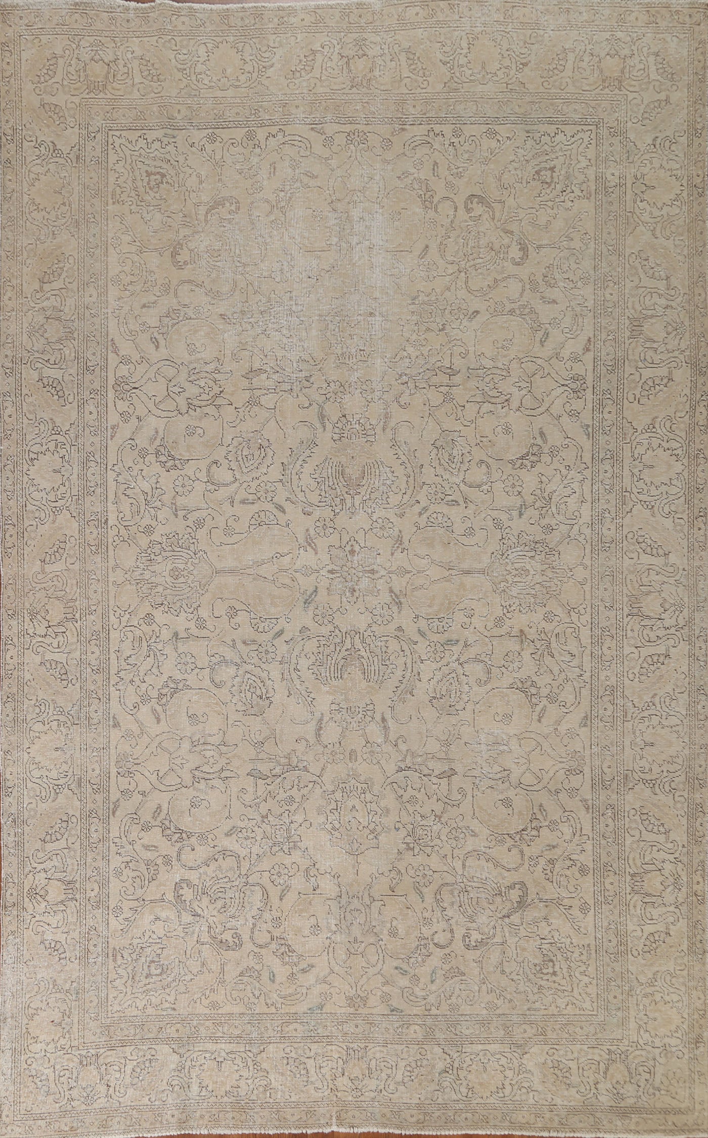 A Beautiful Genuine Persia ( Persia ) Tabriz rug is Hand Knotted by skillful weavers in Persia ( Persia ) with 100% Wool Material. This rug is in Very Good (Evenly Low Pile) condition. dimensions are 10' 8'' X 7' 10'' in foot and 325 X 239 in centimeter. the primary color is Beige & Ivories.