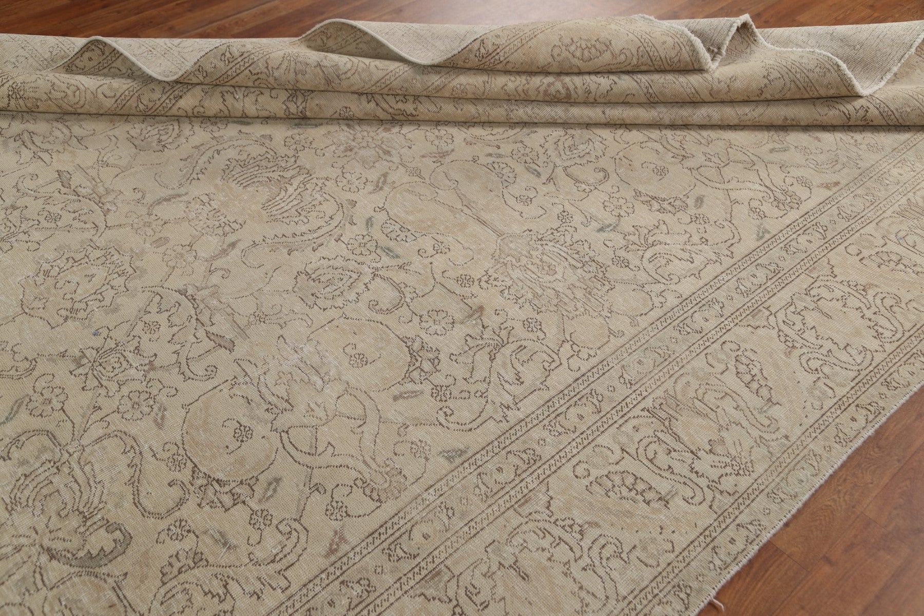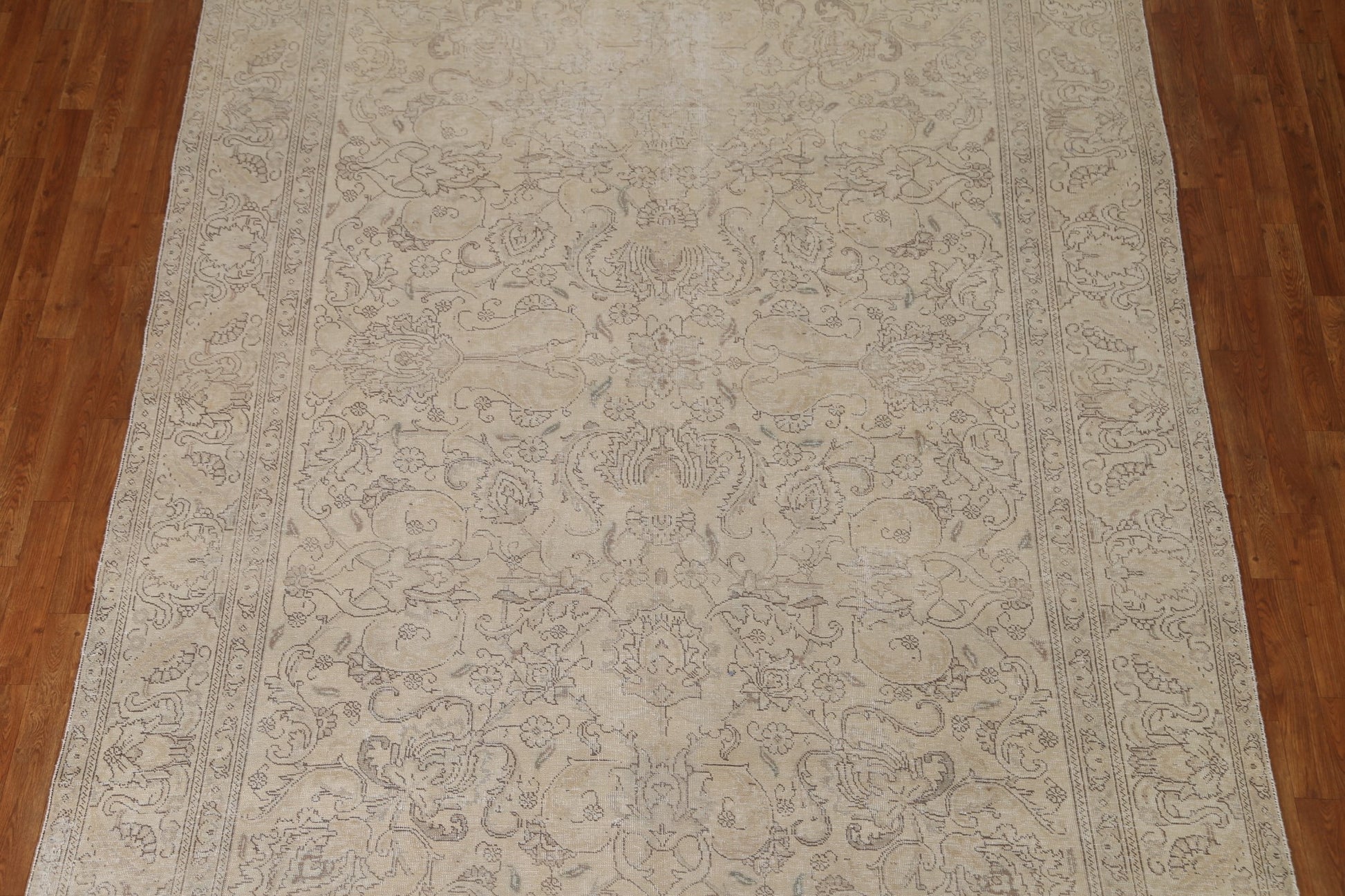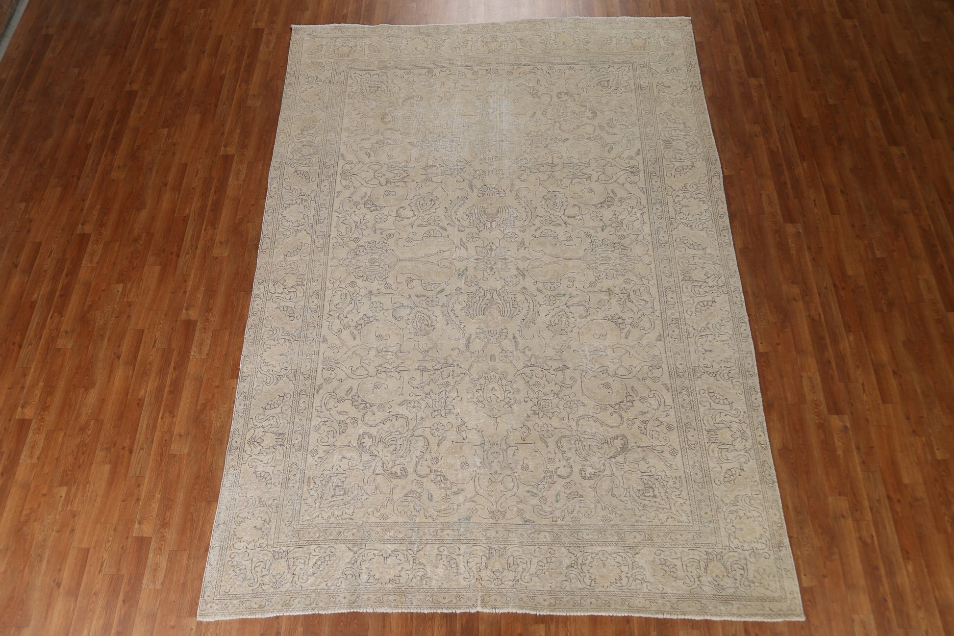 A Beautiful Genuine Persia ( Persia ) Tabriz rug is Hand Knotted by skillful weavers in Persia ( Persia ) with 100% Wool Material. This rug is in Very Good (Evenly Low Pile) condition. dimensions are 10' 8'' X 7' 10'' in foot and 325 X 239 in centimeter. the primary color is Beige & Ivories.