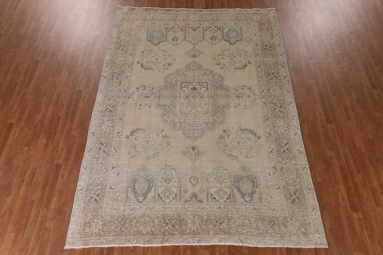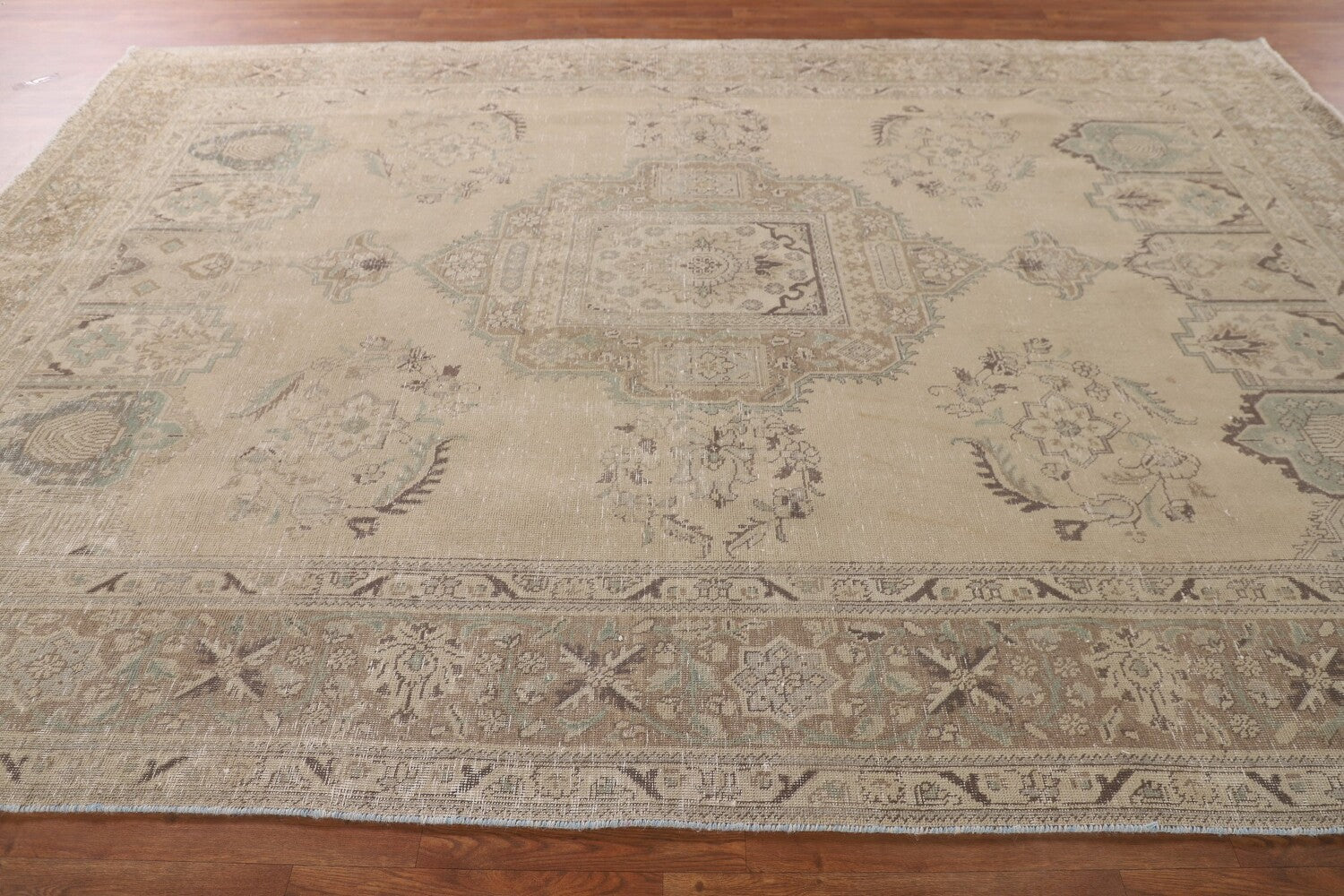 A Beautiful Genuine Persia ( Persia ) Tabriz rug is Hand Knotted by skillful weavers in Persia ( Persia ) with 100% Wool Material. This rug is in Very Good (Evenly Low Pile) condition. dimensions are 11' 0'' X 7' 9'' in foot and 335 X 236 in centimeter. the primary color is Beige & Ivories.