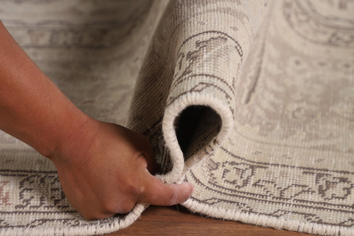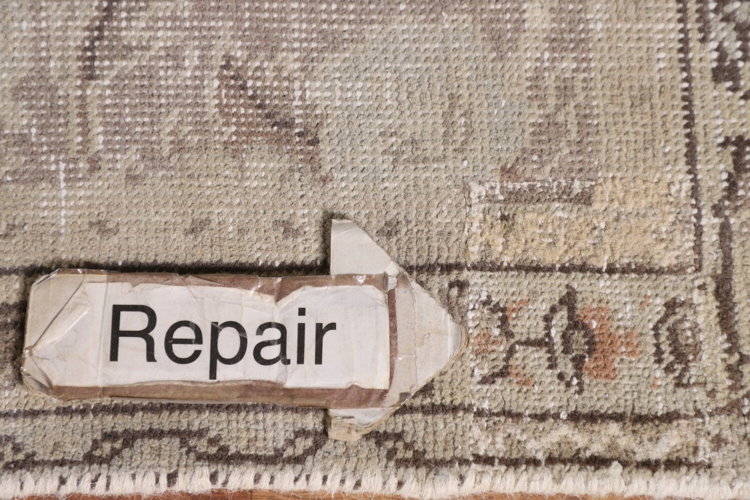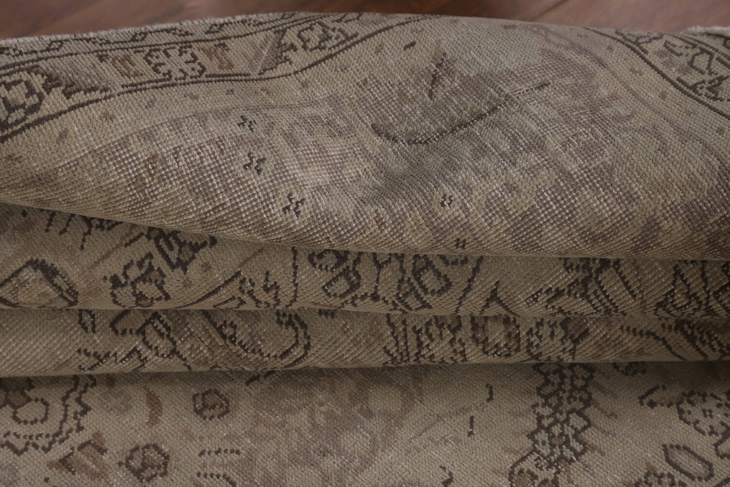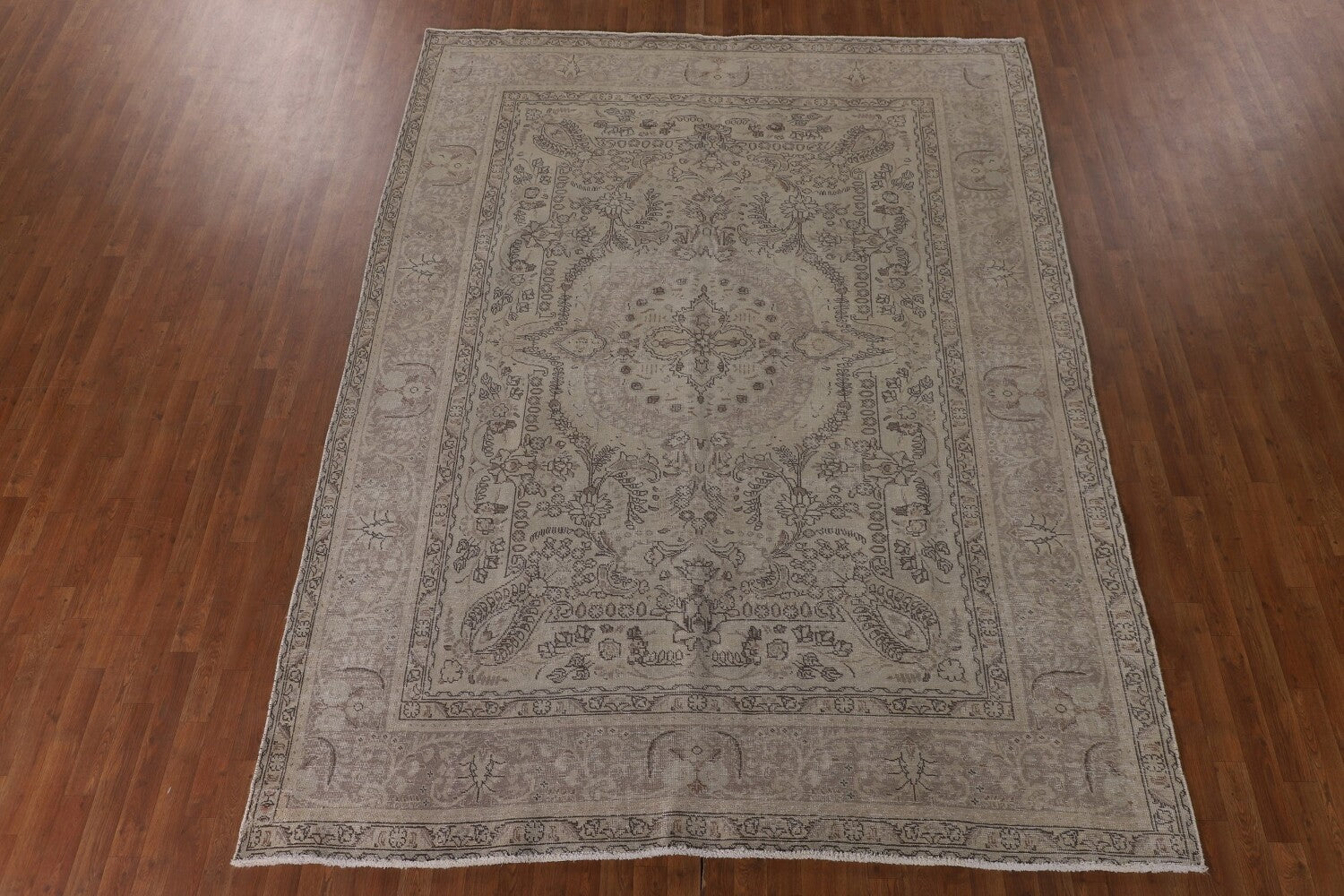 A Beautiful Genuine Persia ( Persia ) Tabriz rug is Hand Knotted by skillful weavers in Persia ( Persia ) with 100% Wool Material. This rug is in Very Good (Low Pile-Repair) condition. dimensions are 10' 7'' X 8' 0'' in foot and 323 X 244 in centimeter. the primary color is Beige & Ivories.
