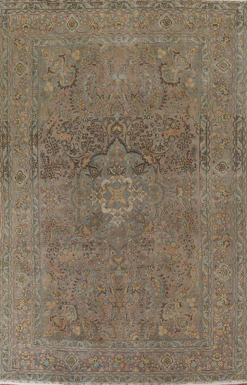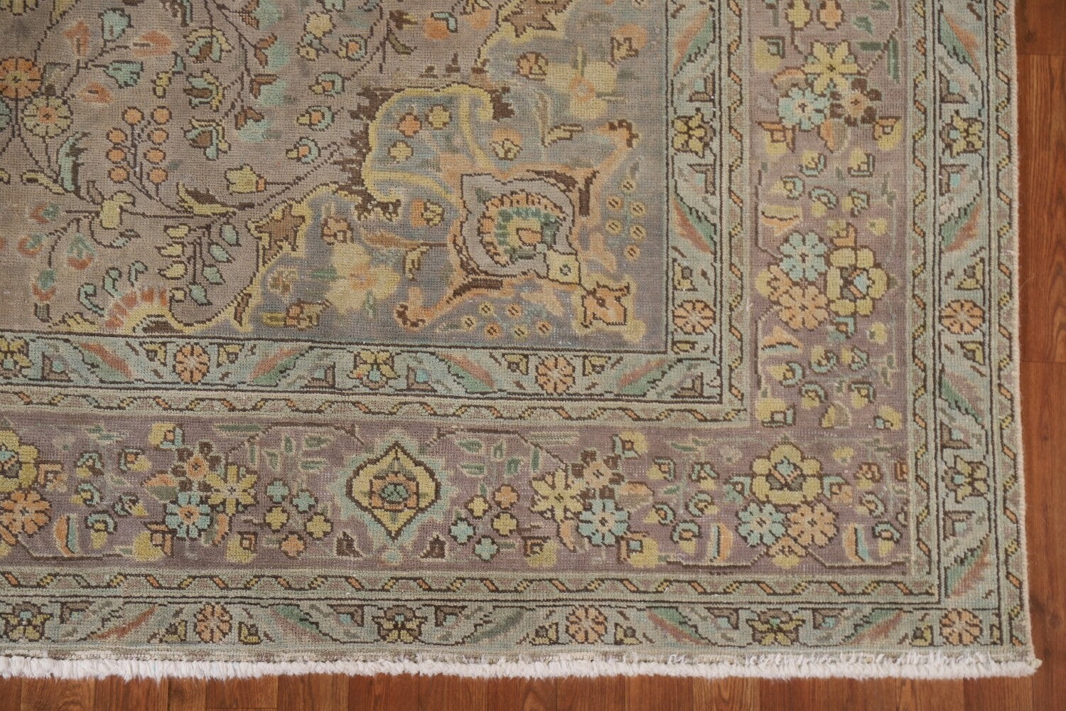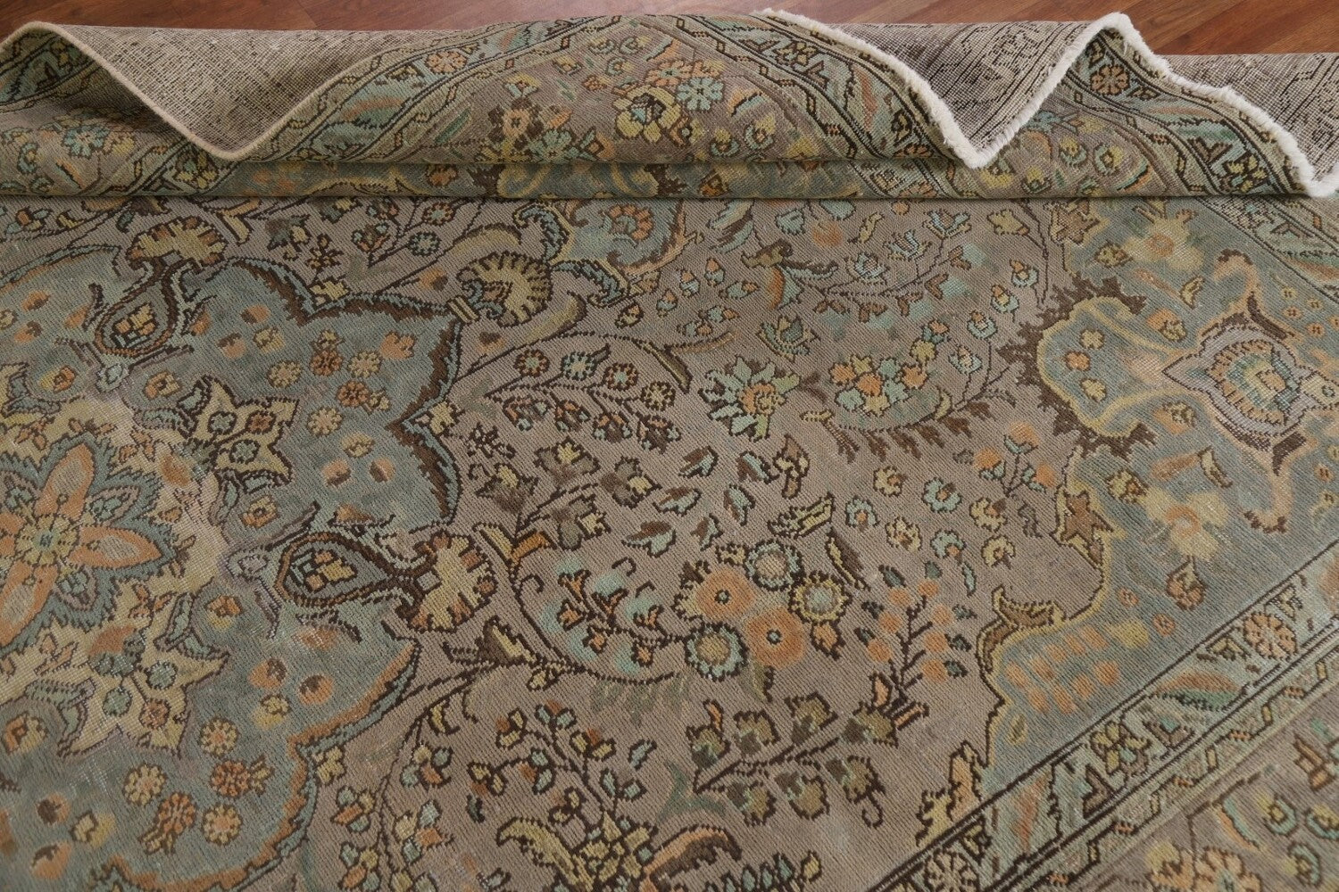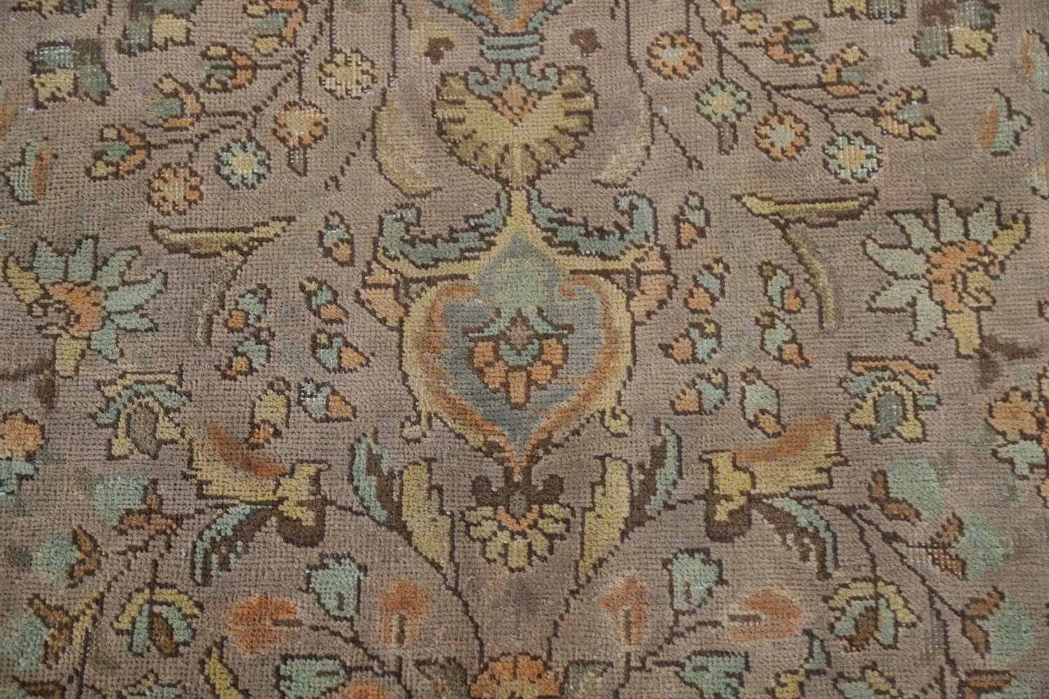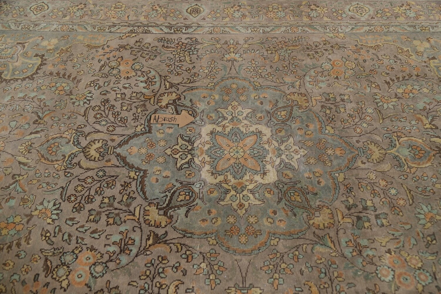 A Beautiful Genuine Persia ( Persia ) Tabriz rug is Hand Knotted by skillful weavers in Persia ( Persia ) with 100% Wool Material. This rug is in Very Good (Low Pile-Abrash) condition. dimensions are 11' 3'' X 7' 10'' in foot and 343 X 239 in centimeter. the primary color is Brown.