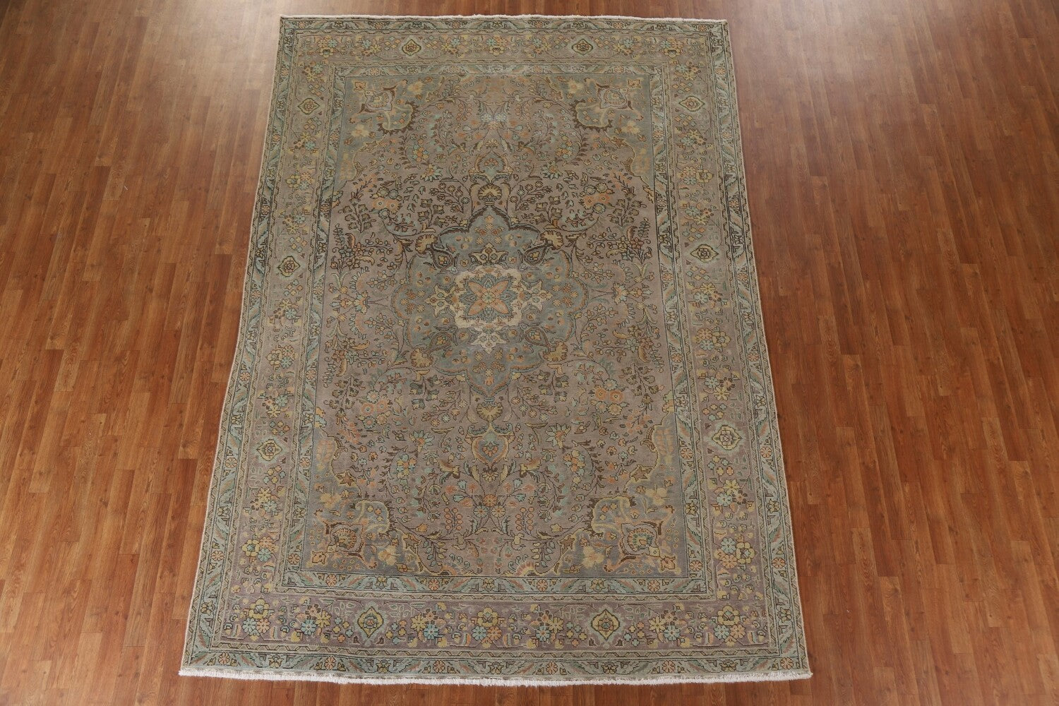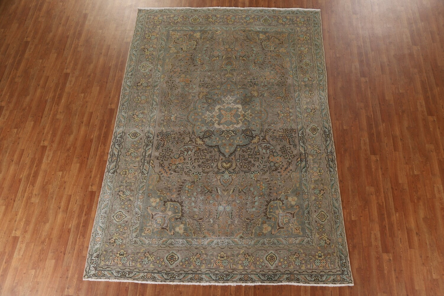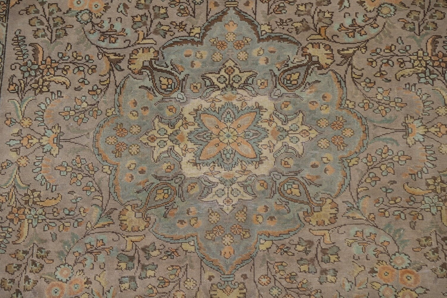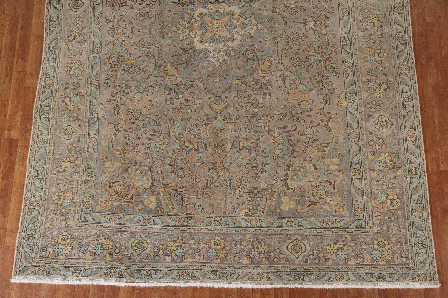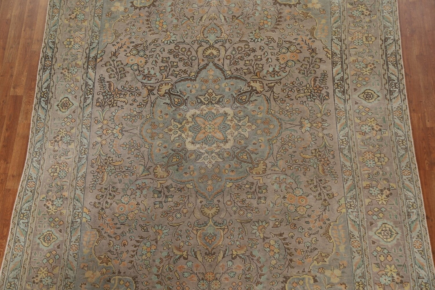 A Beautiful Genuine Persia ( Persia ) Tabriz rug is Hand Knotted by skillful weavers in Persia ( Persia ) with 100% Wool Material. This rug is in Very Good (Low Pile-Abrash) condition. dimensions are 11' 3'' X 7' 10'' in foot and 343 X 239 in centimeter. the primary color is Brown.