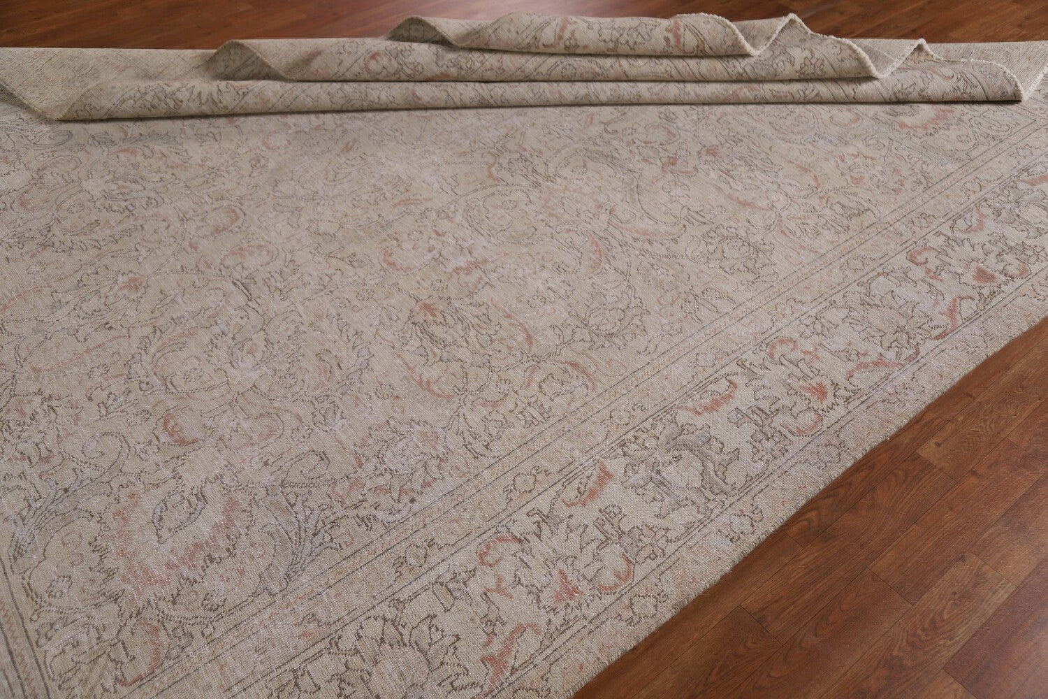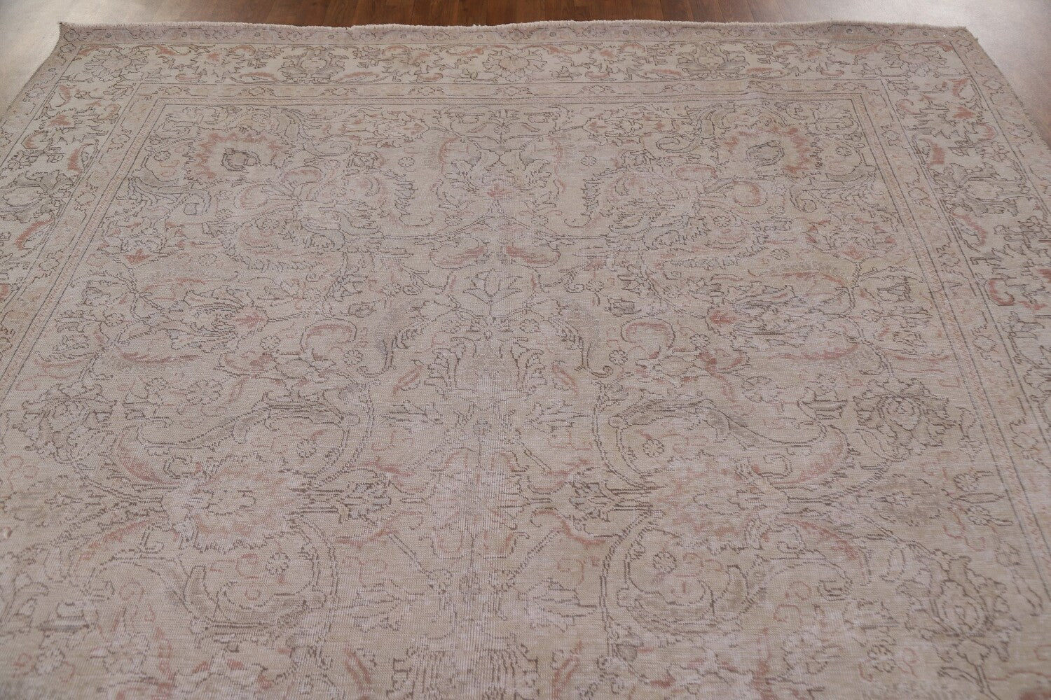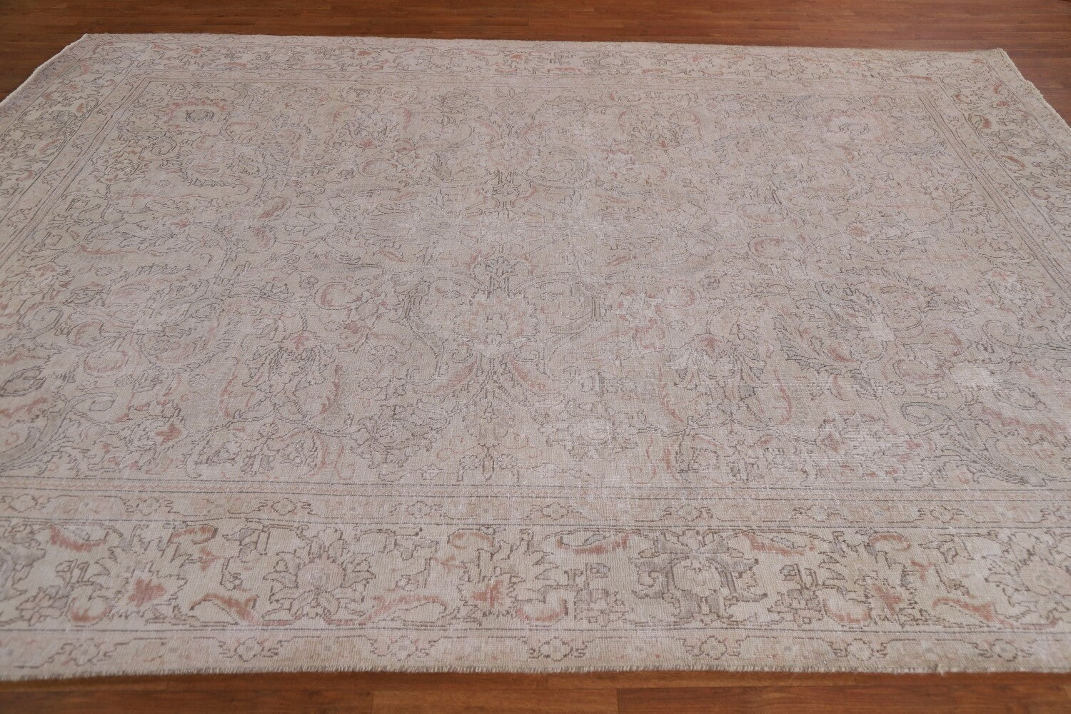 A Beautiful Genuine Persia ( Persia ) Tabriz rug is Hand Knotted by skillful weavers in Persia ( Persia ) with 100% Wool Material. This rug is in Very Good (Evenly Low Pile) condition. dimensions are 10' 7'' X 8' 3'' in foot and 323 X 251 in centimeter. the primary color is Beige & Ivories.