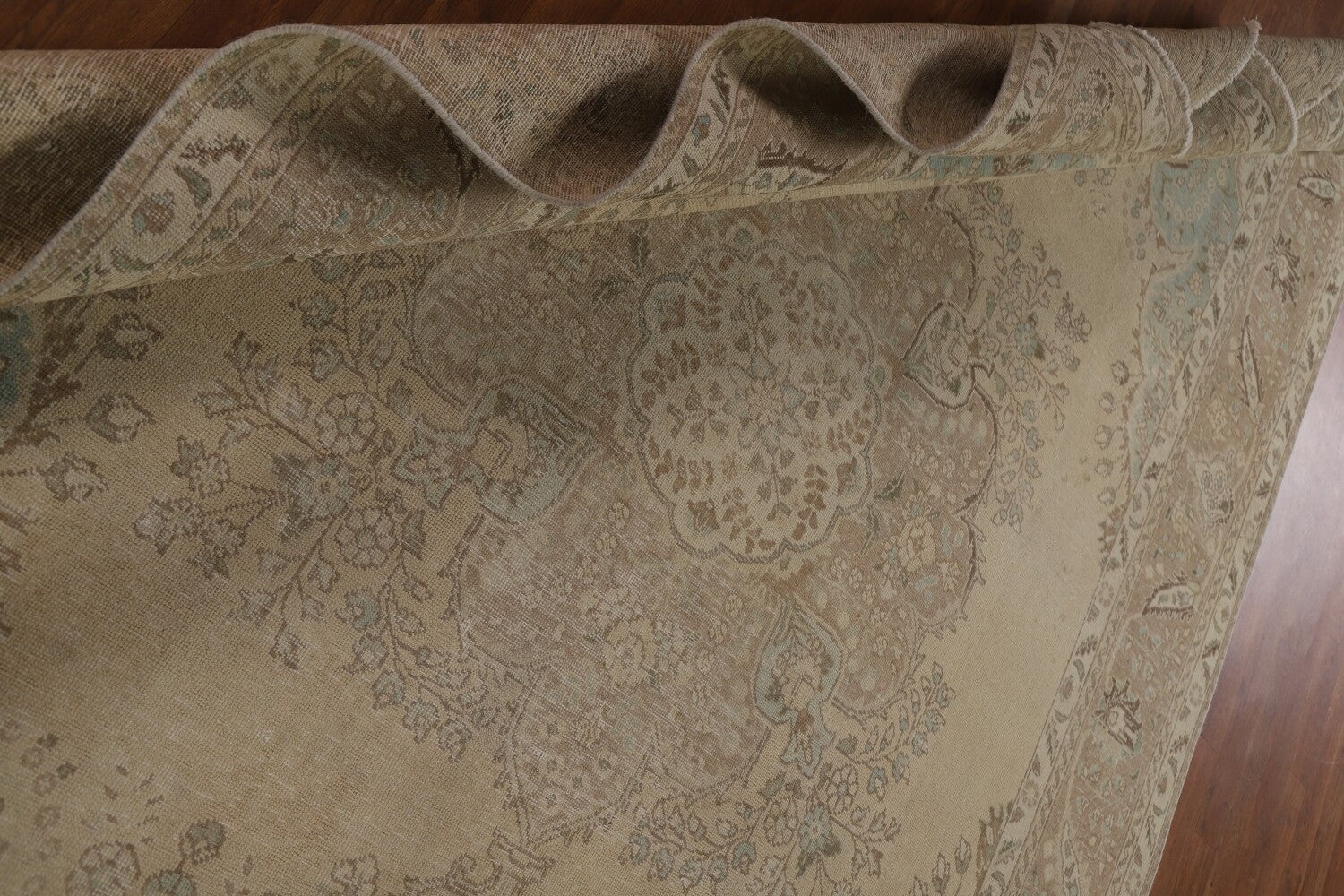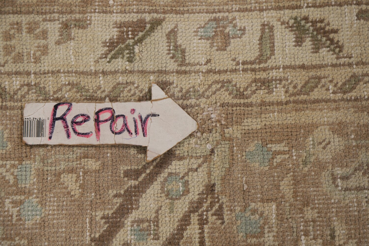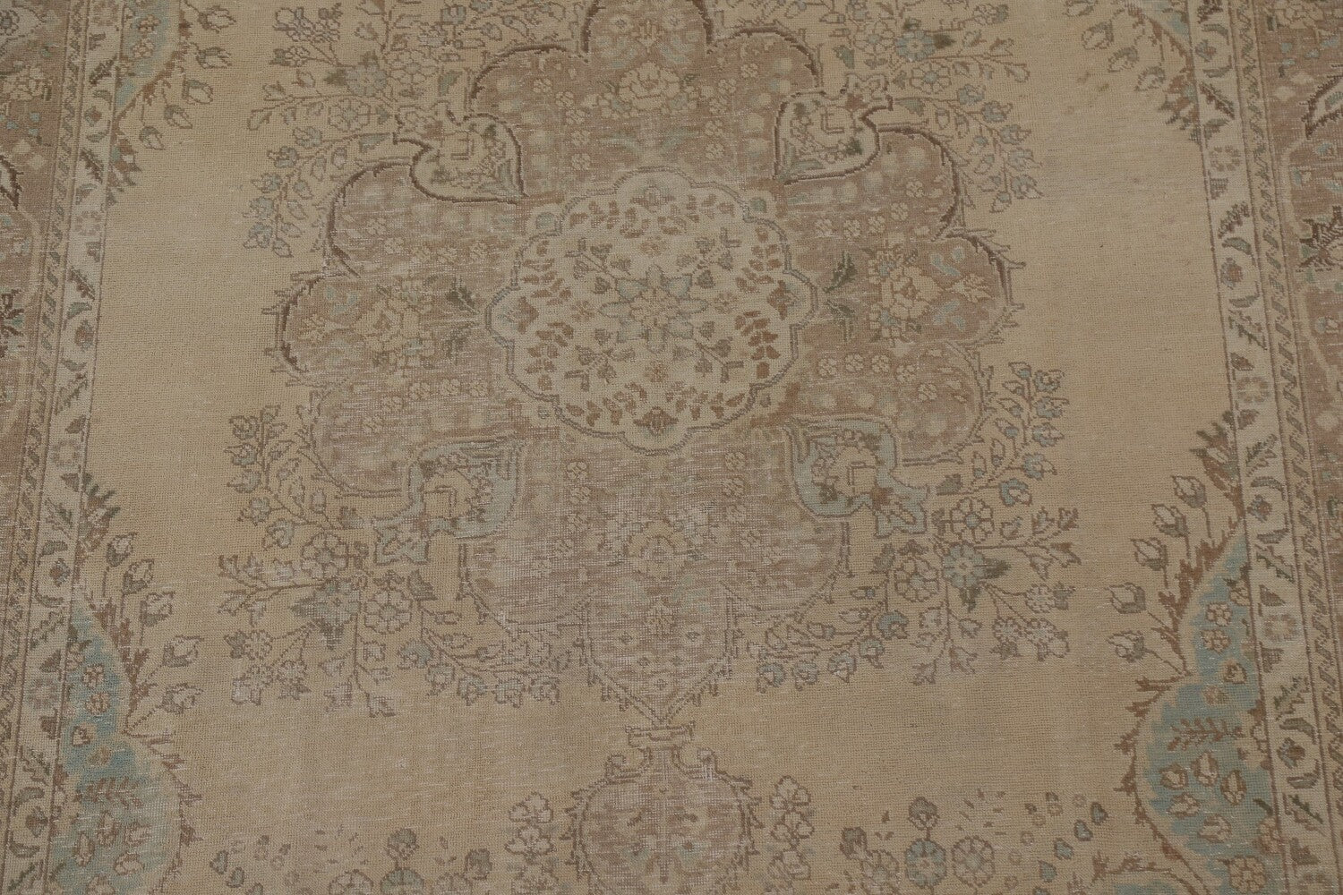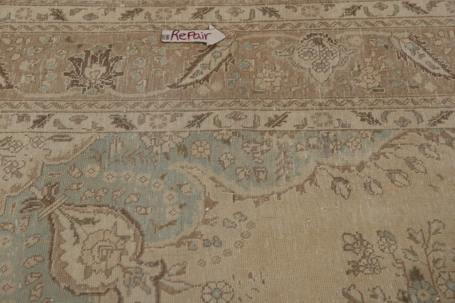 A Beautiful Genuine Persia ( Persia ) Tabriz rug is Hand Knotted by skillful weavers in Persia ( Persia ) with 100% Wool Material. This rug is in Very Good (Evenly Low Pile-Repair) condition. dimensions are 11' 6'' X 7' 6'' in foot and 351 X 229 in centimeter. the primary color is Yellow & Gold.