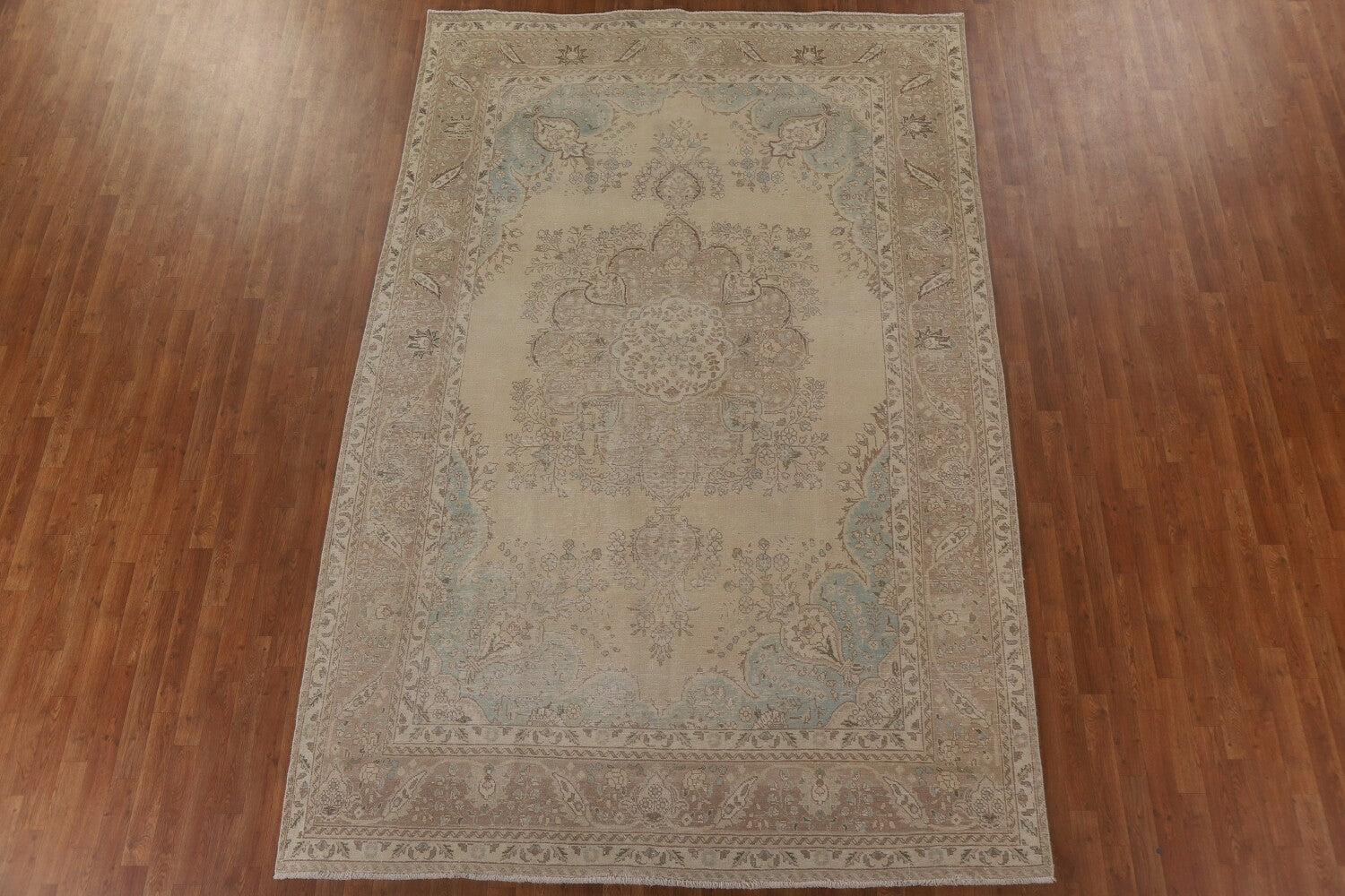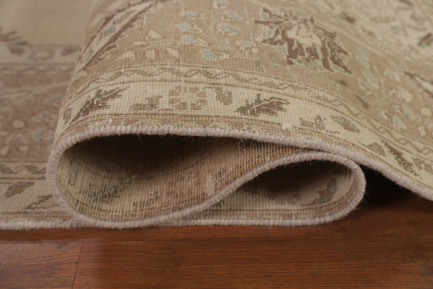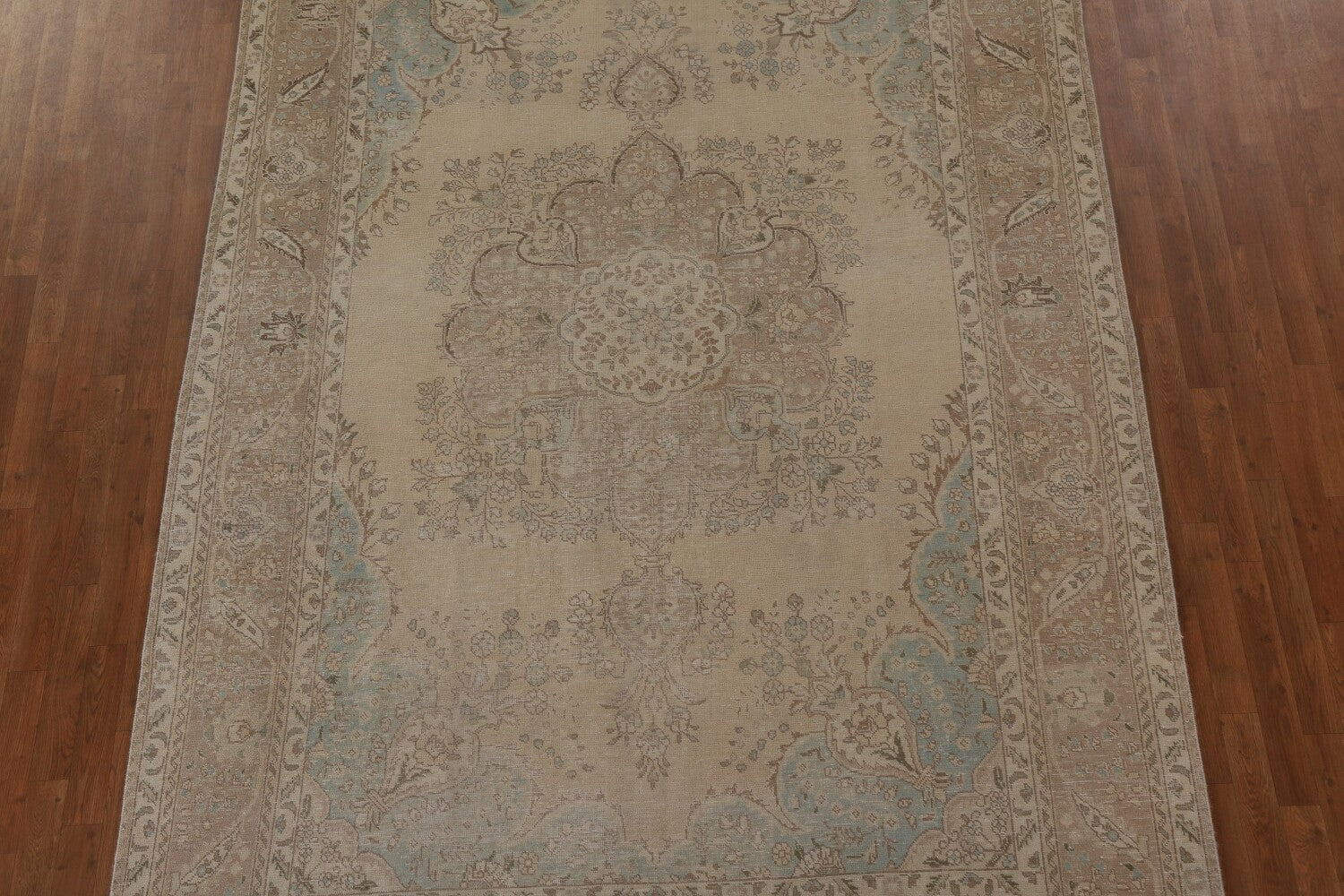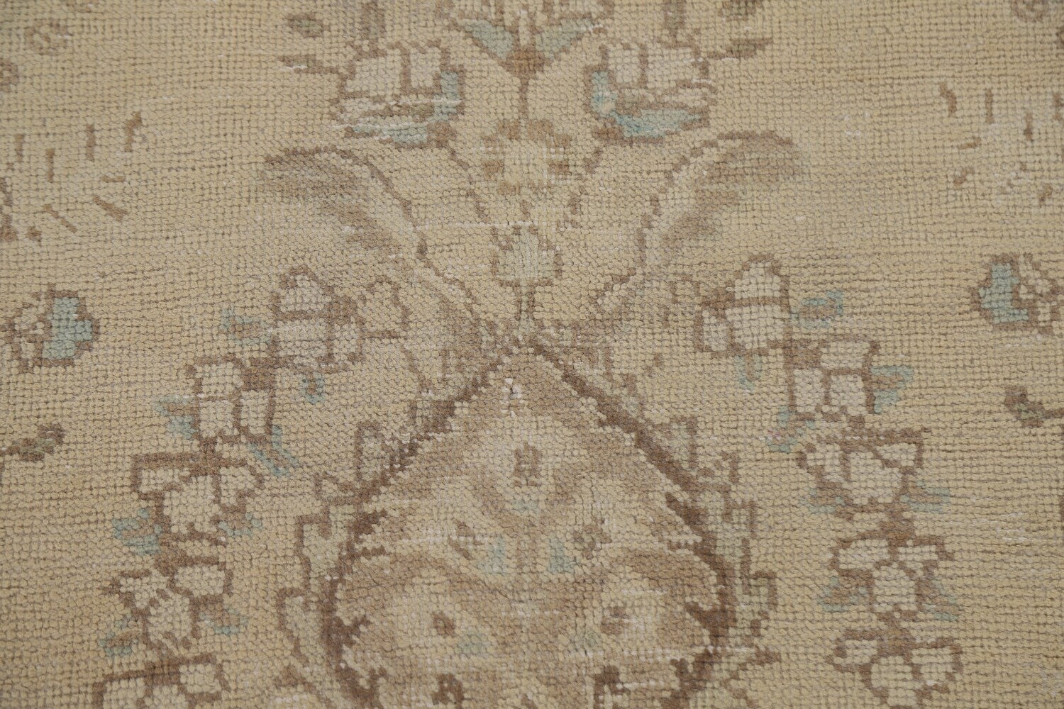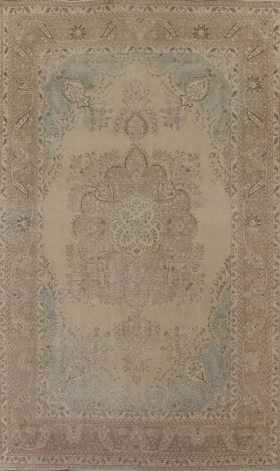 A Beautiful Genuine Persia ( Persia ) Tabriz rug is Hand Knotted by skillful weavers in Persia ( Persia ) with 100% Wool Material. This rug is in Very Good (Evenly Low Pile-Repair) condition. dimensions are 11' 6'' X 7' 6'' in foot and 351 X 229 in centimeter. the primary color is Yellow & Gold.
