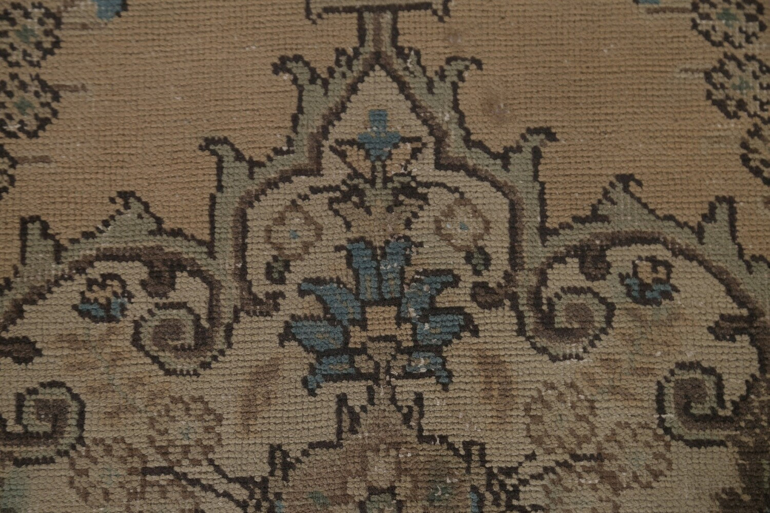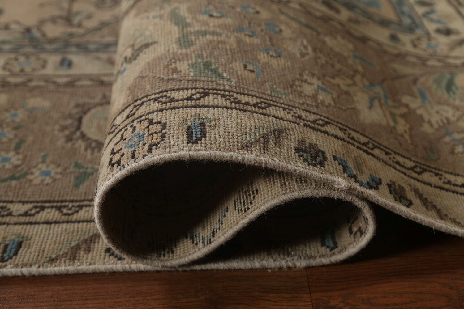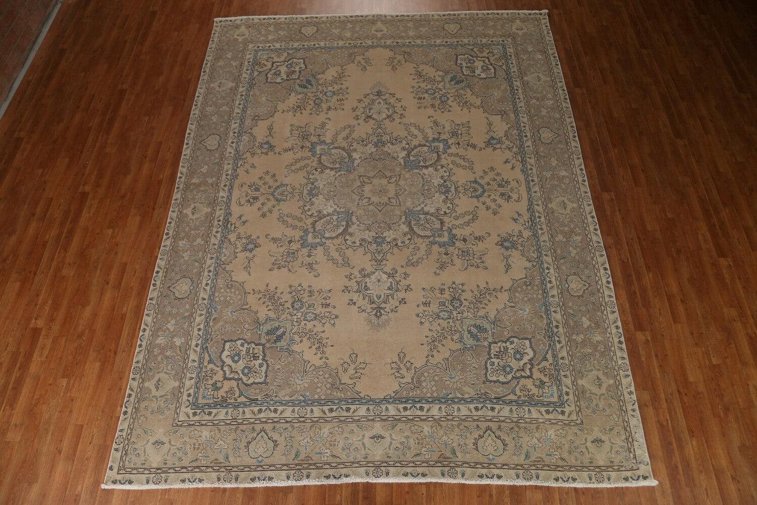 A Beautiful Genuine Persia ( Persia ) Tabriz rug is Hand Knotted by skillful weavers in Persia ( Persia ) with 100% Wool Material. This rug is in Very Good (Low Pile) condition. dimensions are 12' 1'' X 9' 3'' in foot and 368 X 282 in centimeter. the primary color is Peach.