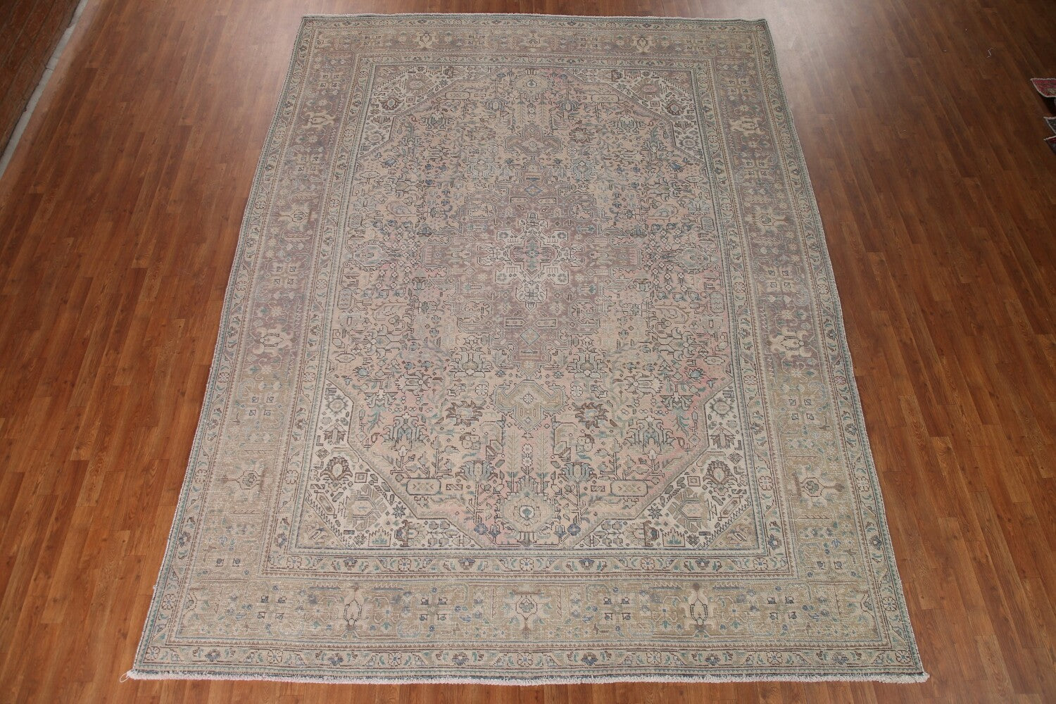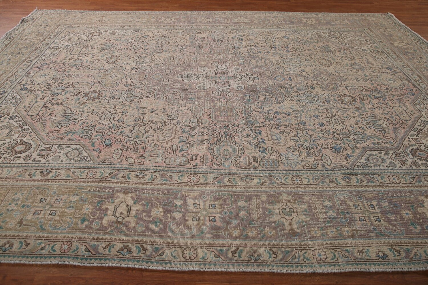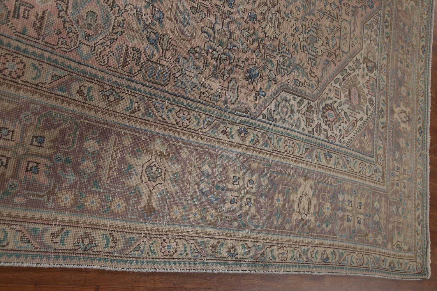 A Beautiful Genuine Persia ( Persia ) Tabriz rug is Hand Knotted by skillful weavers in Persia ( Persia ) with 100% Wool Material. This rug is in Very Good (Evenly Low Pile) condition. dimensions are 12' 5'' X 9' 4'' in foot and 378 X 284 in centimeter. the primary color is Pink.