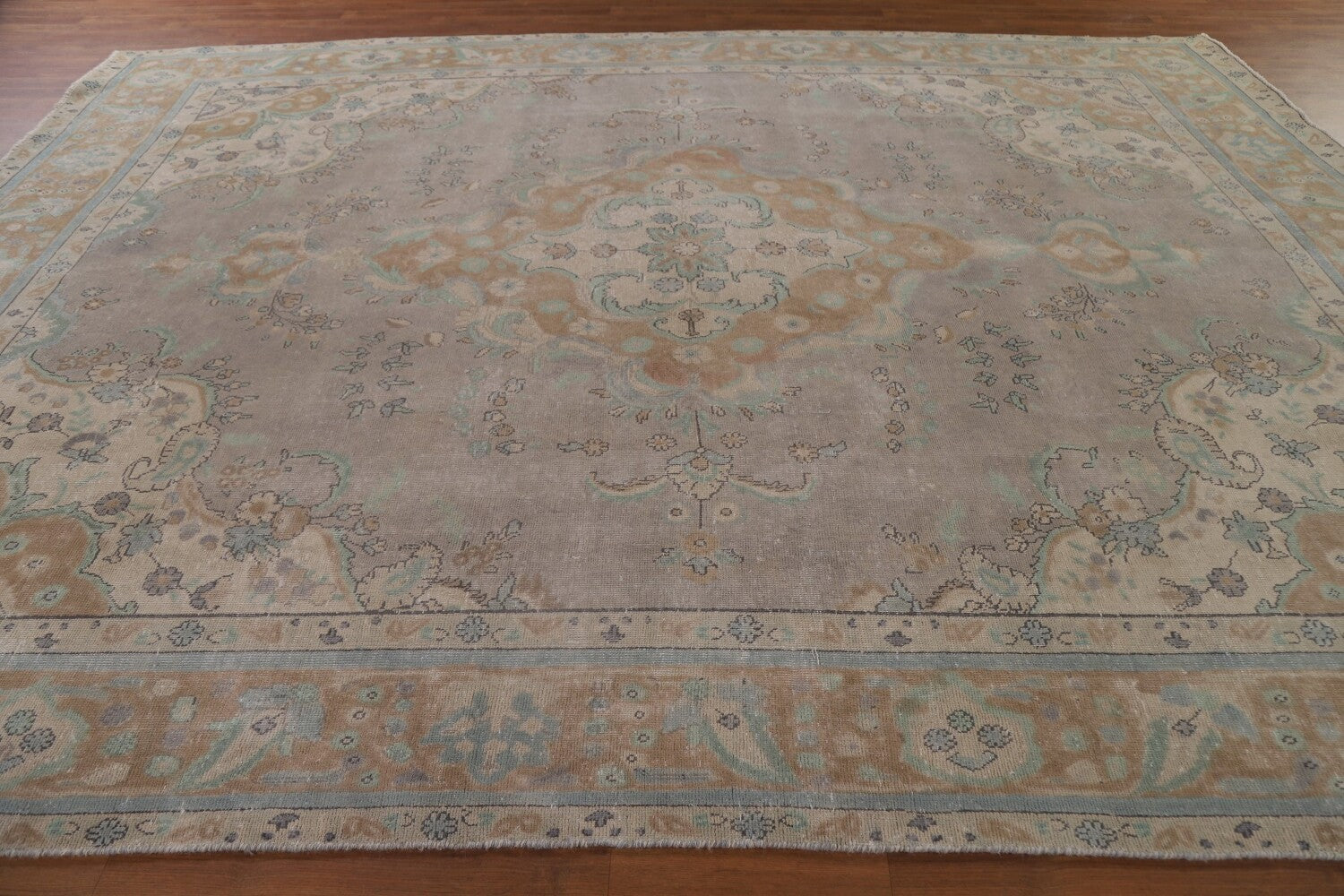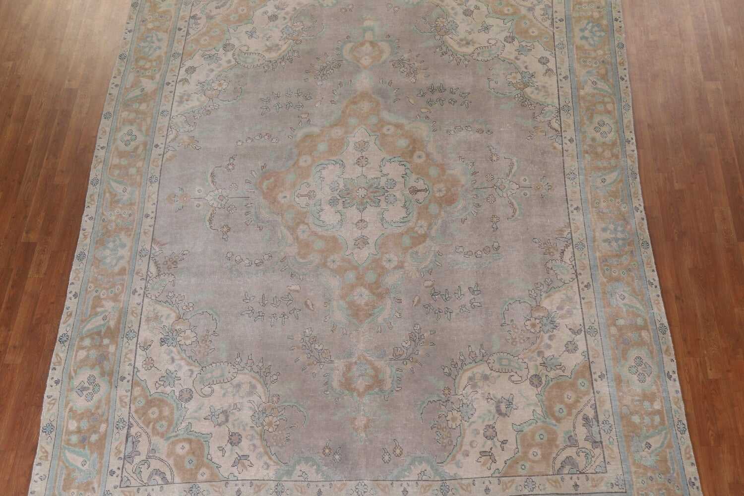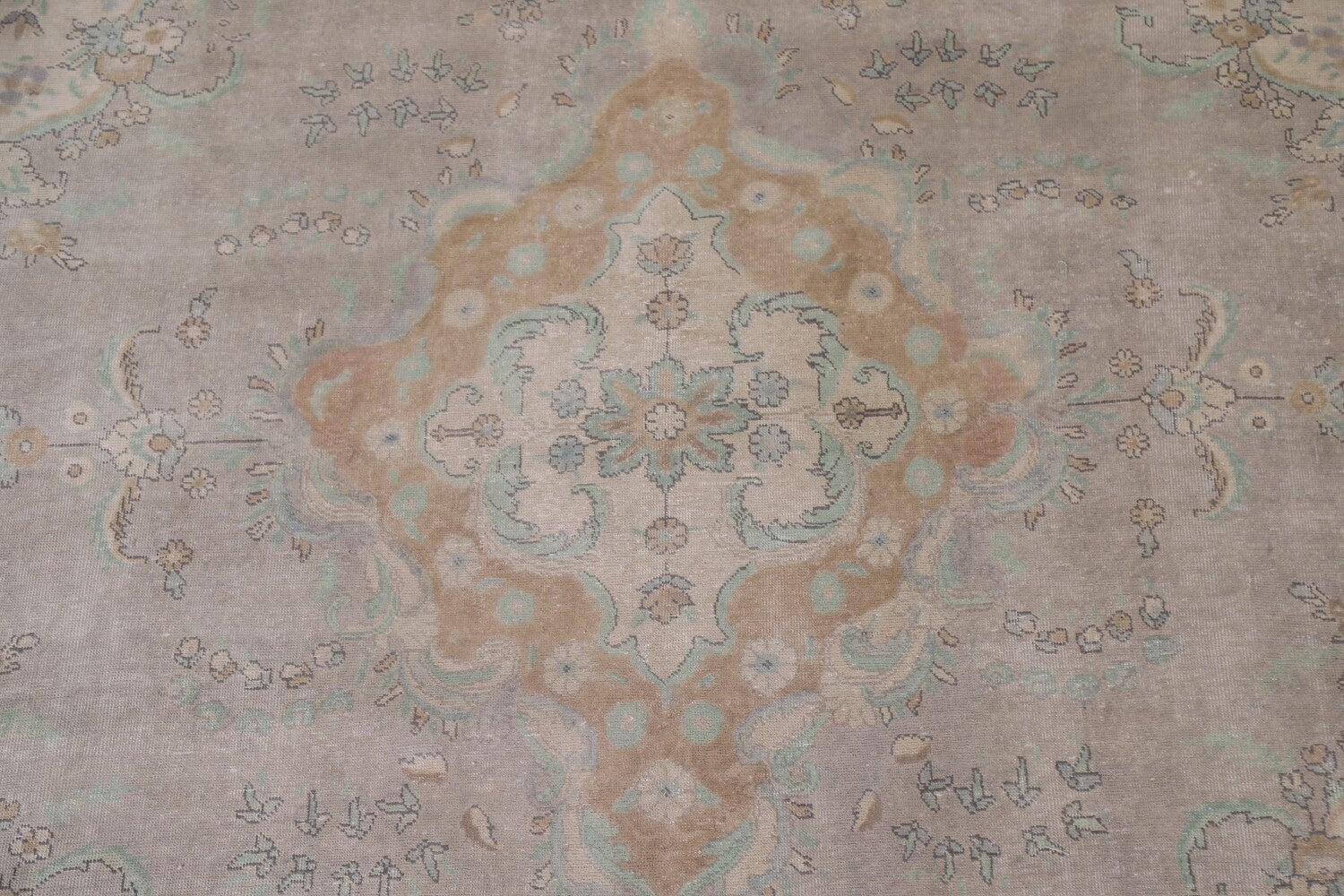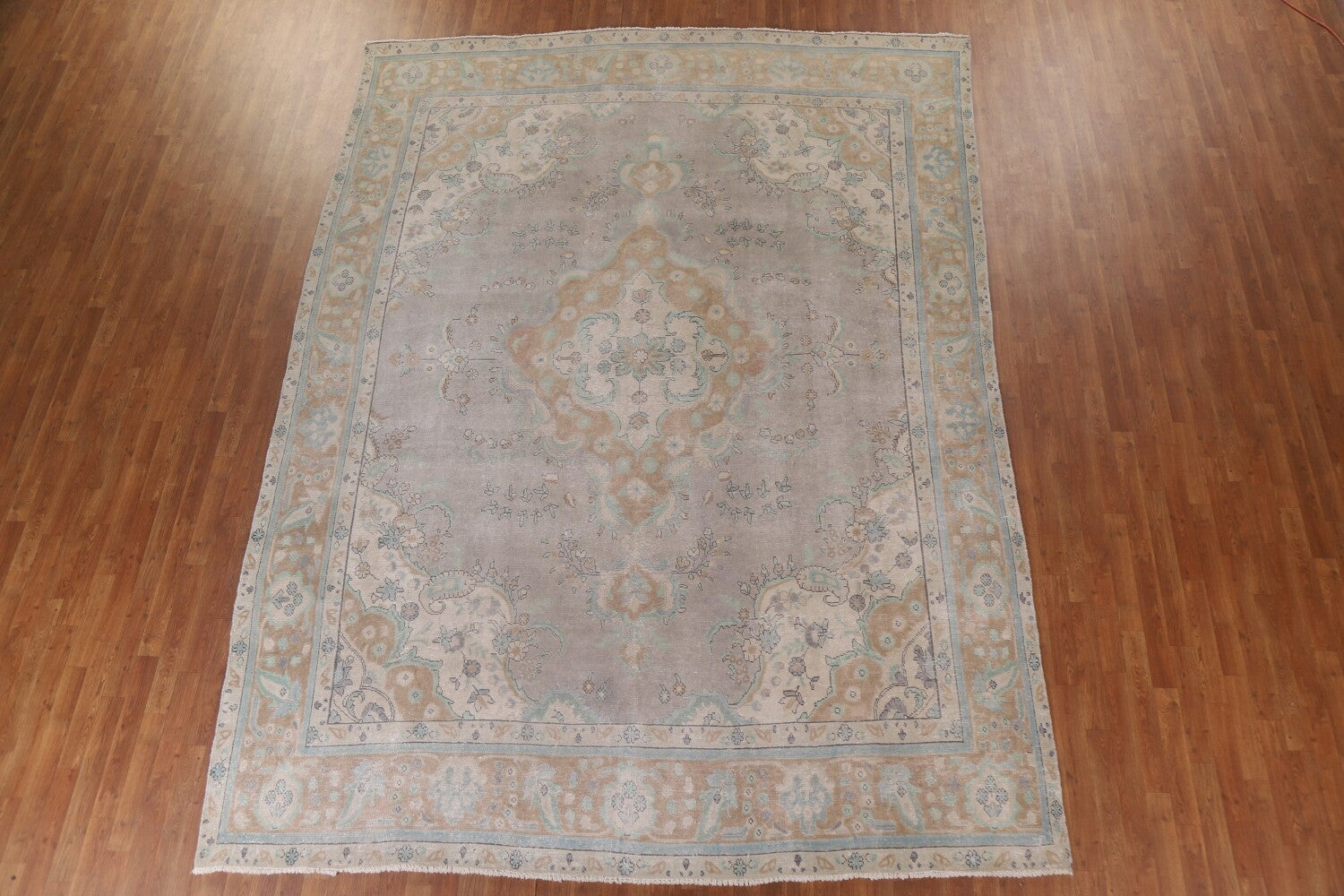 A Beautiful Genuine Persia ( Persia ) Tabriz rug is Hand Knotted by skillful weavers in Persia ( Persia ) with 100% Wool Material. This rug is in Very Good (Evenly Low Pile) condition. dimensions are 12' 8'' X 9' 4'' in foot and 386 X 284 in centimeter. the primary color is Greys & Charcoal.