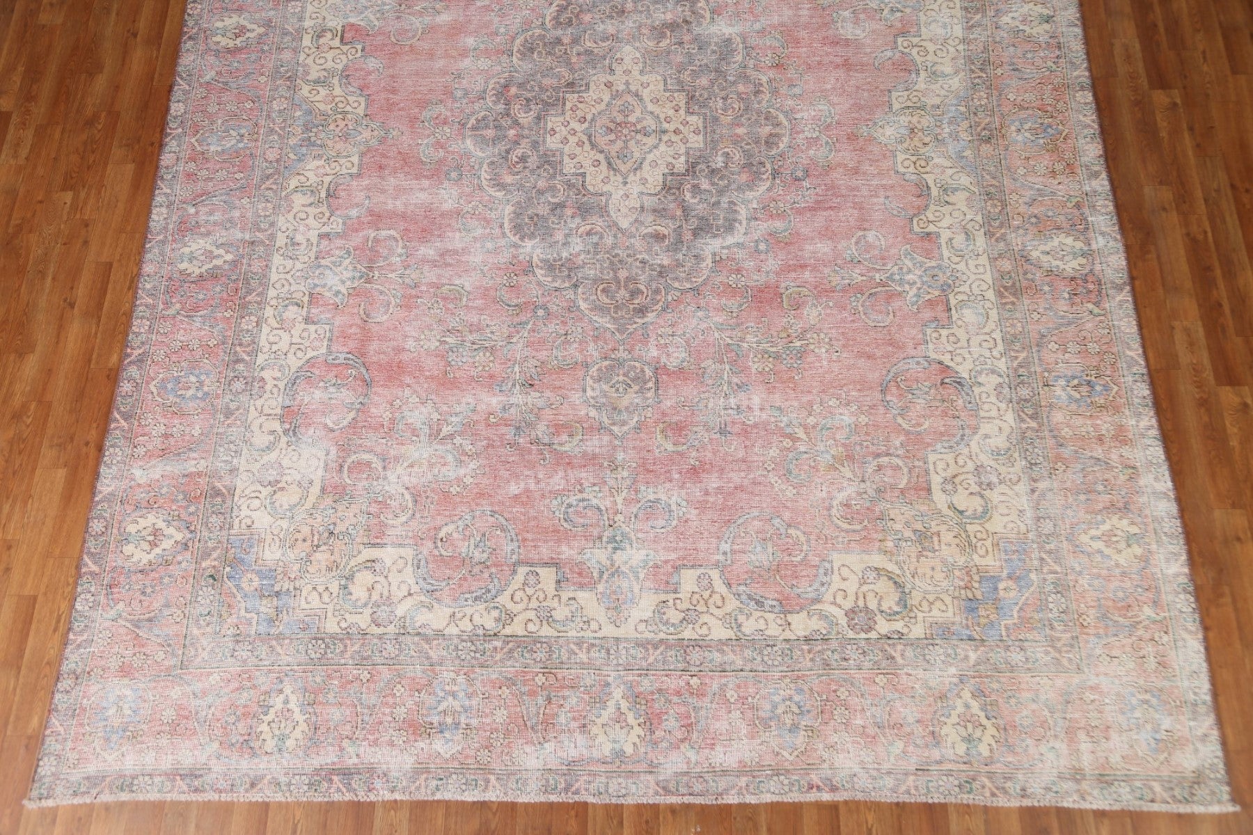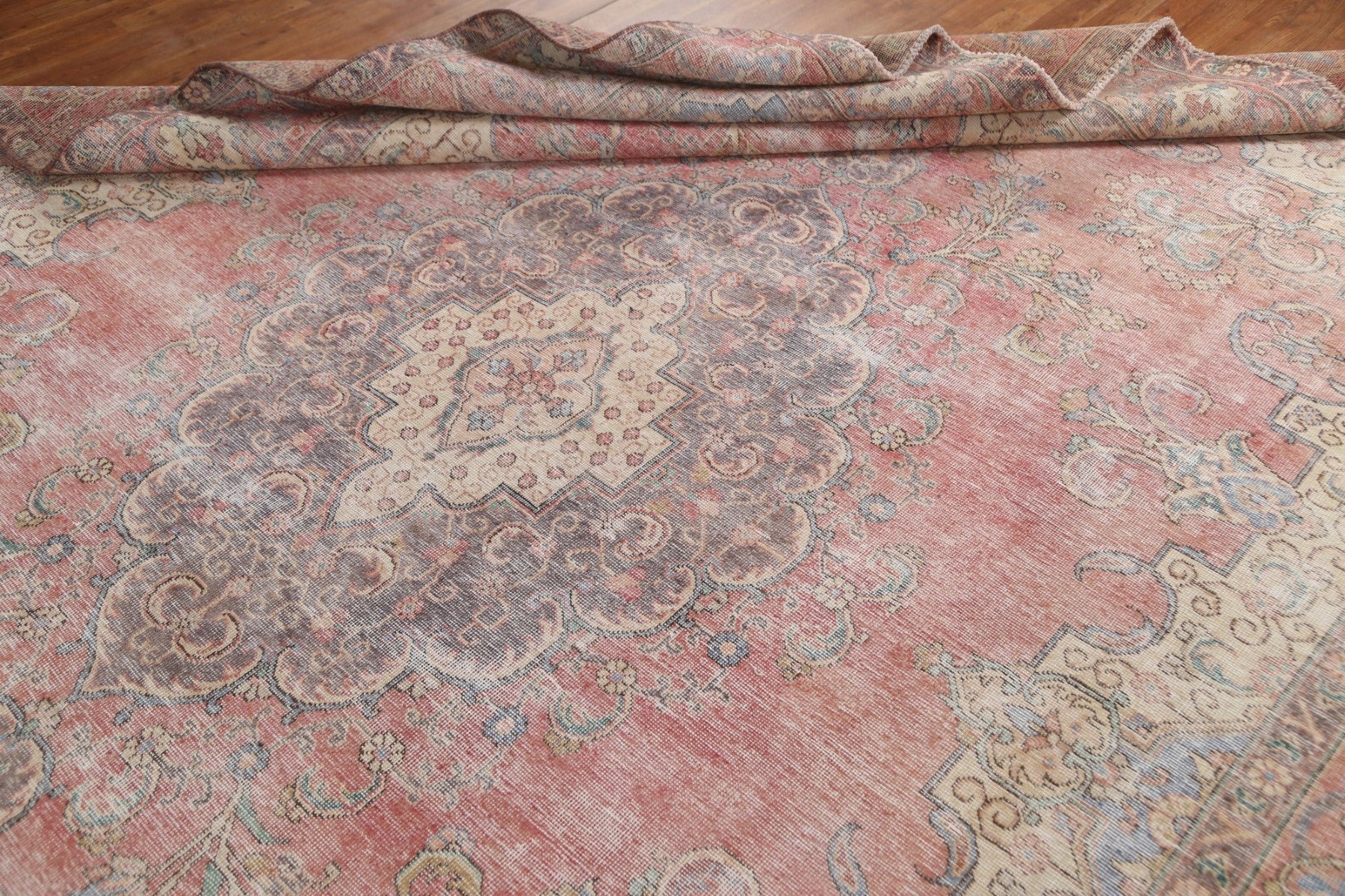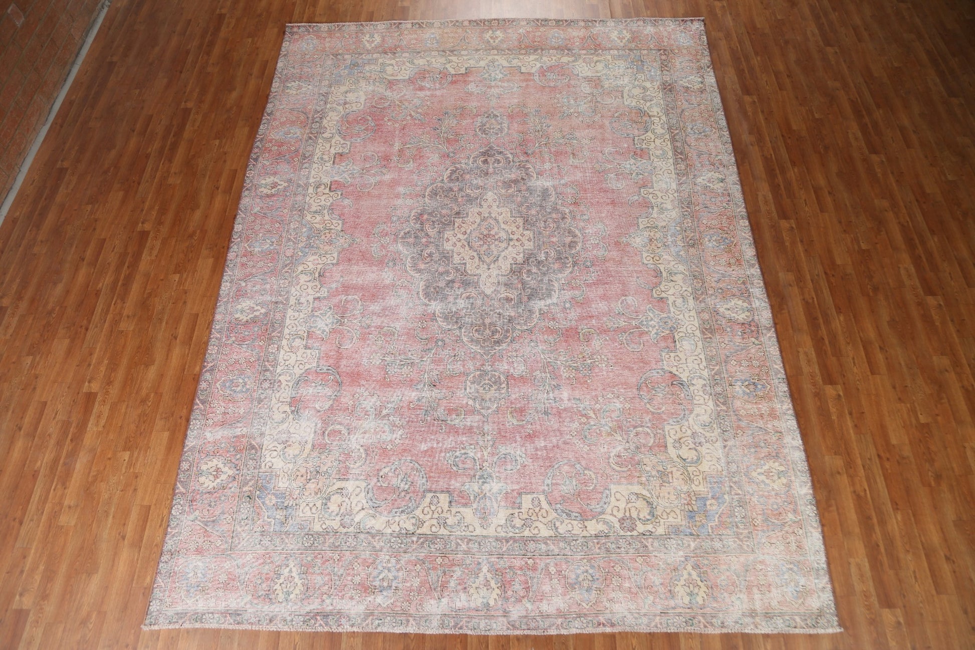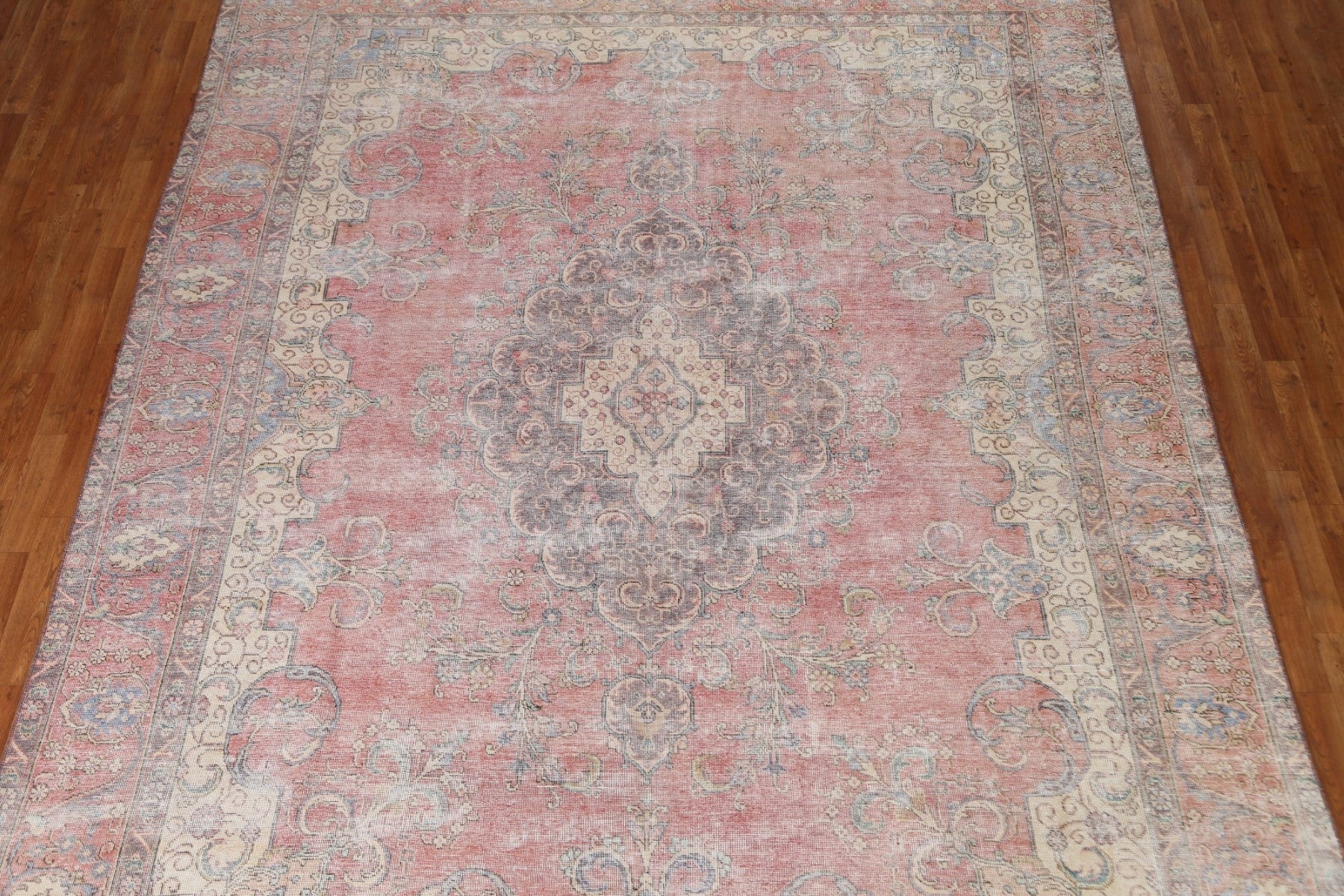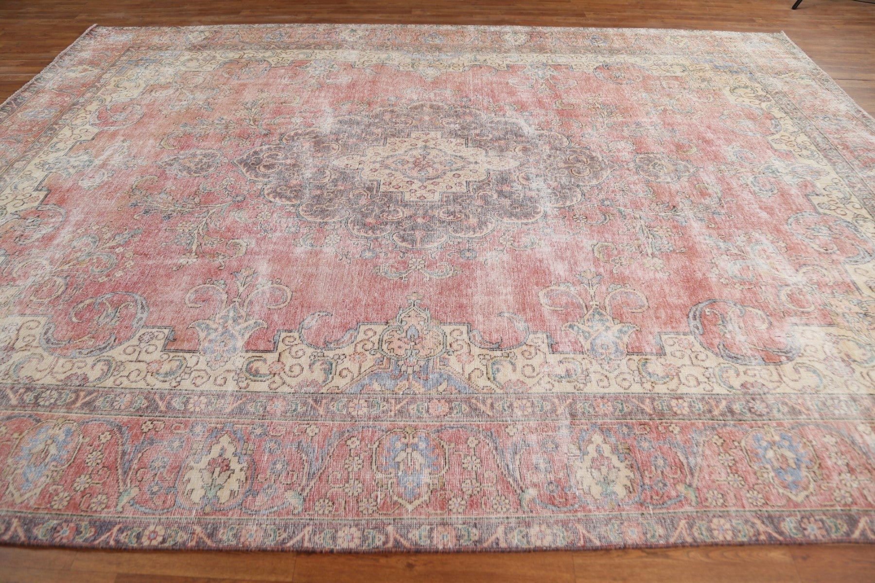 A Beautiful Genuine Persia ( Persia ) Tabriz rug is Hand Knotted by skillful weavers in Persia ( Persia ) with 100% Wool Material. This rug is in Very Good (Evenly Low Pile) condition. dimensions are 12' 8'' X 9' 4'' in foot and 386 X 284 in centimeter. the primary color is Pink.