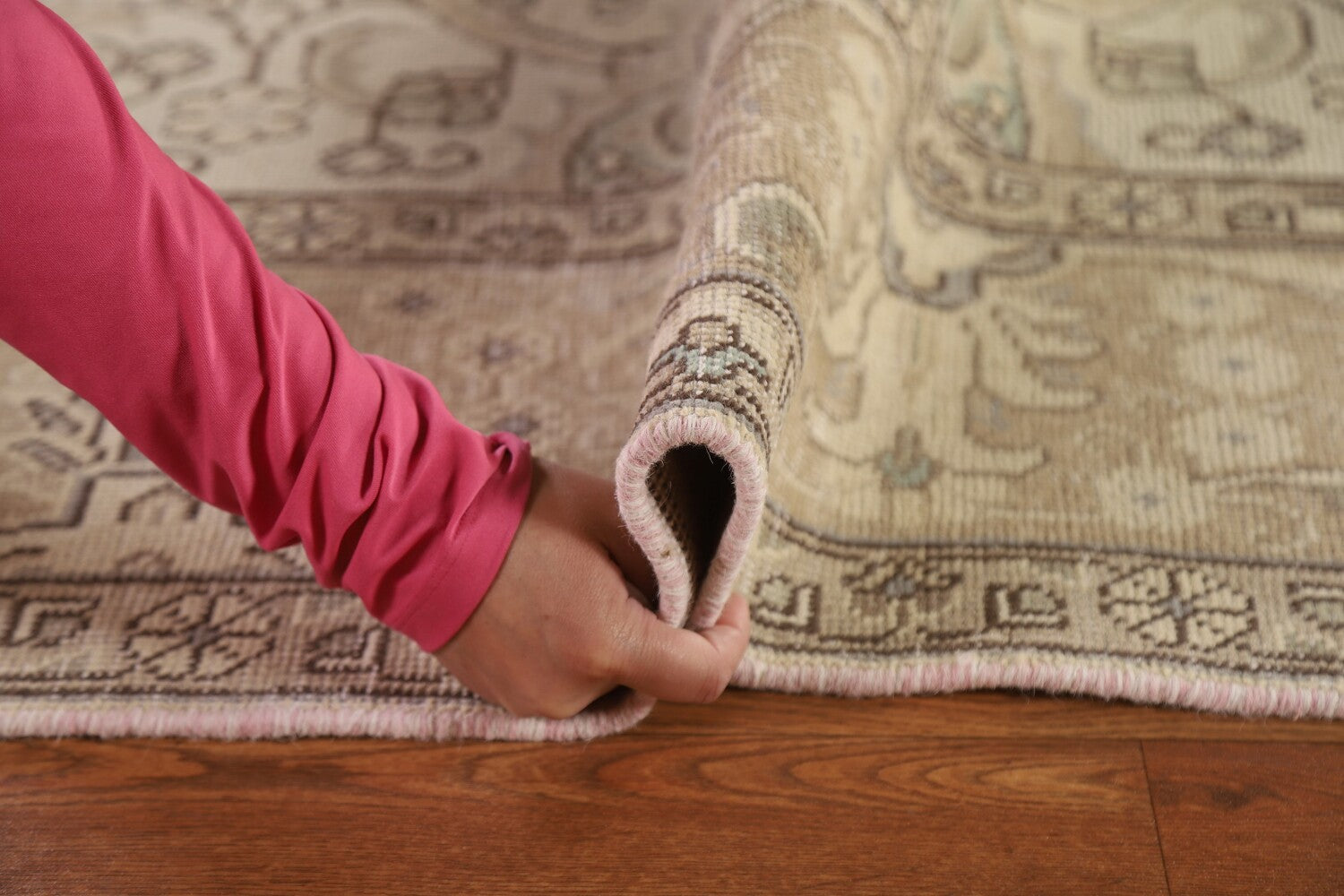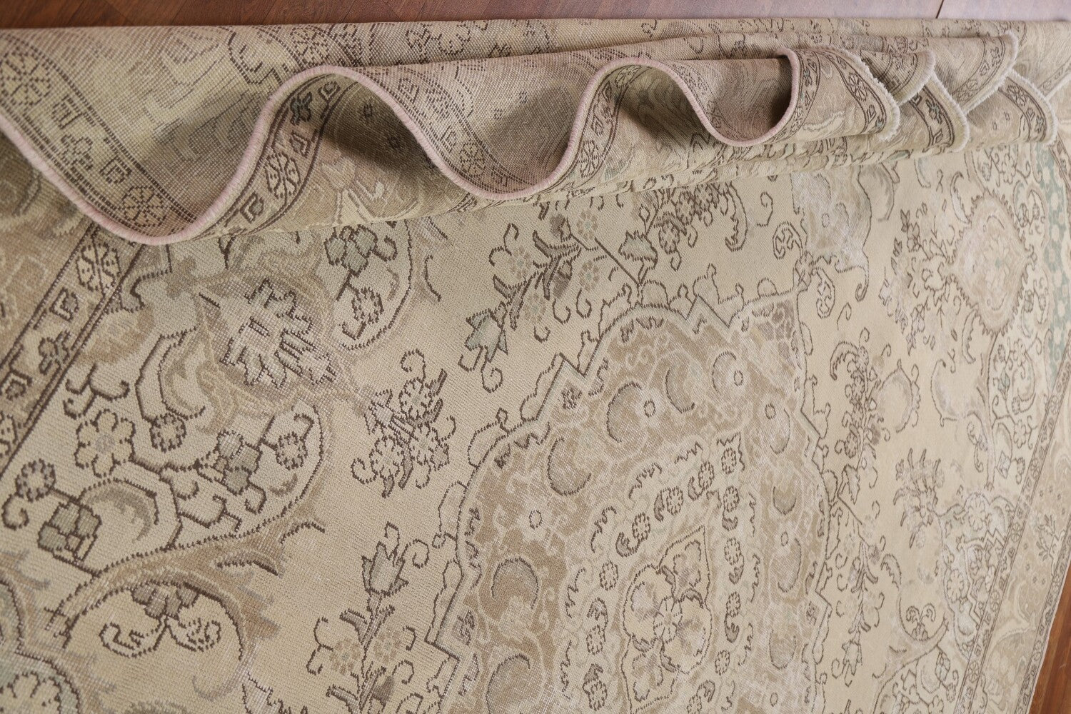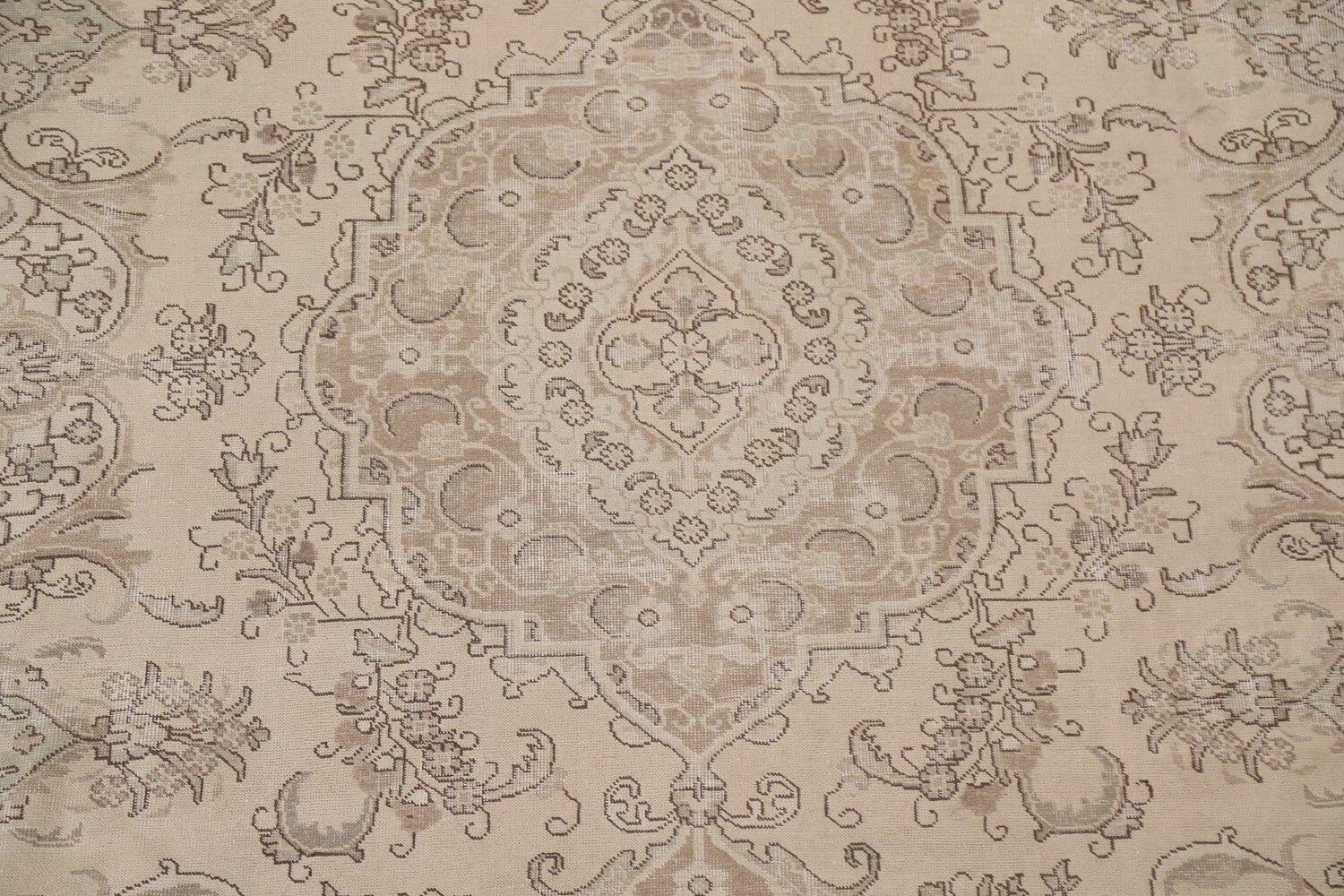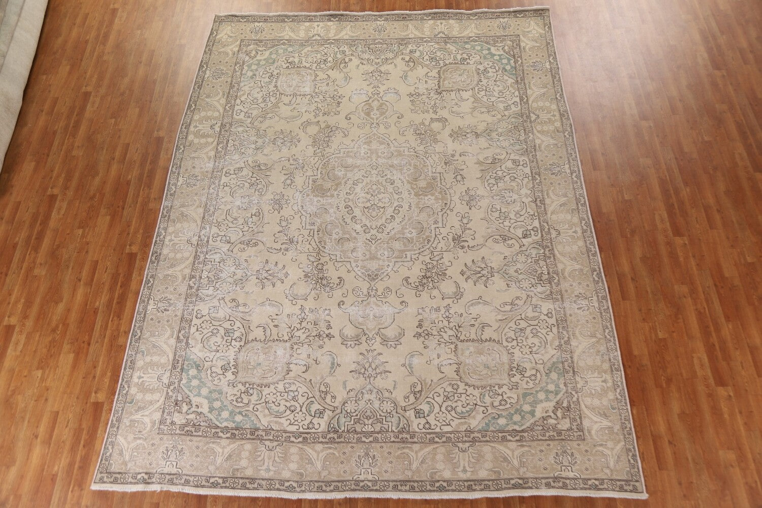 A Beautiful Genuine Persia ( Persia ) Tabriz rug is Hand Knotted by skillful weavers in Persia ( Persia ) with 100% Wool Material. This rug is in Very Good (Evenly Low Pile) condition. dimensions are 12' 6'' X 9' 5'' in foot and 381 X 287 in centimeter. the primary color is Beige & Ivories.
