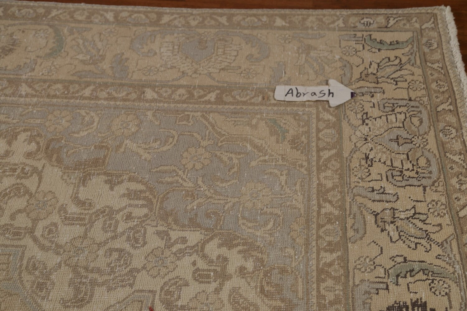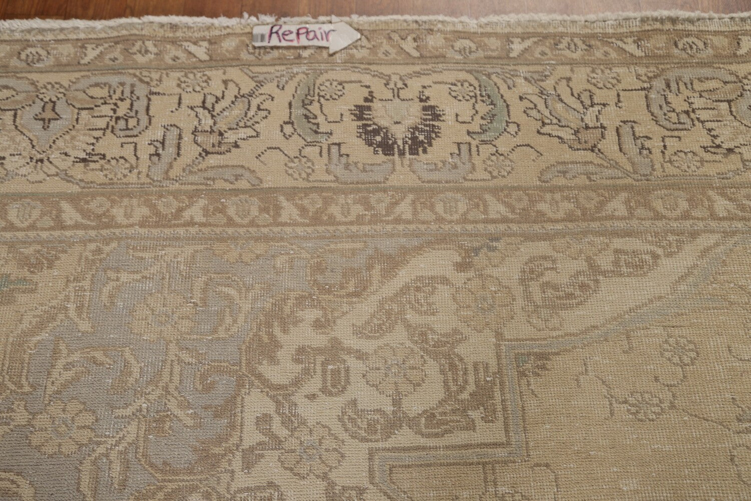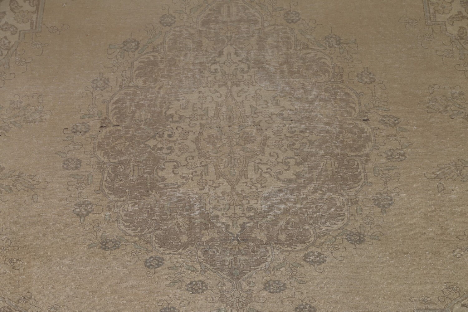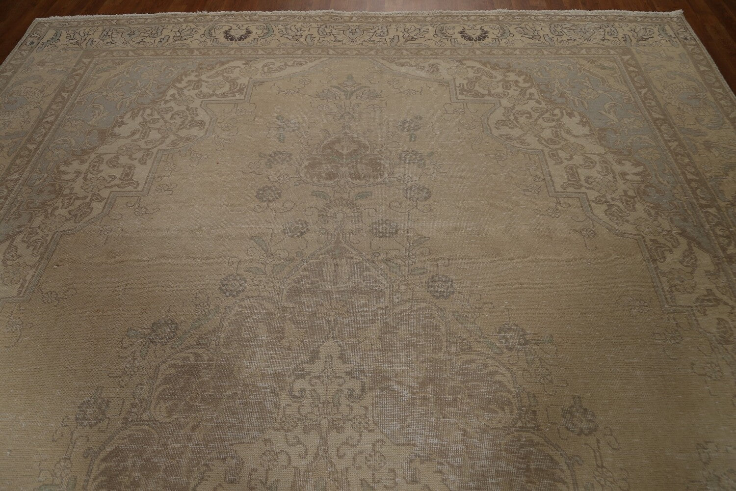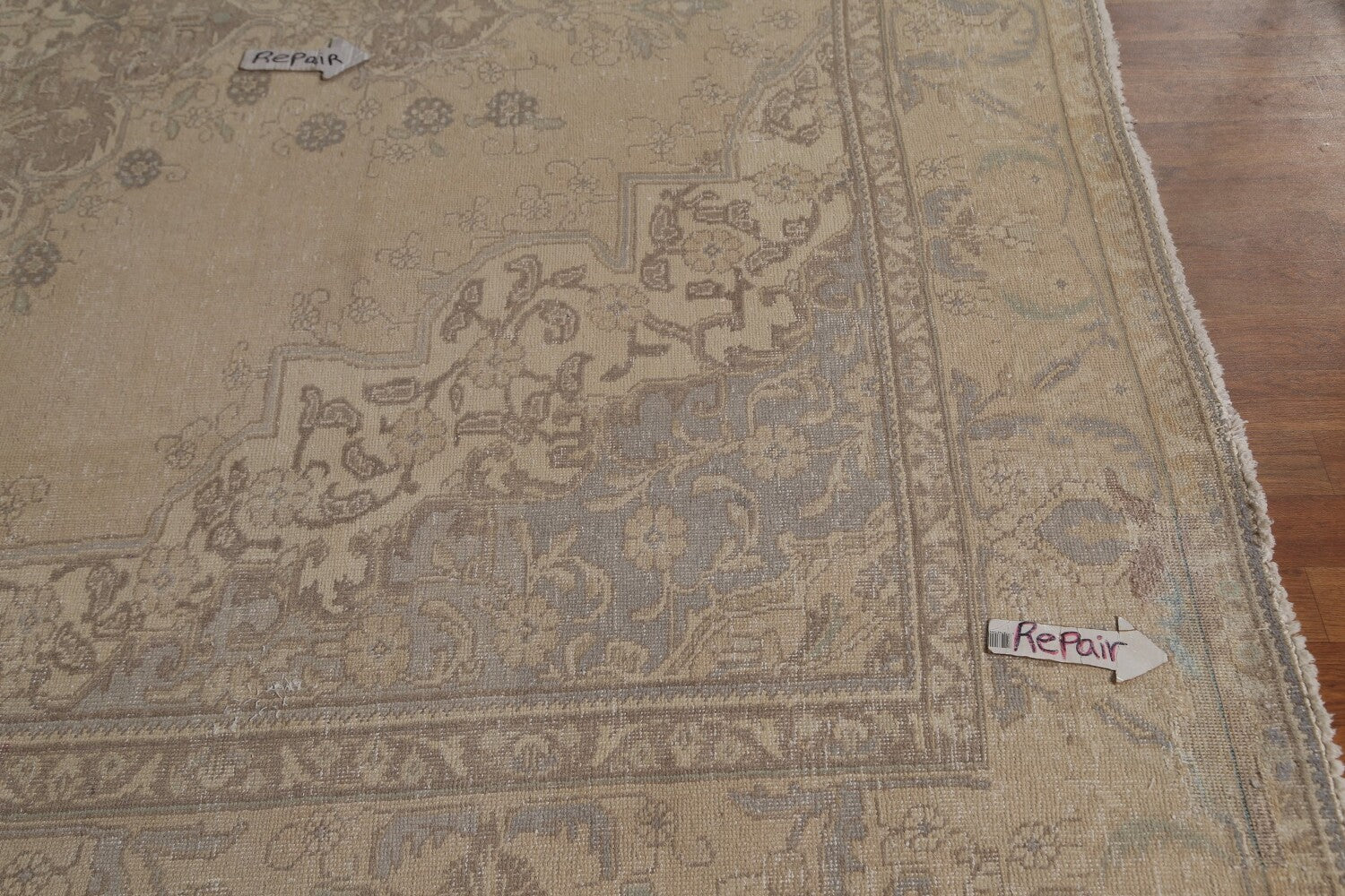 A Beautiful Genuine Persia ( Persia ) Tabriz rug is Hand Knotted by skillful weavers in Persia ( Persia ) with 100% Wool Material. This rug is in Very Good (Evenly Low Pile-Abrash-Repair) condition. dimensions are 12' 8'' X 9' 5'' in foot and 386 X 287 in centimeter. the primary color is Beige & Ivories.