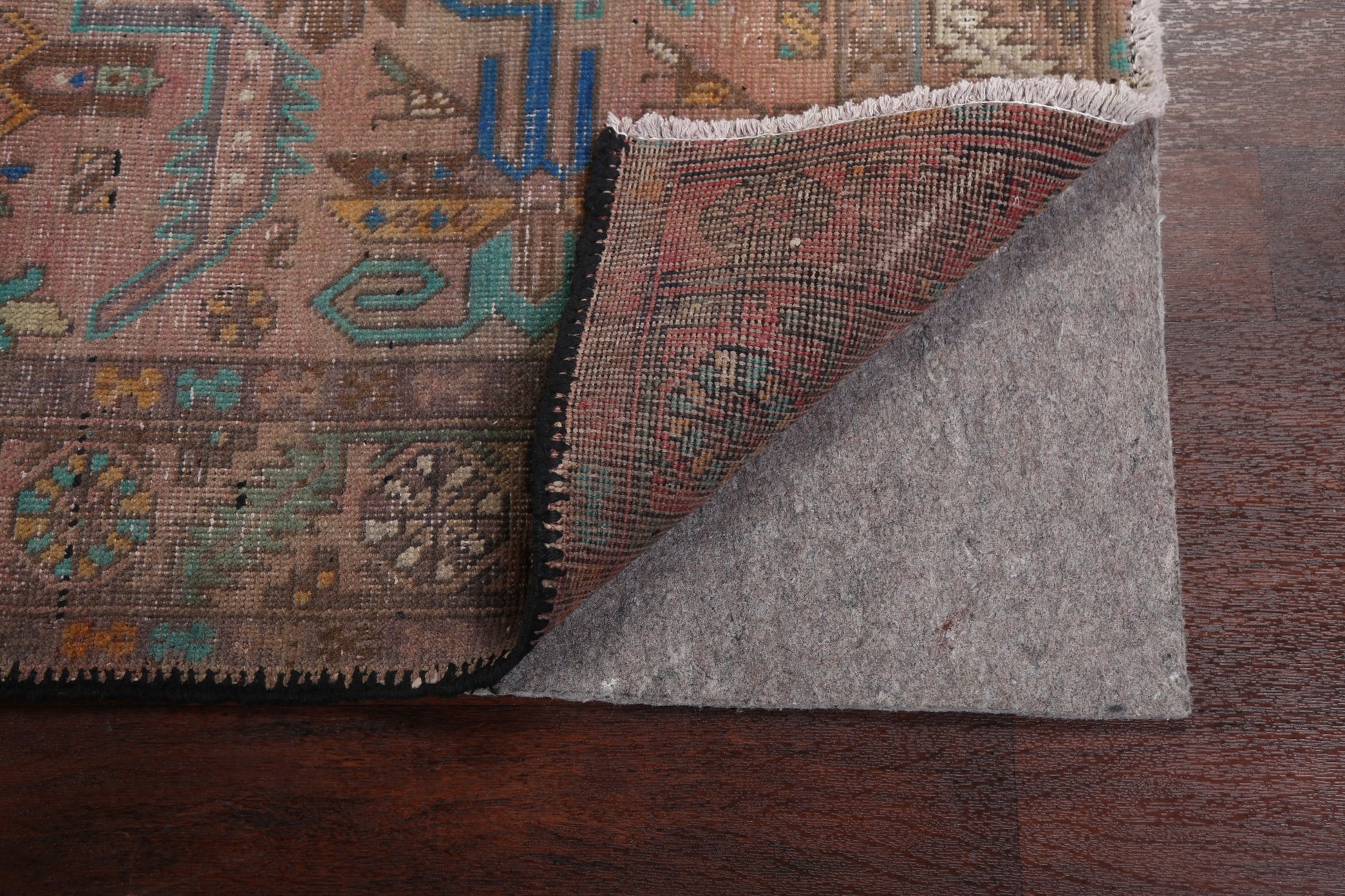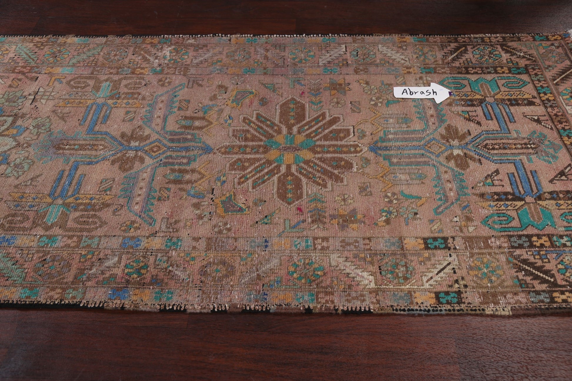 A Beautiful Genuine Persia ( Persia ) Tabriz rug is Hand Knotted by skillful weavers in Persia ( Persia ) with 100% Wool Material. This rug is in Very Good (Evenly Low Pile-Abrash) condition. dimensions are 13' 7'' X 3' 7'' in foot and 414 X 109 in centimeter. the primary color is Coral.
