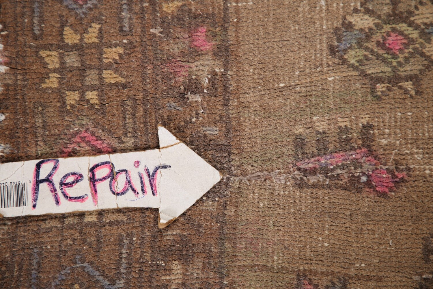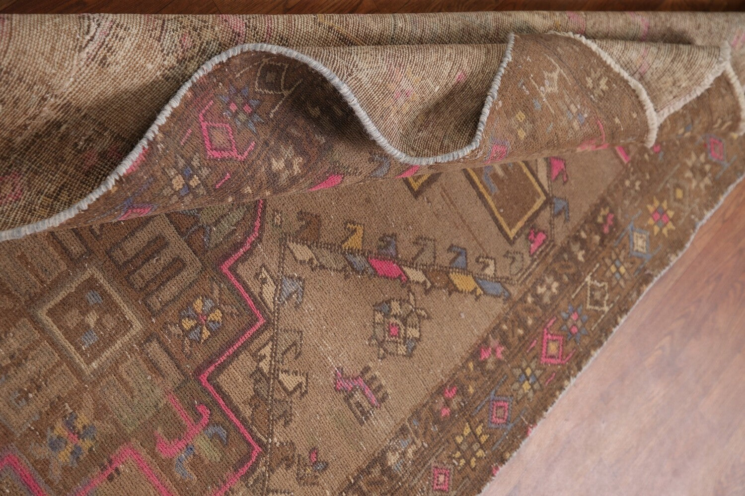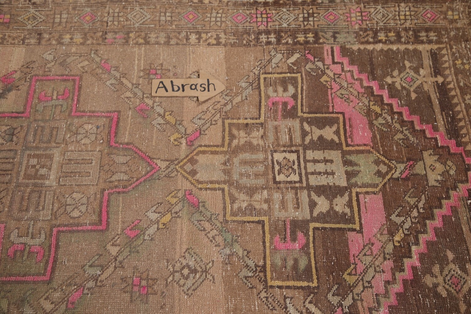 A Beautiful Genuine Persia ( Persia ) Heriz rug is Hand Knotted by skillful weavers in Persia ( Persia ) with 100% Wool Material. This rug is in Very Good (Low Pile-Abrash-Repair) condition. dimensions are 11' 3'' X 3' 5'' in foot and 343 X 104 in centimeter. the primary color is Brown.