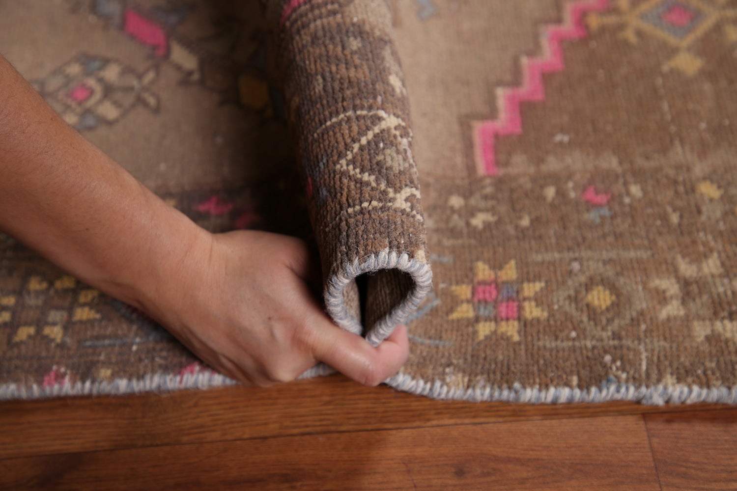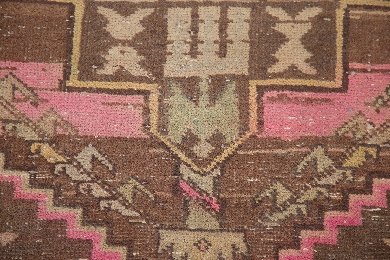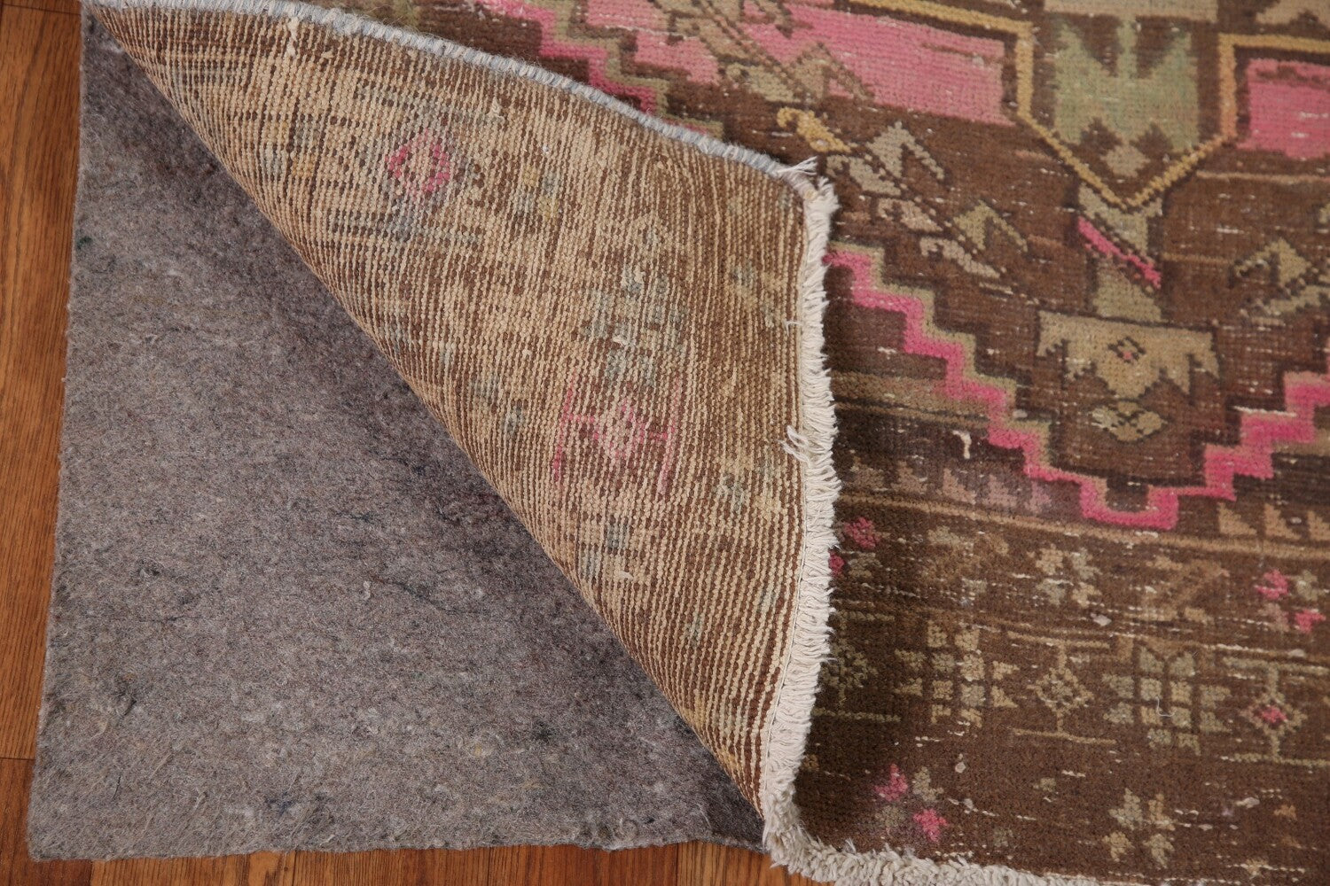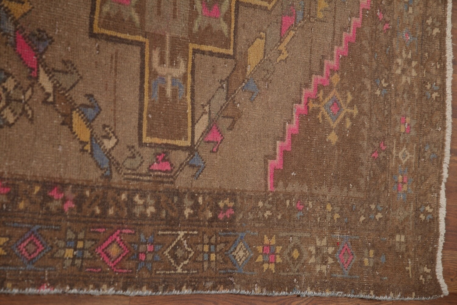 A Beautiful Genuine Persia ( Persia ) Heriz rug is Hand Knotted by skillful weavers in Persia ( Persia ) with 100% Wool Material. This rug is in Very Good (Low Pile-Abrash-Repair) condition. dimensions are 11' 3'' X 3' 5'' in foot and 343 X 104 in centimeter. the primary color is Brown.