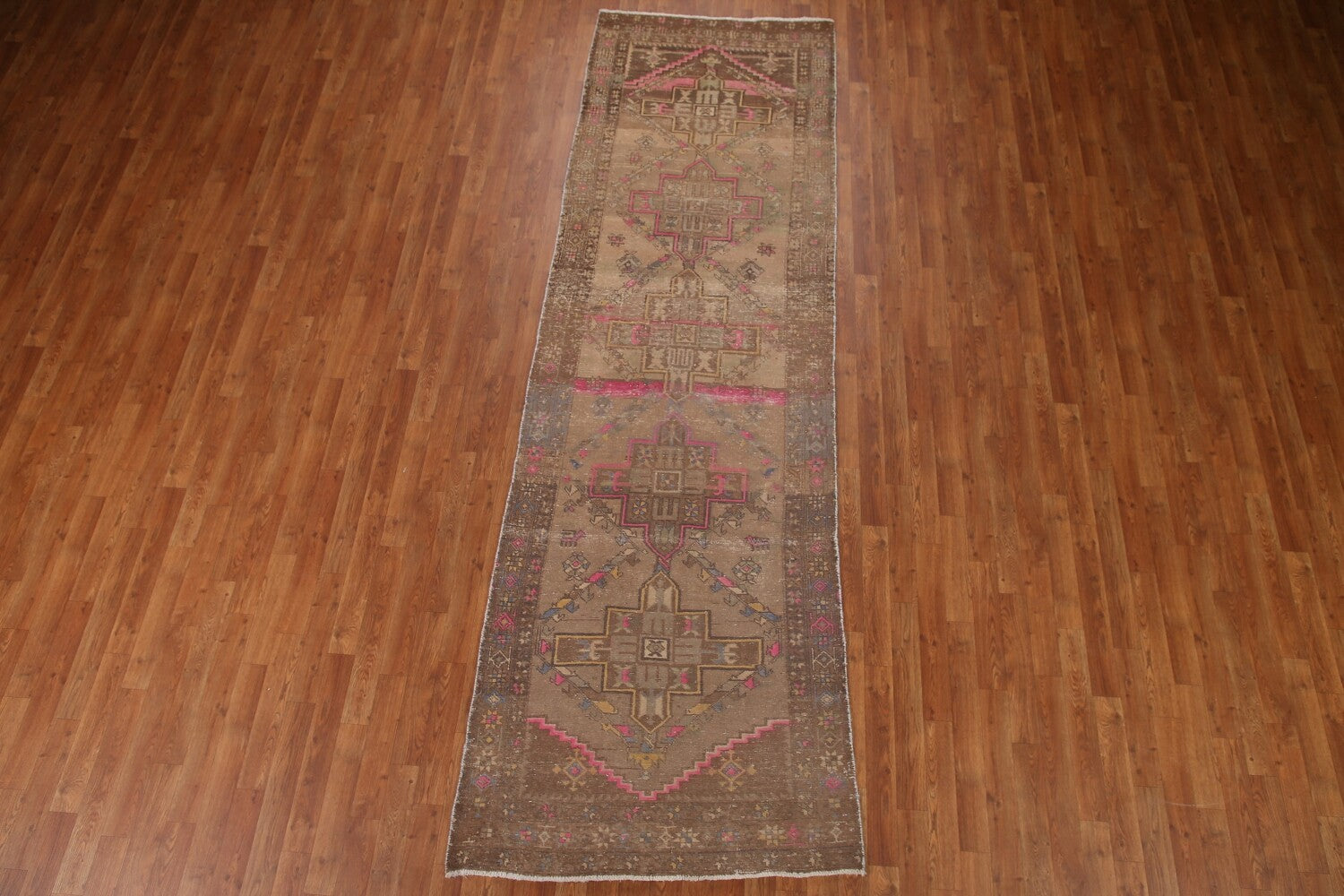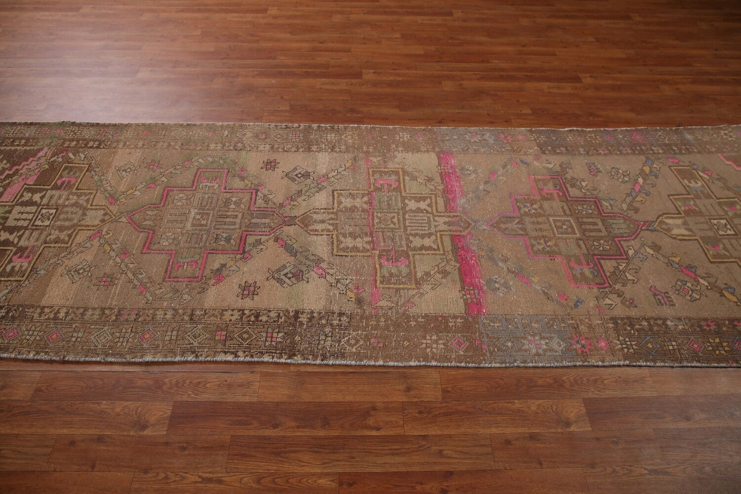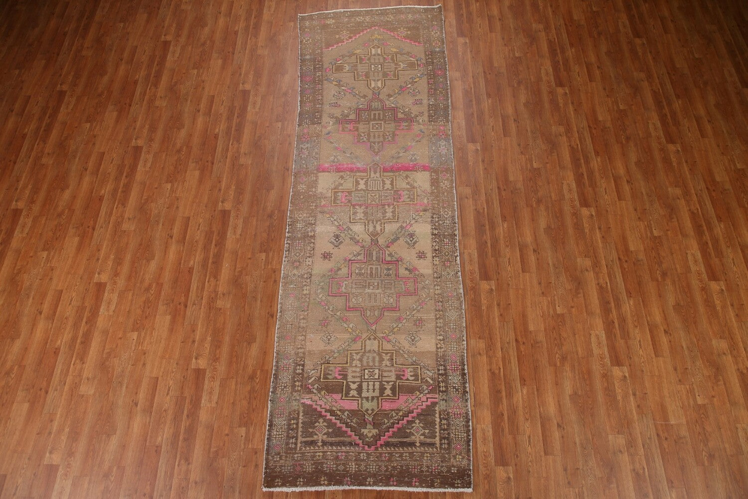 Distressed Vintage Heriz Persian Runner Rug 3x11