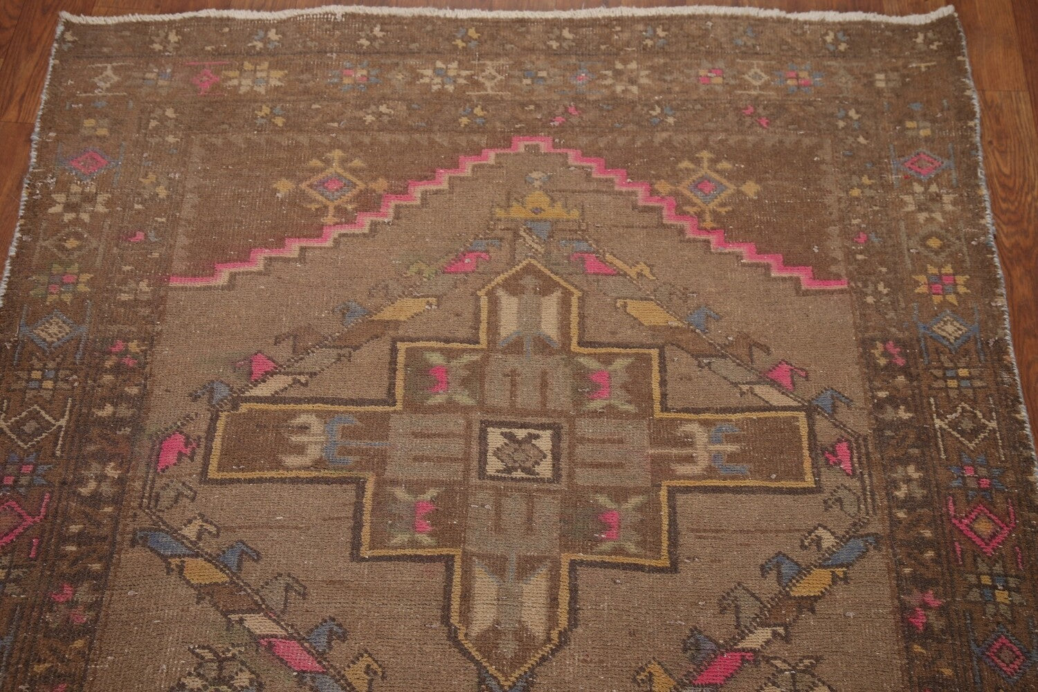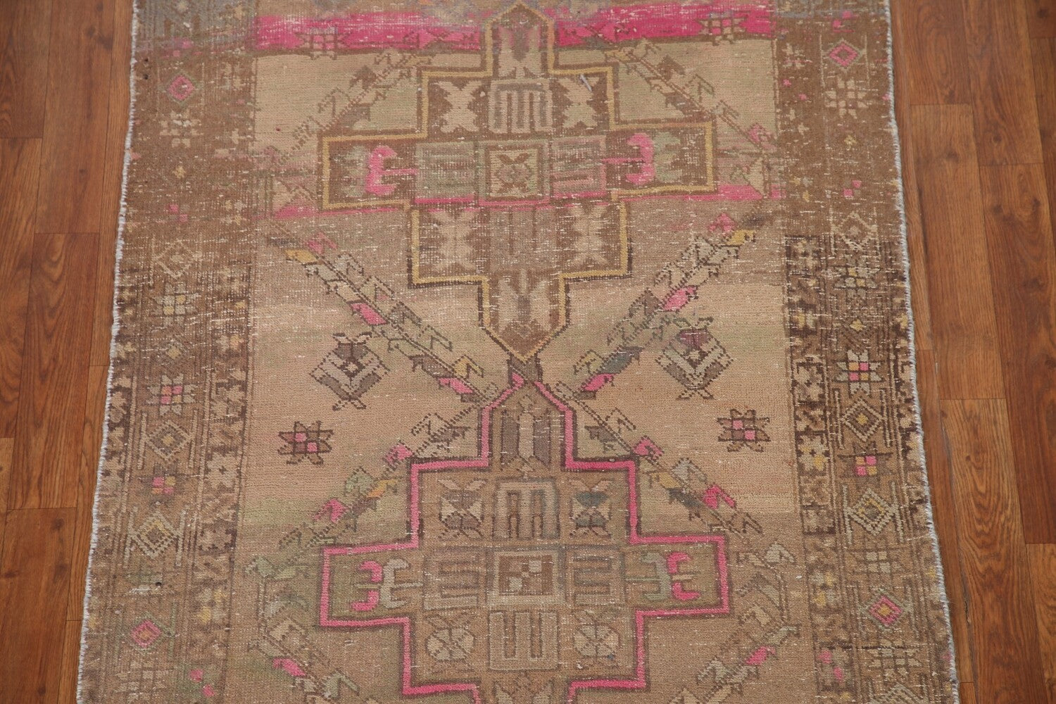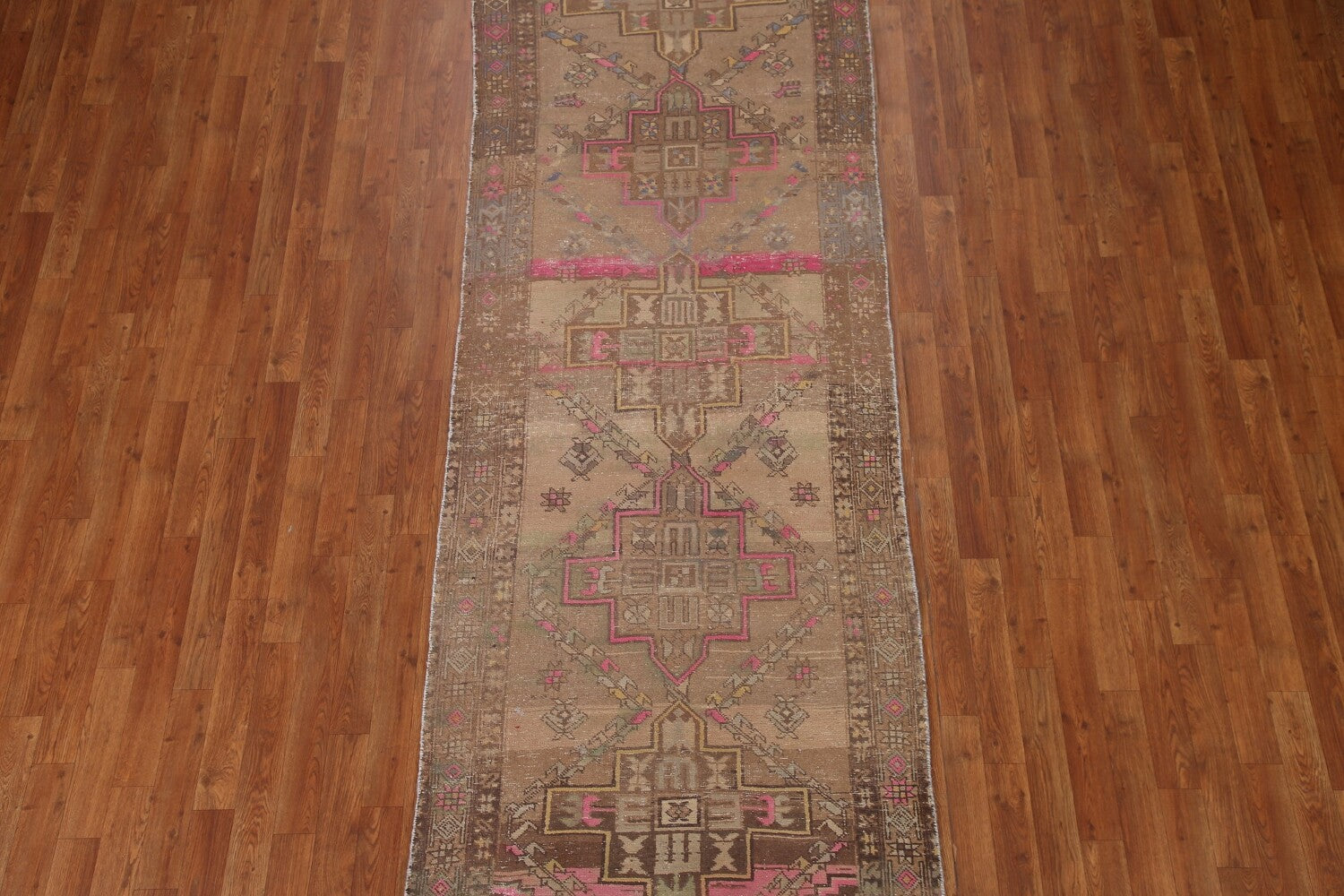 Distressed Vintage Heriz Persian Runner Rug 3x11