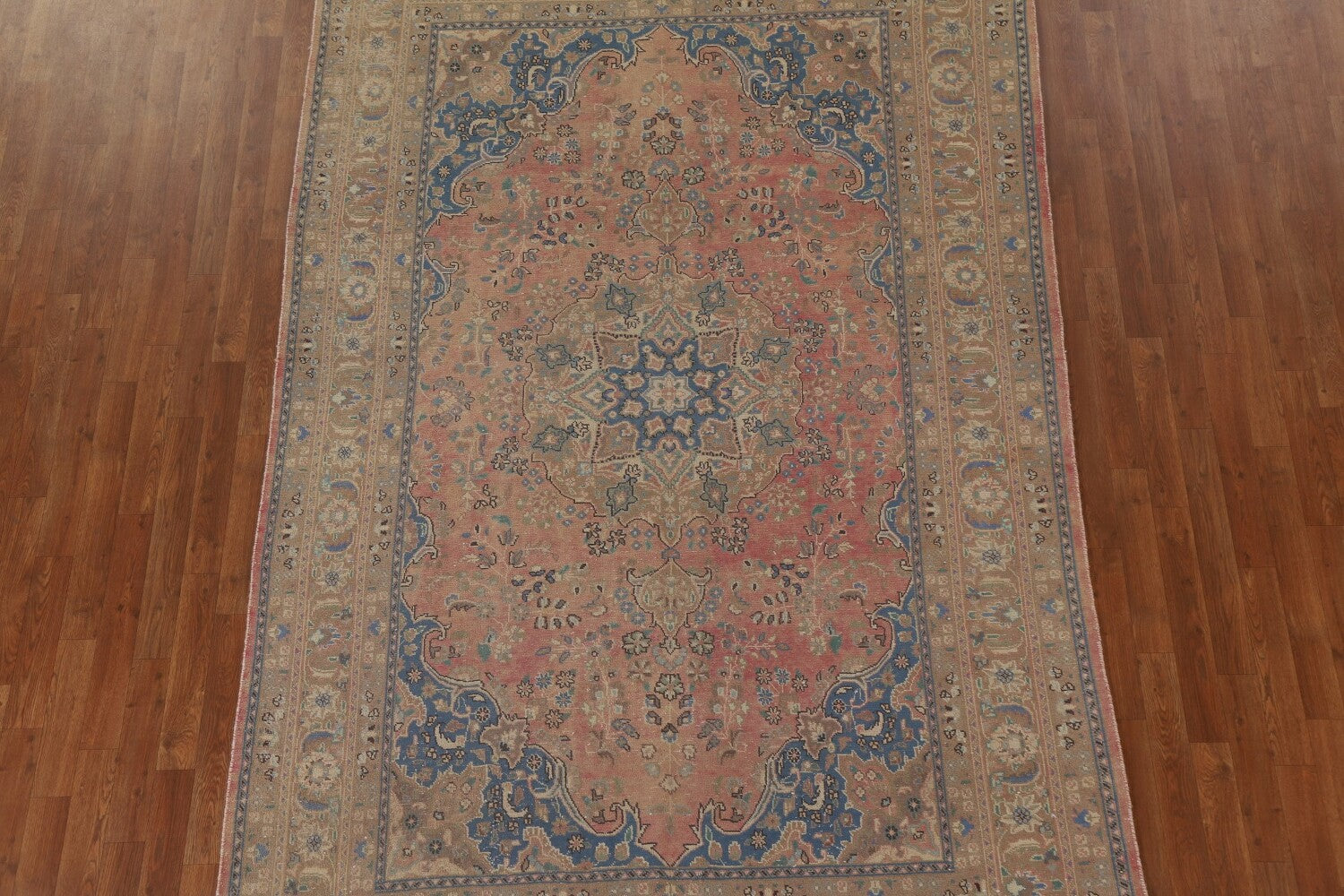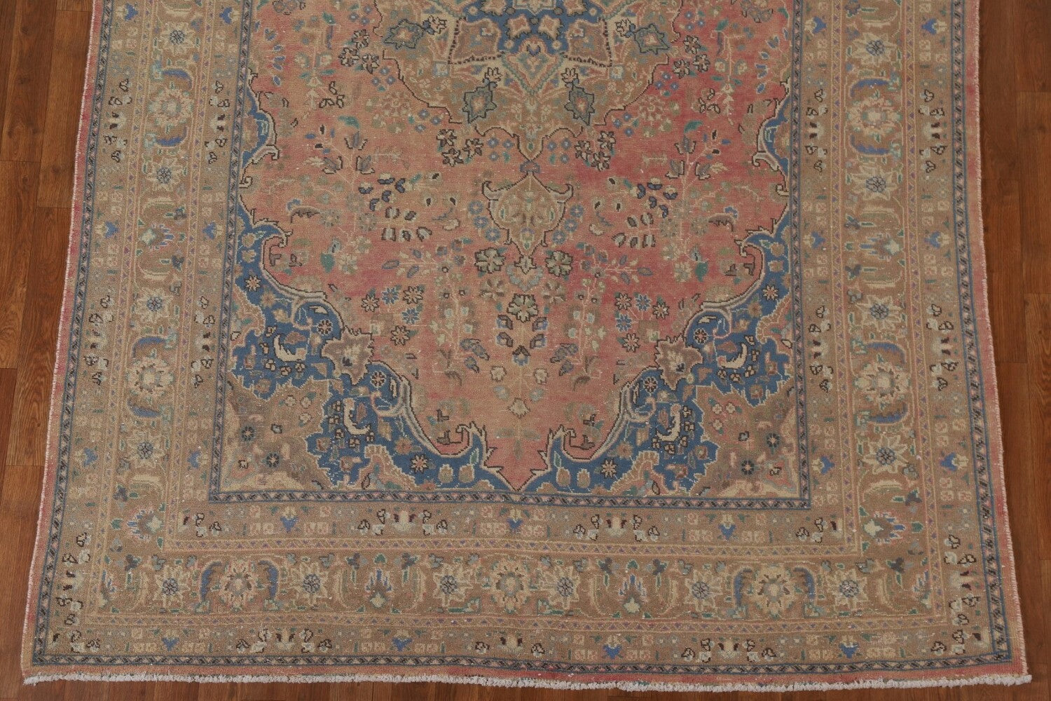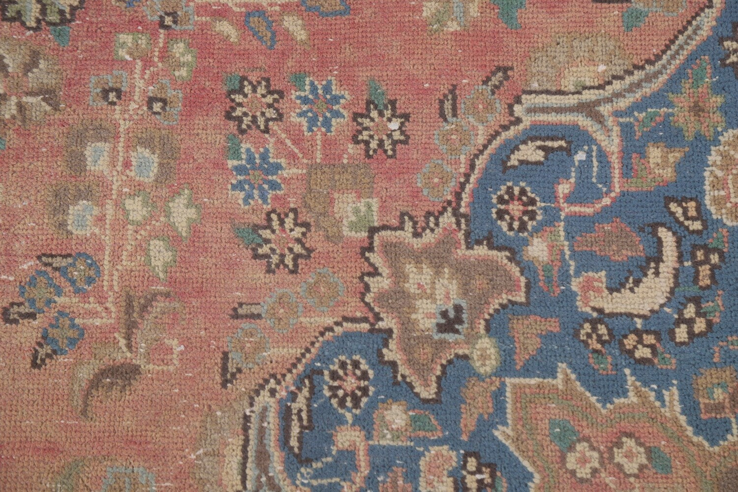 A Beautiful Genuine Persia ( Persia ) Mashad rug is Hand Knotted by skillful weavers in Persia ( Persia ) with 100% Wool Material. This rug is in Very Good (Evenly Low Pile) condition. dimensions are 9' 11'' X 6' 3'' in foot and 302 X 191 in centimeter. the primary color is Pink.