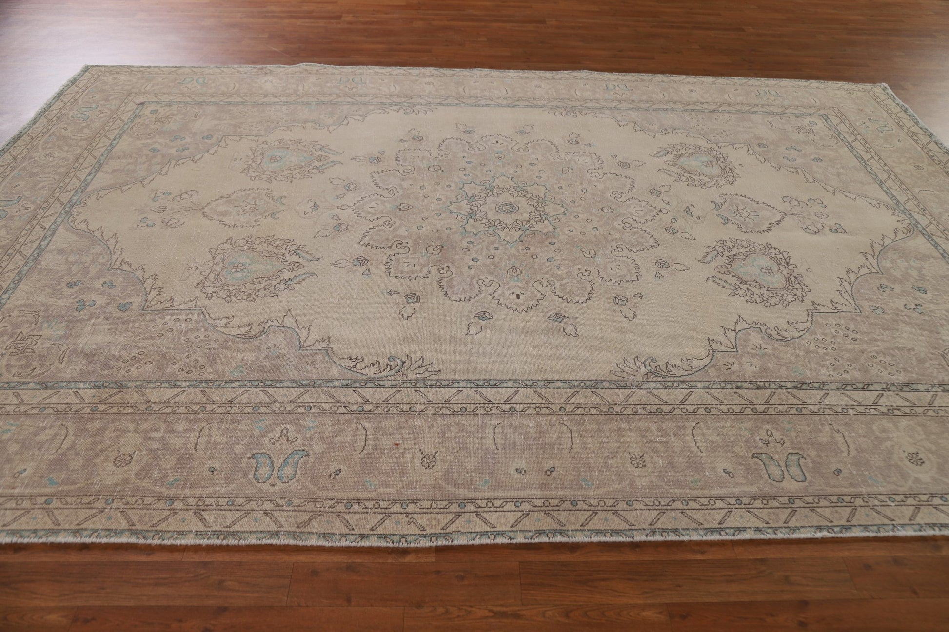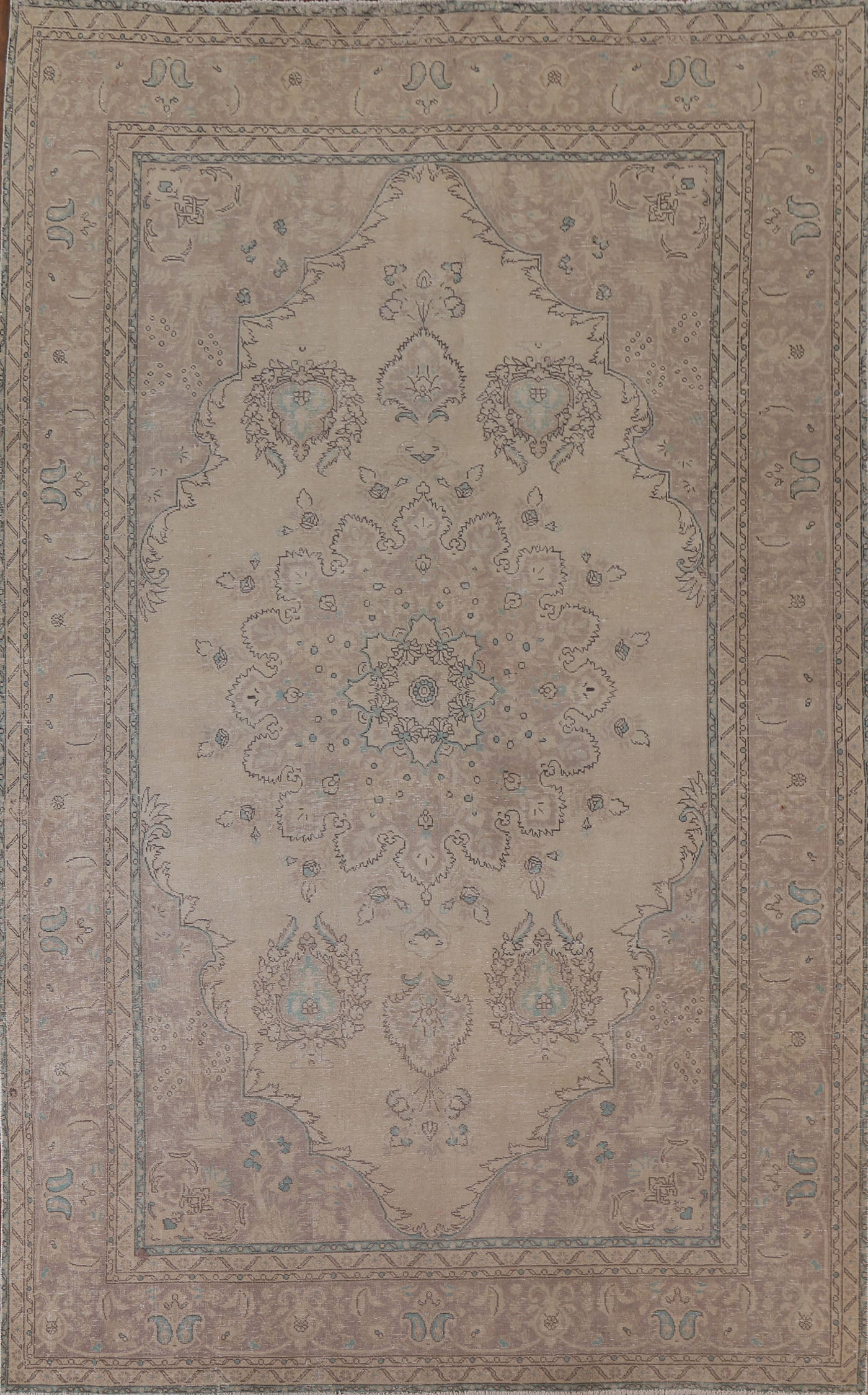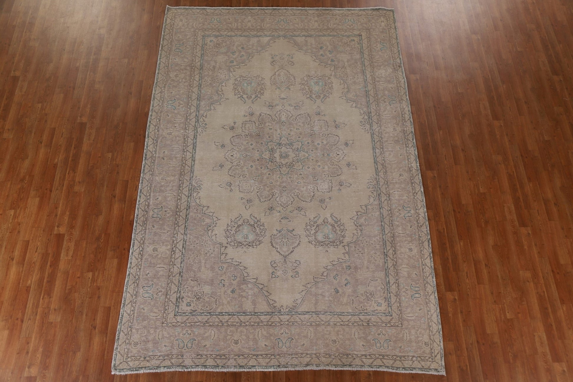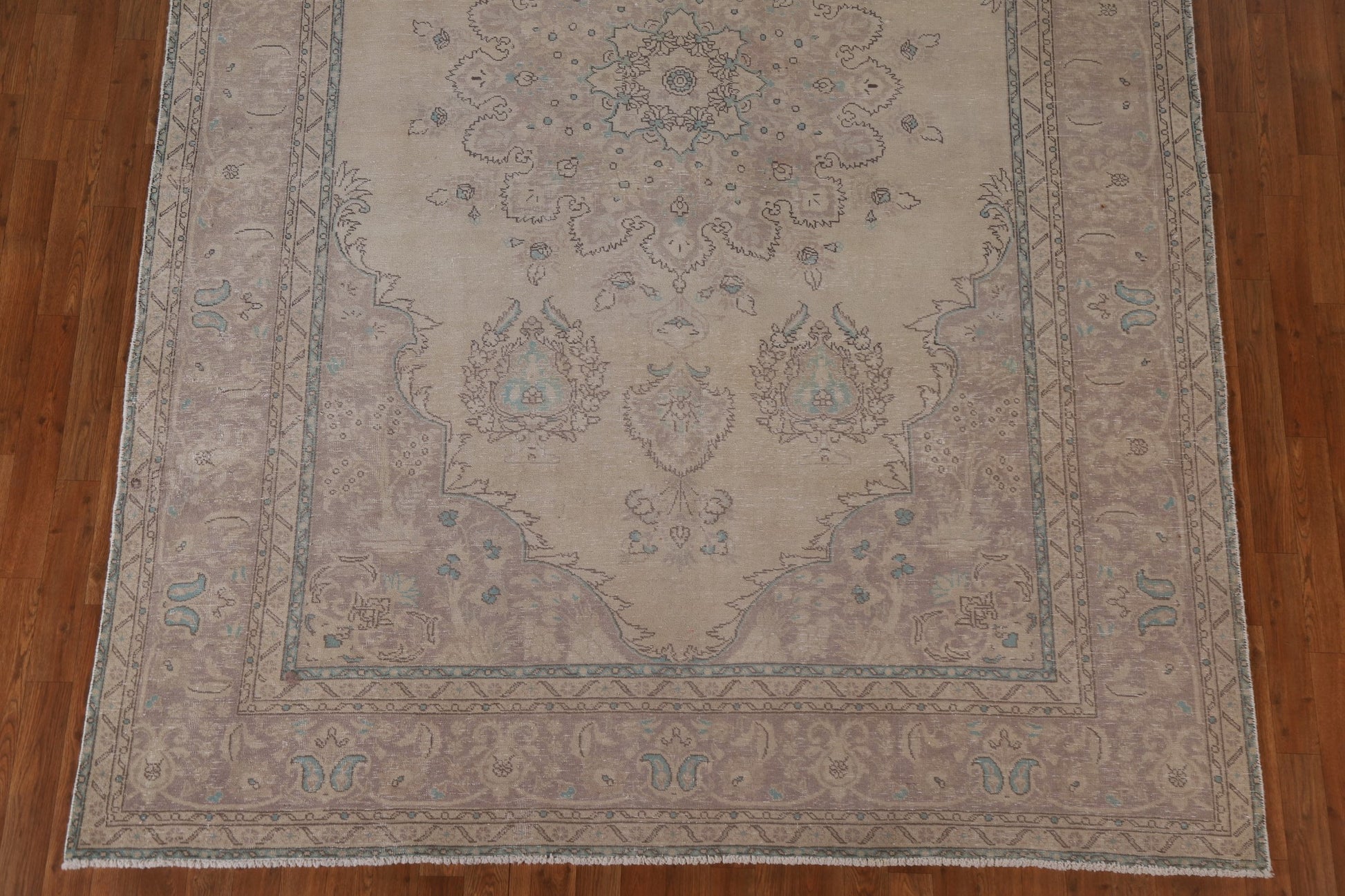 Distressed Vintage Tabriz Persian Area Rug 7x11