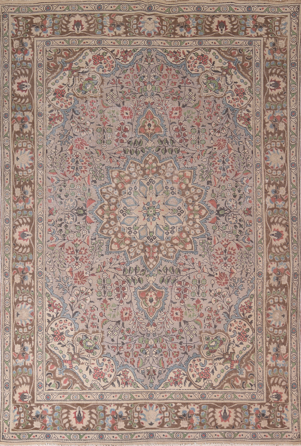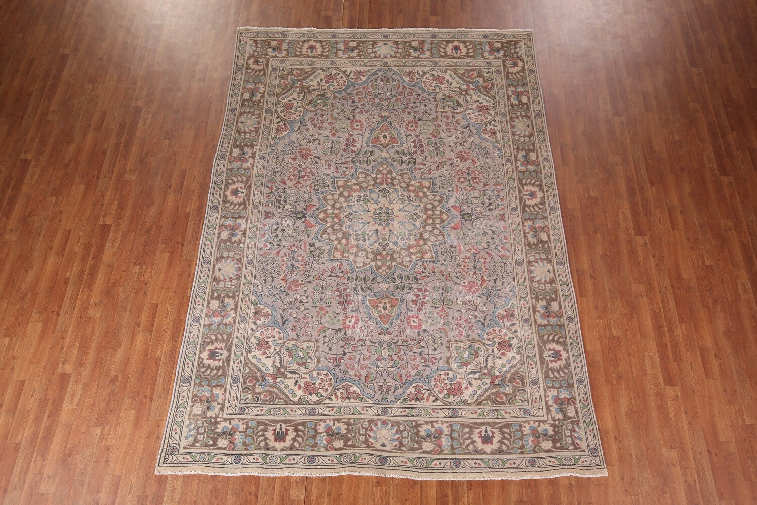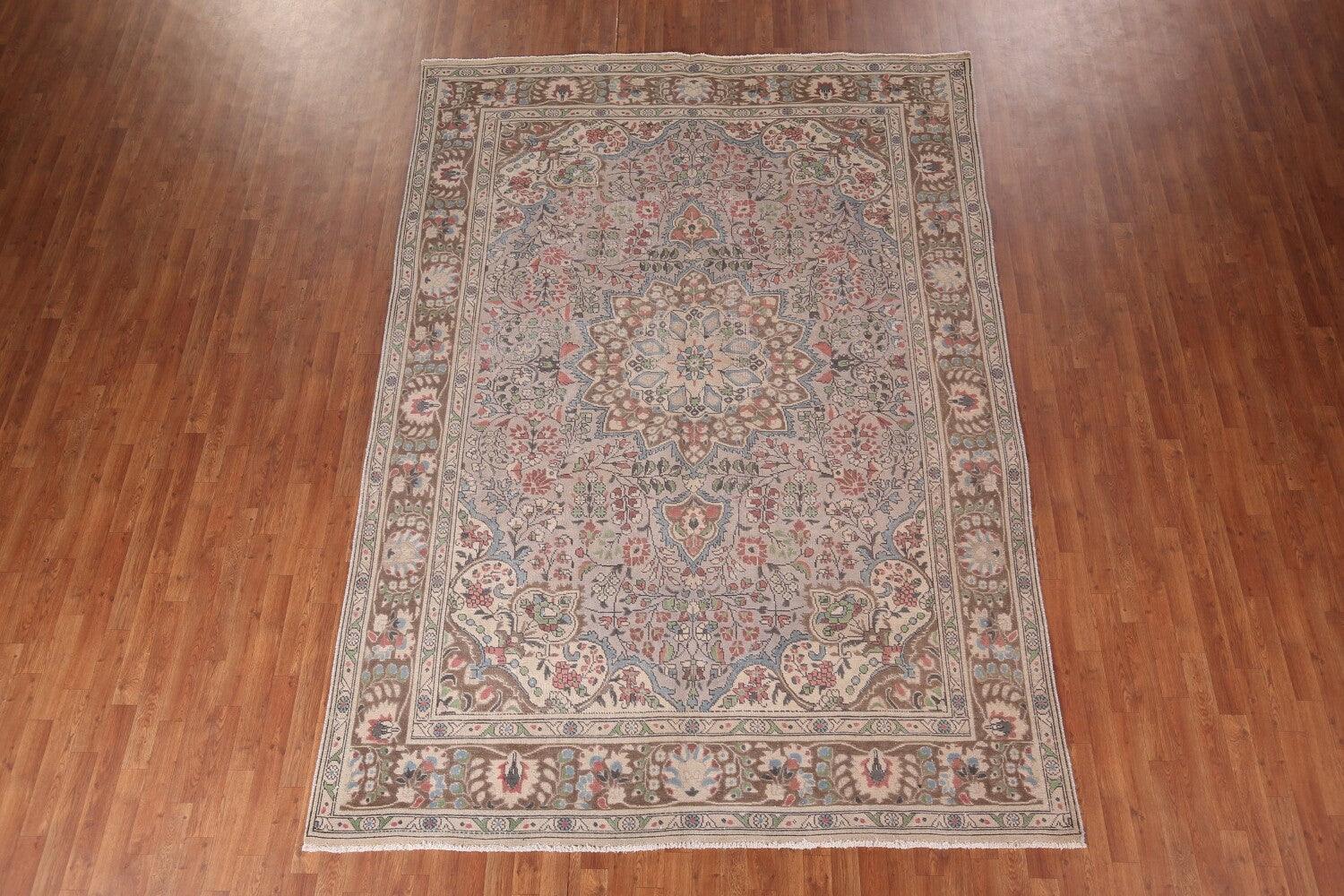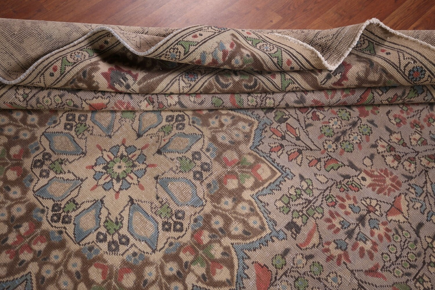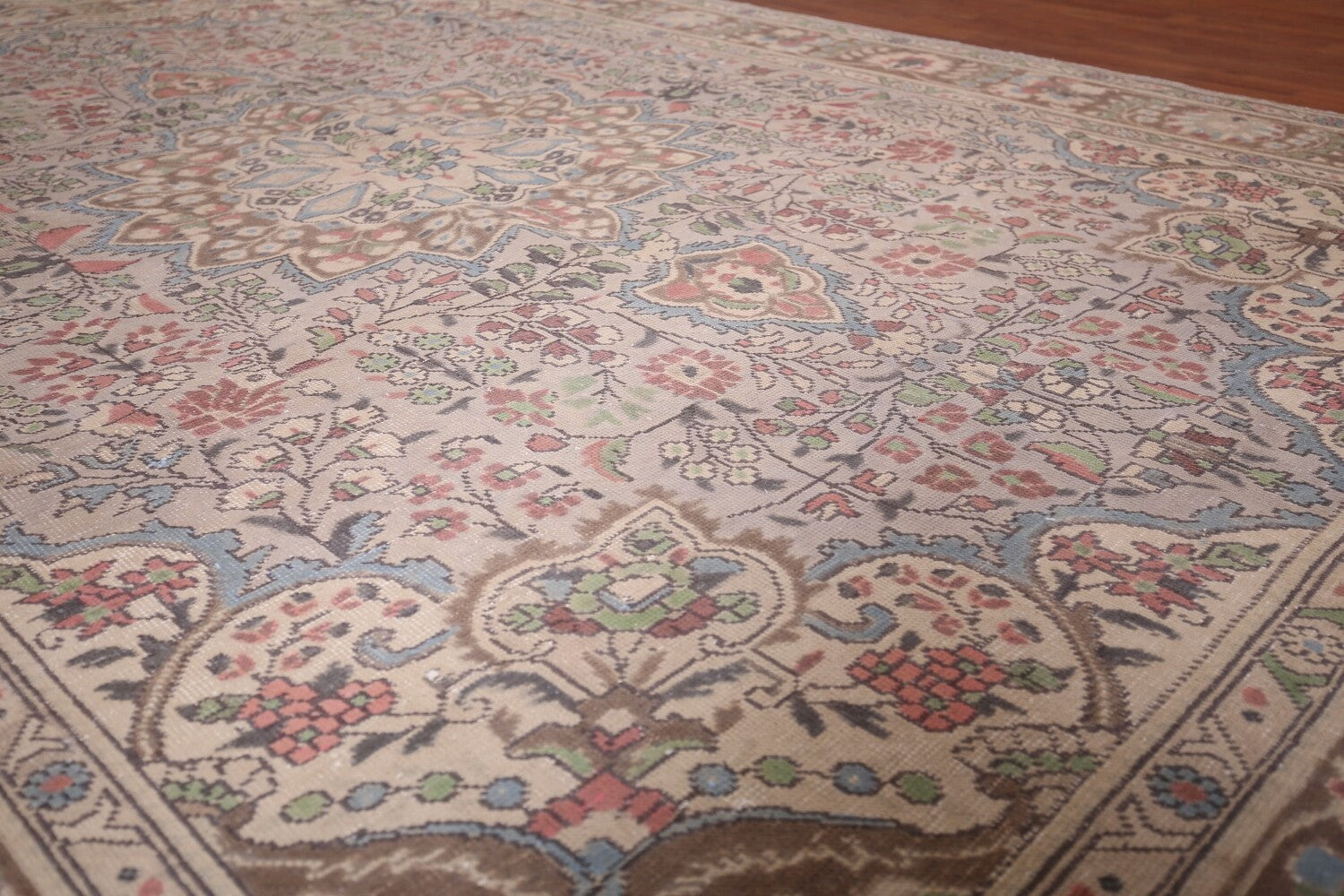 Distressed Wool Floral Tabriz Persian Area Rug 8x11