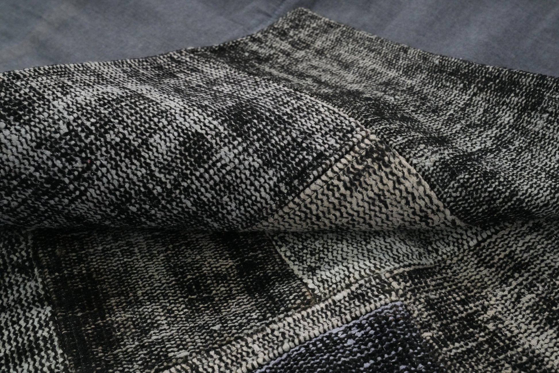 A Beautiful Genuine Turkey Patchwork rug is Hand Knotted by skillful weavers in Turkey with 100% Wool Material. This rug is in New, First Quality condition. dimensions are 9' 11'' X 8' 2'' in foot and 302 X 249 in centimeter. the primary color is Greys & Charcoal.
