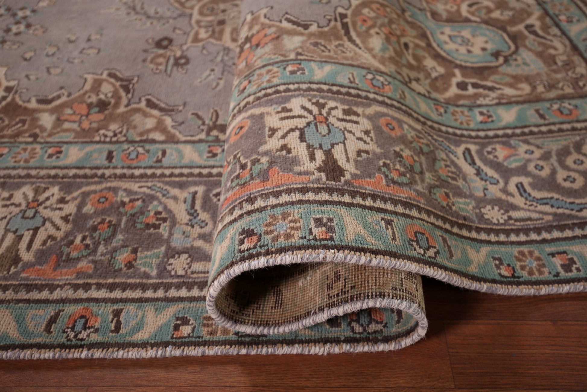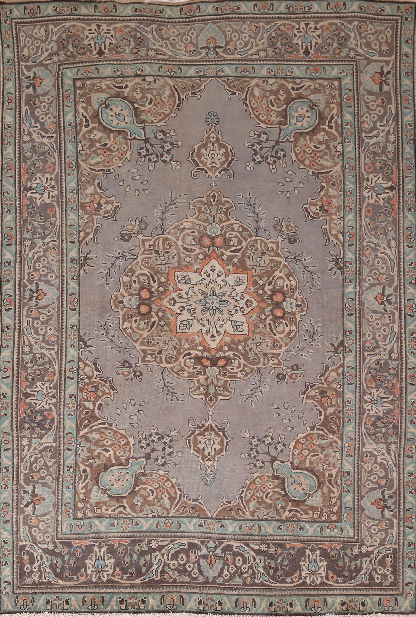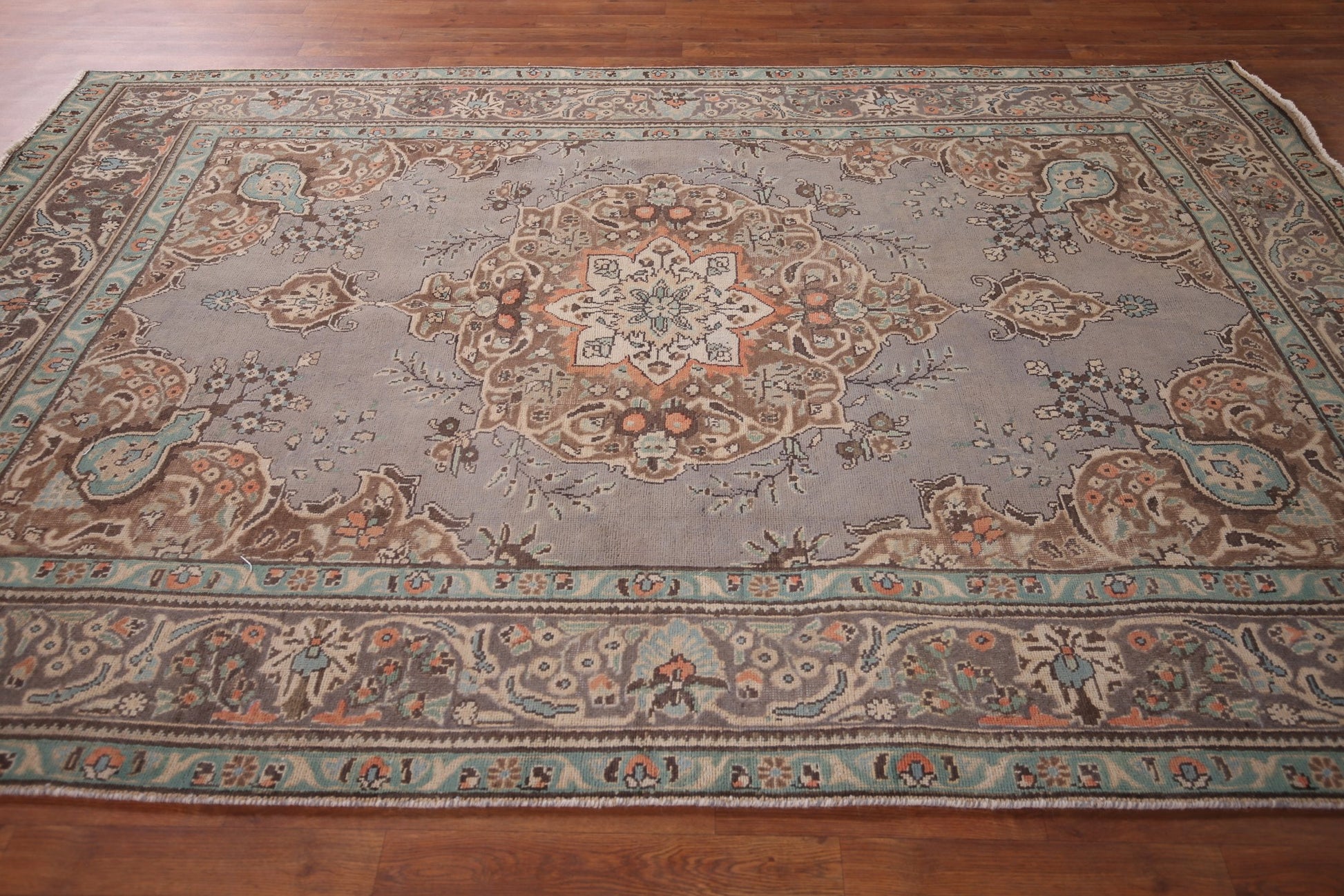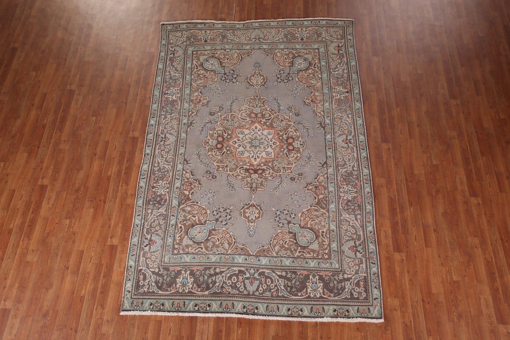 Distressed Wool Gray Tabriz Persian Area Rug 6x10