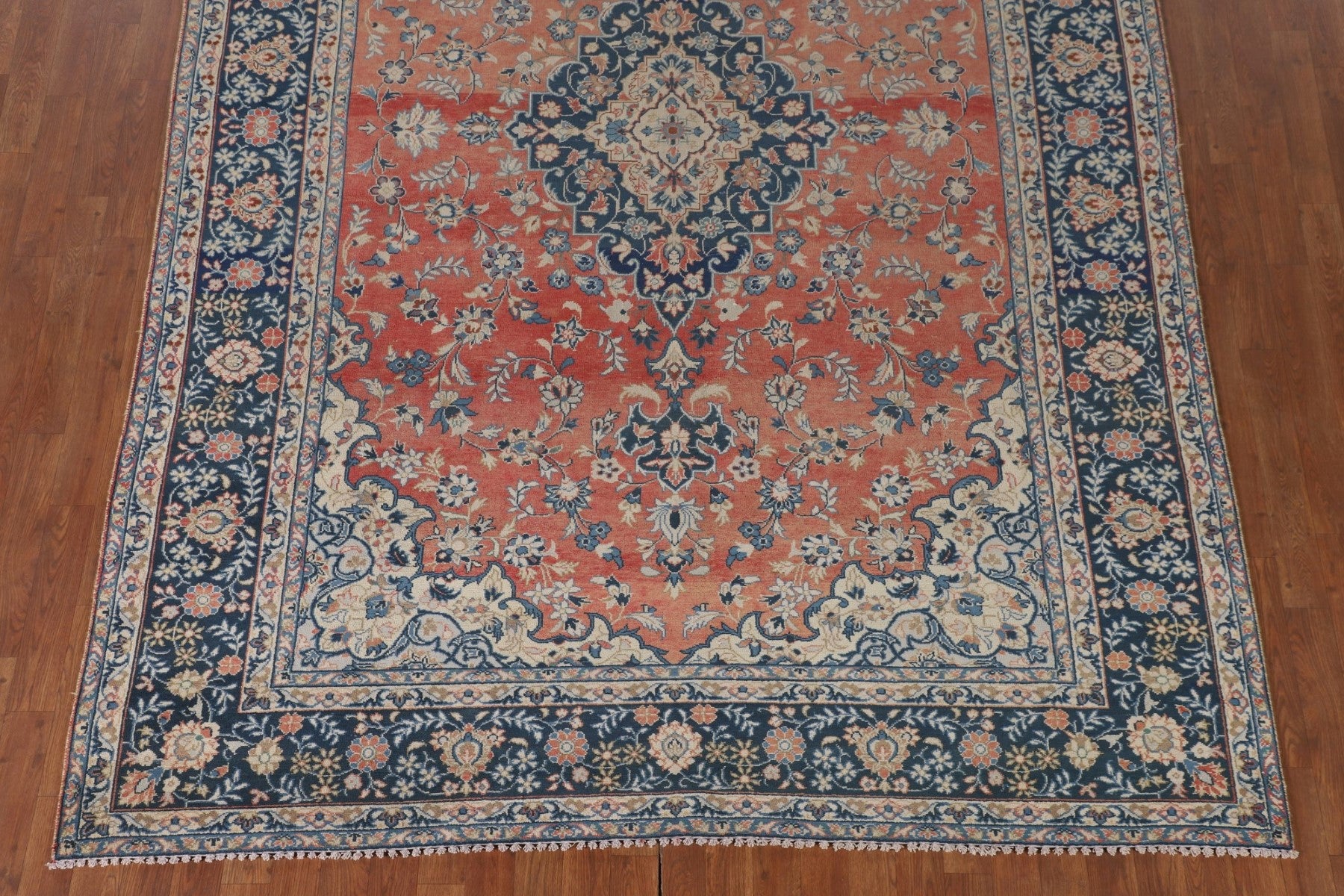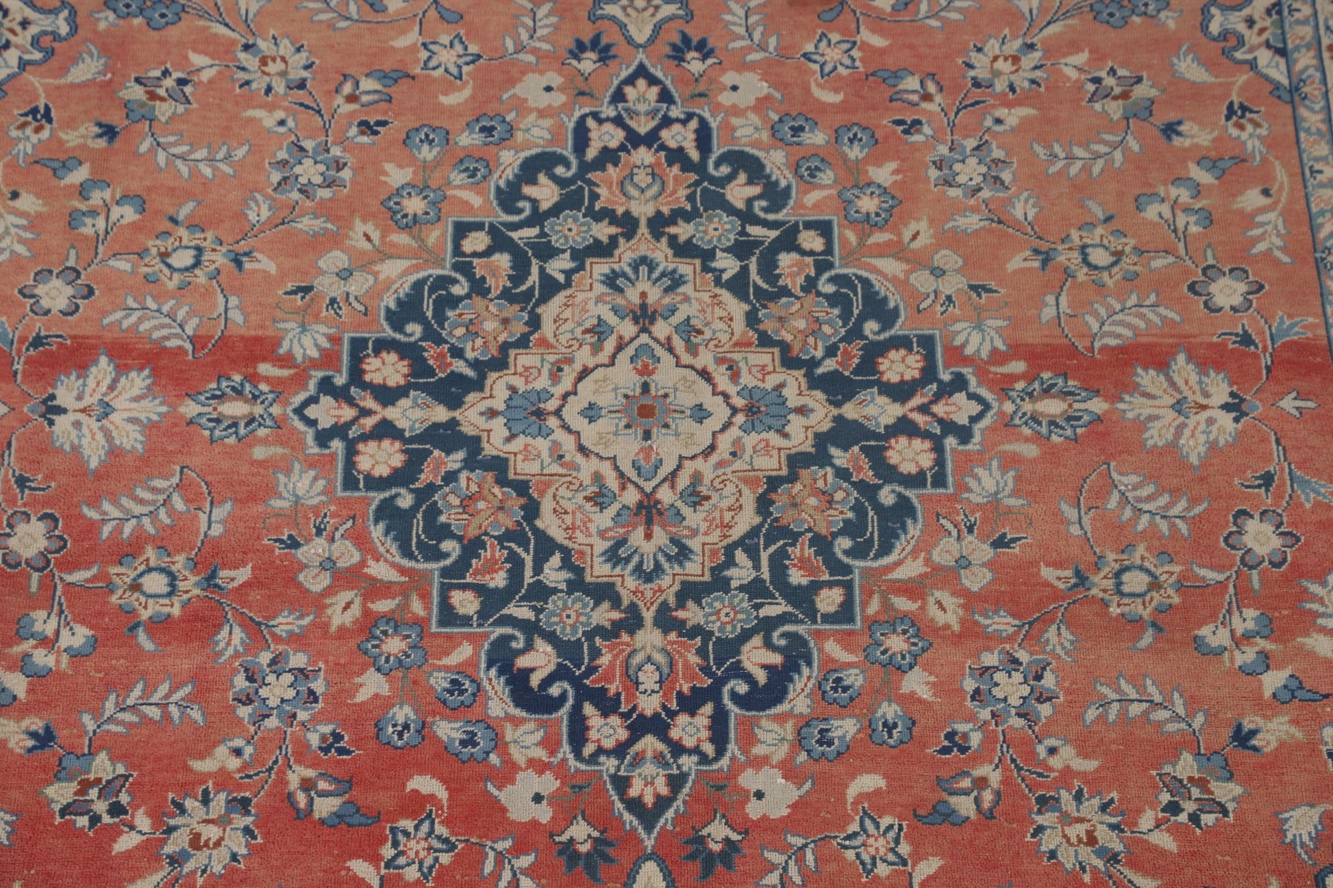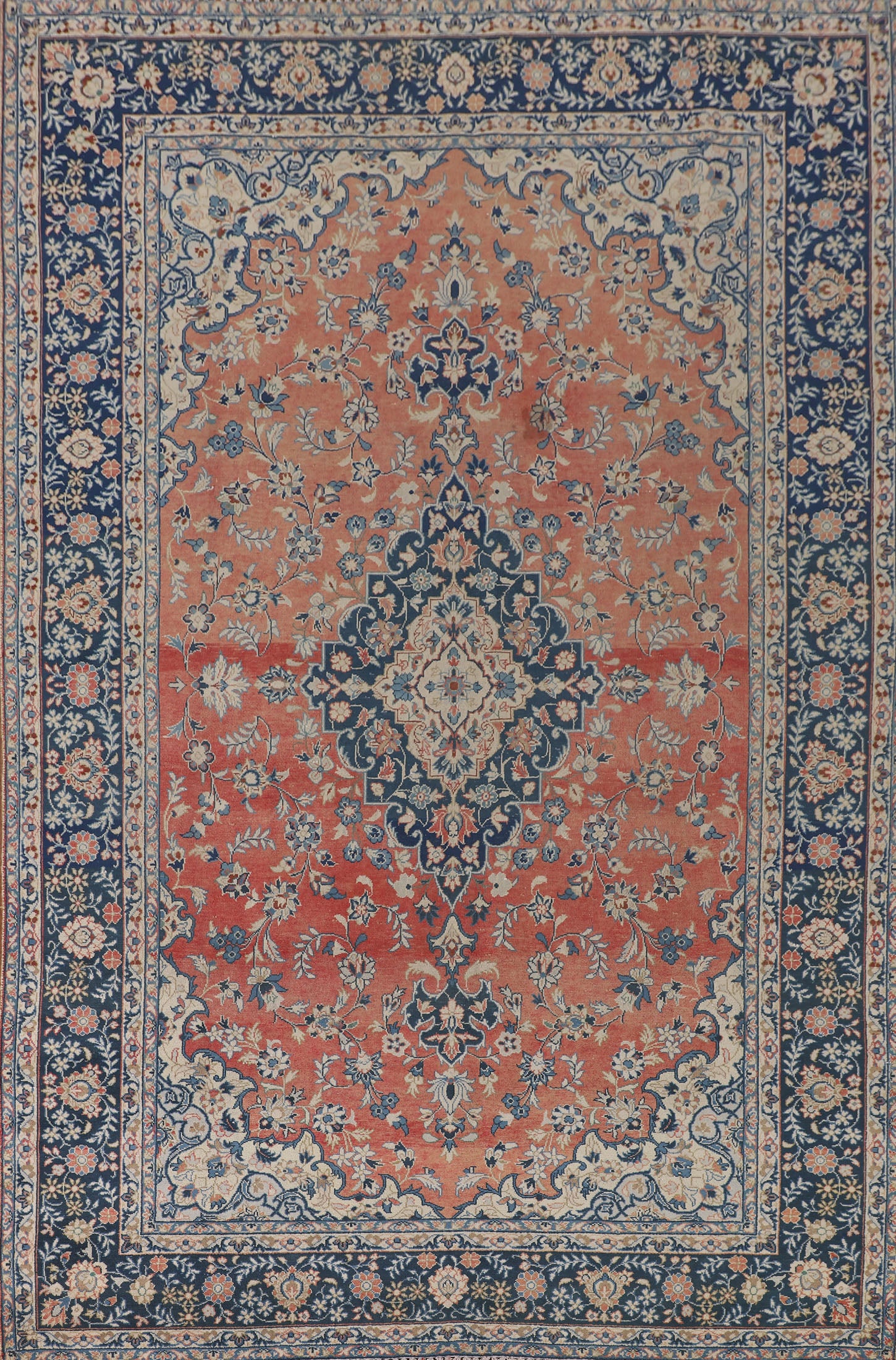A Beautiful Genuine Persia ( Persia ) Kashan rug is Hand Knotted by skillful weavers in Persia ( Persia ) with 100% Wool Material. This rug is in Very Good (Low Pile-Abrash) condition. dimensions are 10' 0'' X 7' 2'' in foot and 305 X 218 in centimeter. the primary color is Coral.