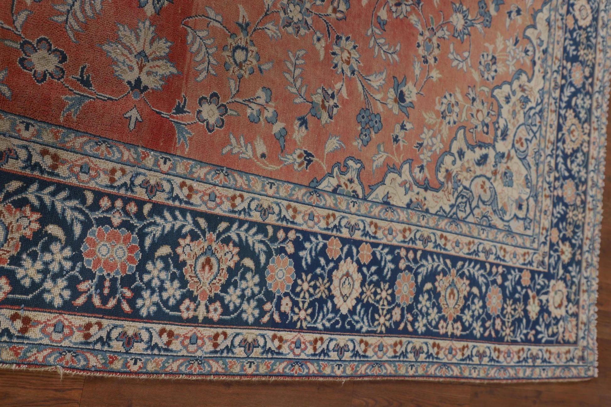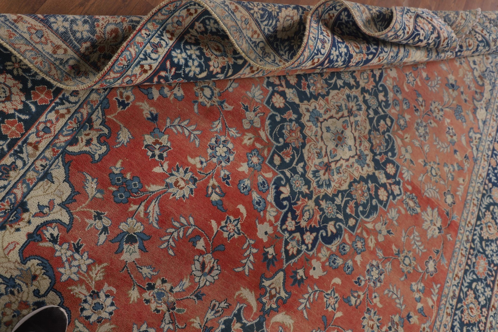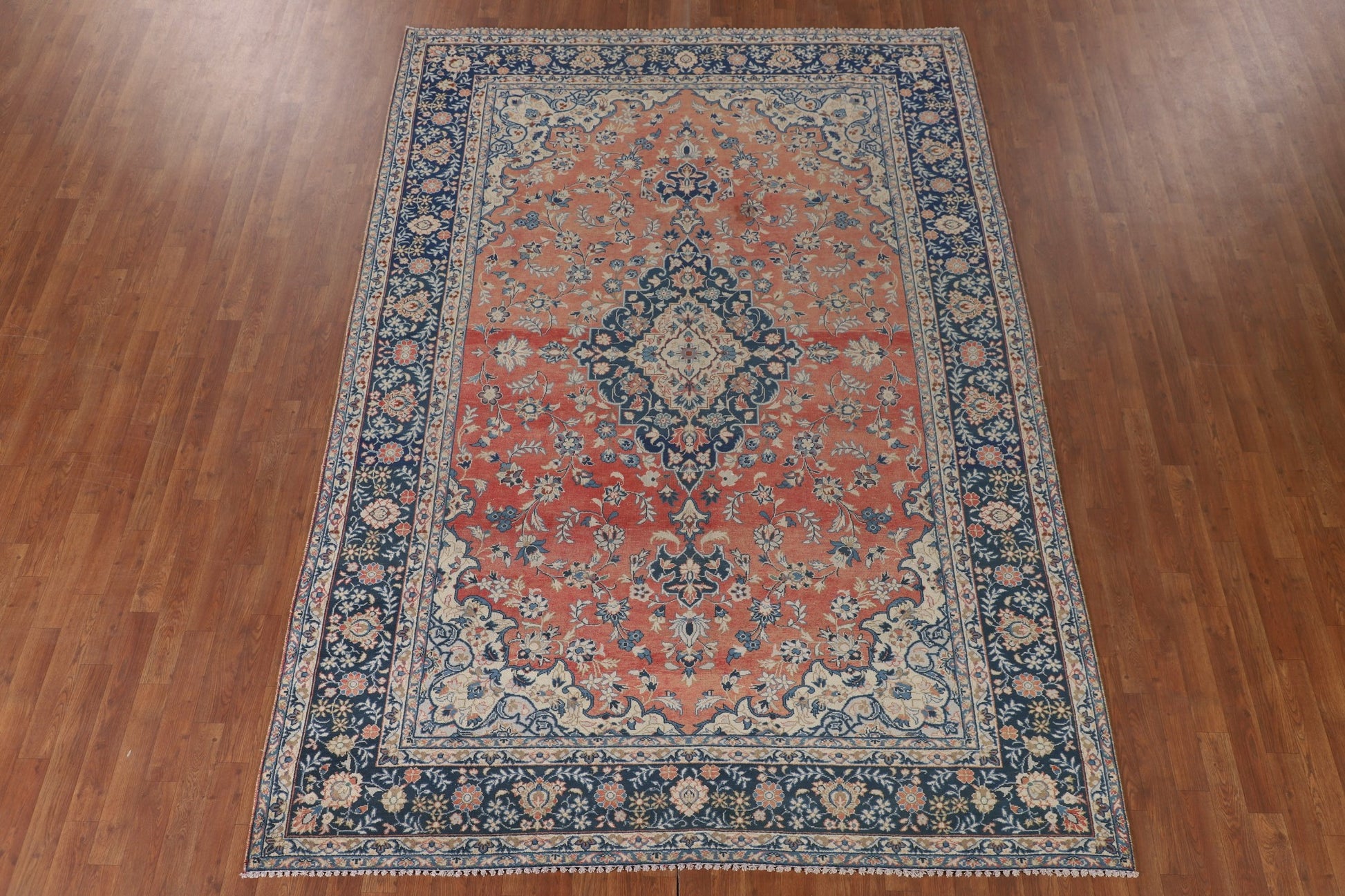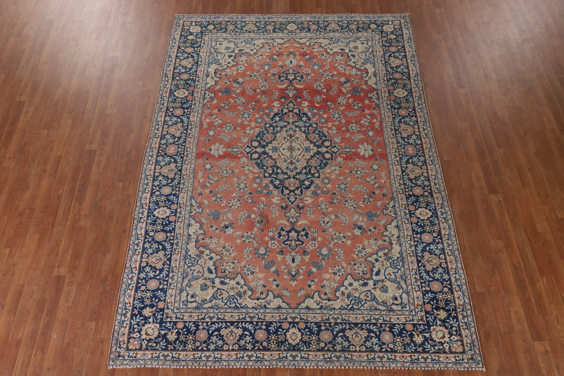 A Beautiful Genuine Persia ( Persia ) Kashan rug is Hand Knotted by skillful weavers in Persia ( Persia ) with 100% Wool Material. This rug is in Very Good (Low Pile-Abrash) condition. dimensions are 10' 0'' X 7' 2'' in foot and 305 X 218 in centimeter. the primary color is Coral.