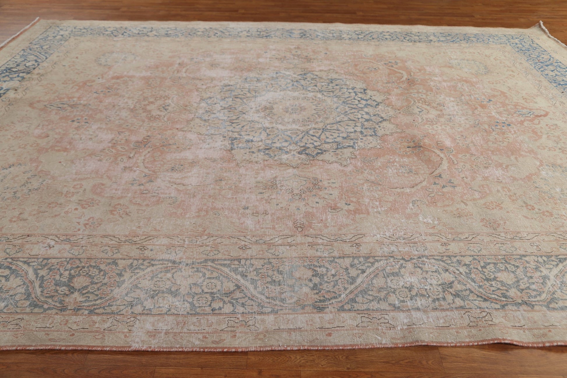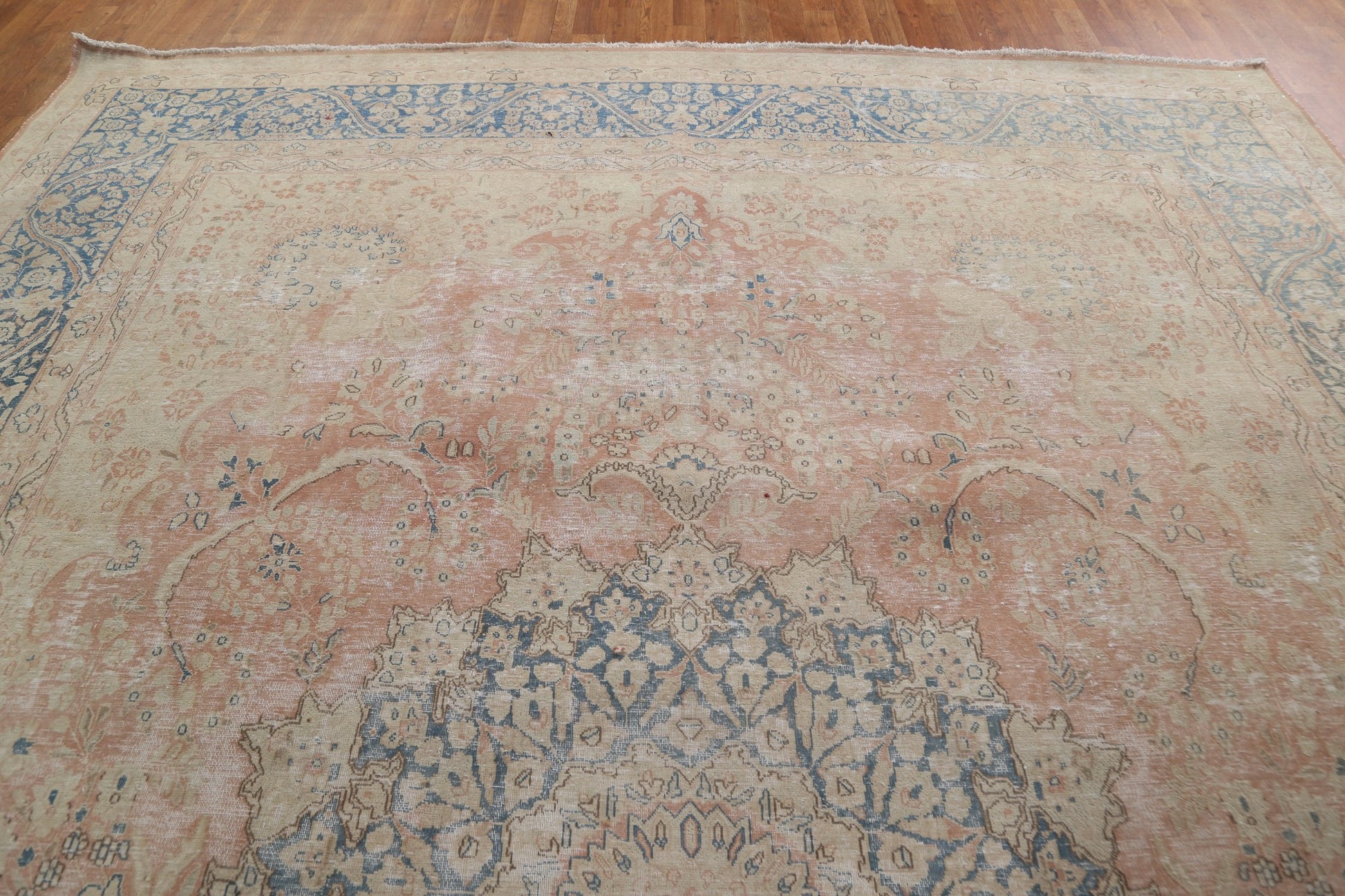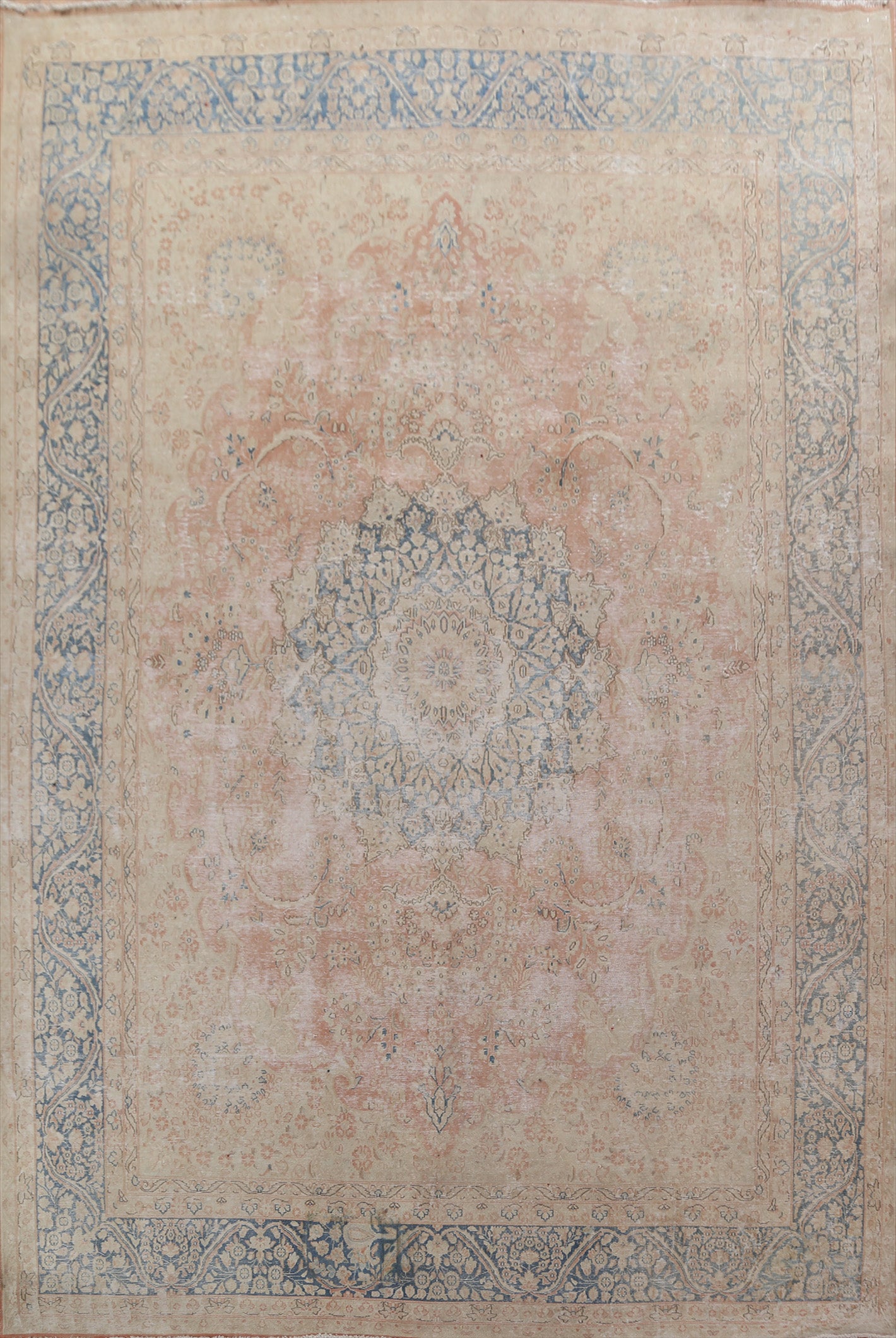 A Beautiful Genuine Persia ( Persia ) Kerman rug is Hand Knotted by skillful weavers in Persia ( Persia ) with 100% Wool Material. This rug is in Very Good (Evenly Low Pile) condition. dimensions are 13' 0'' X 9' 10'' in foot and 396 X 300 in centimeter. the primary color is Coral.