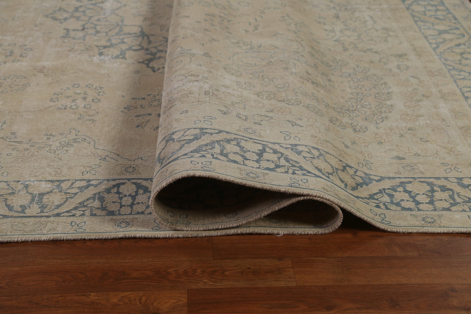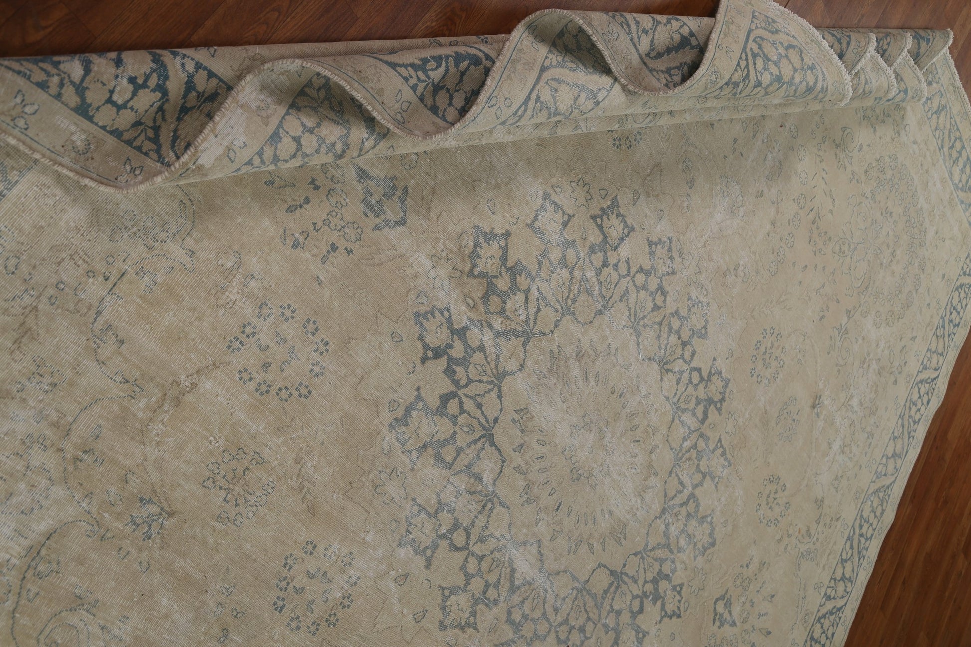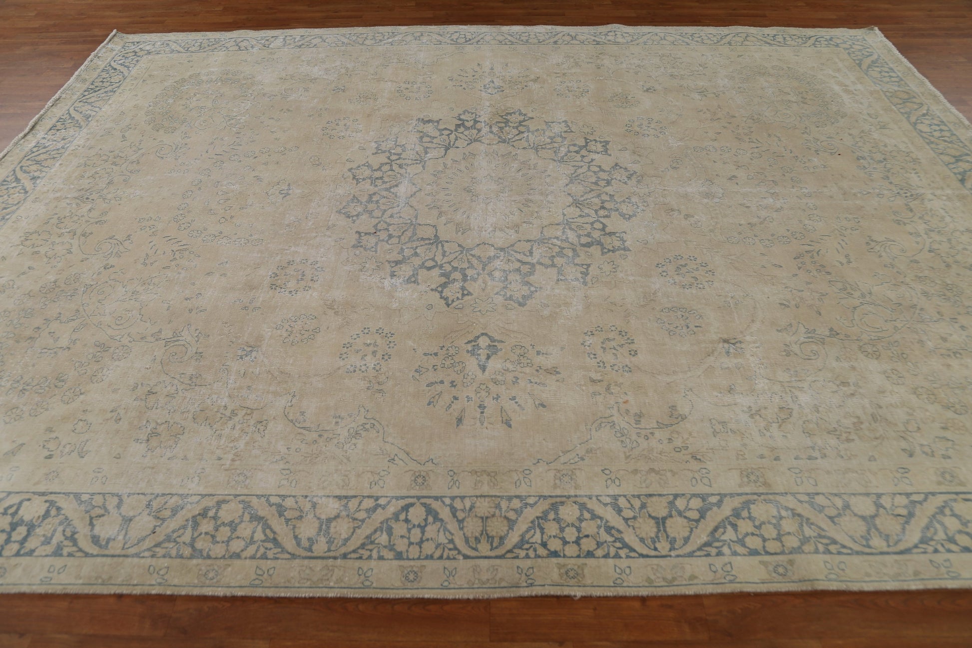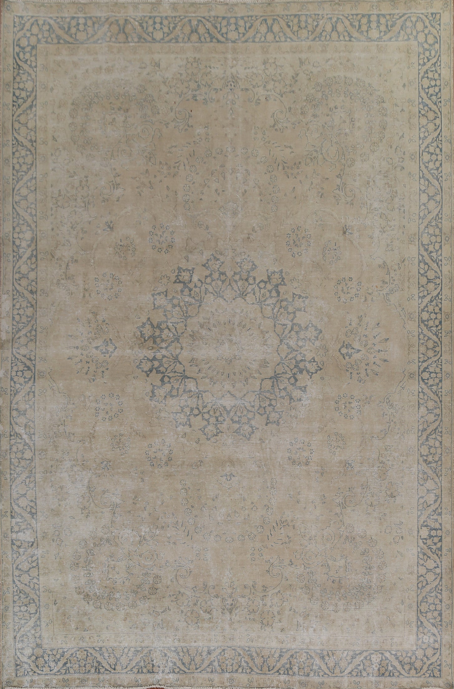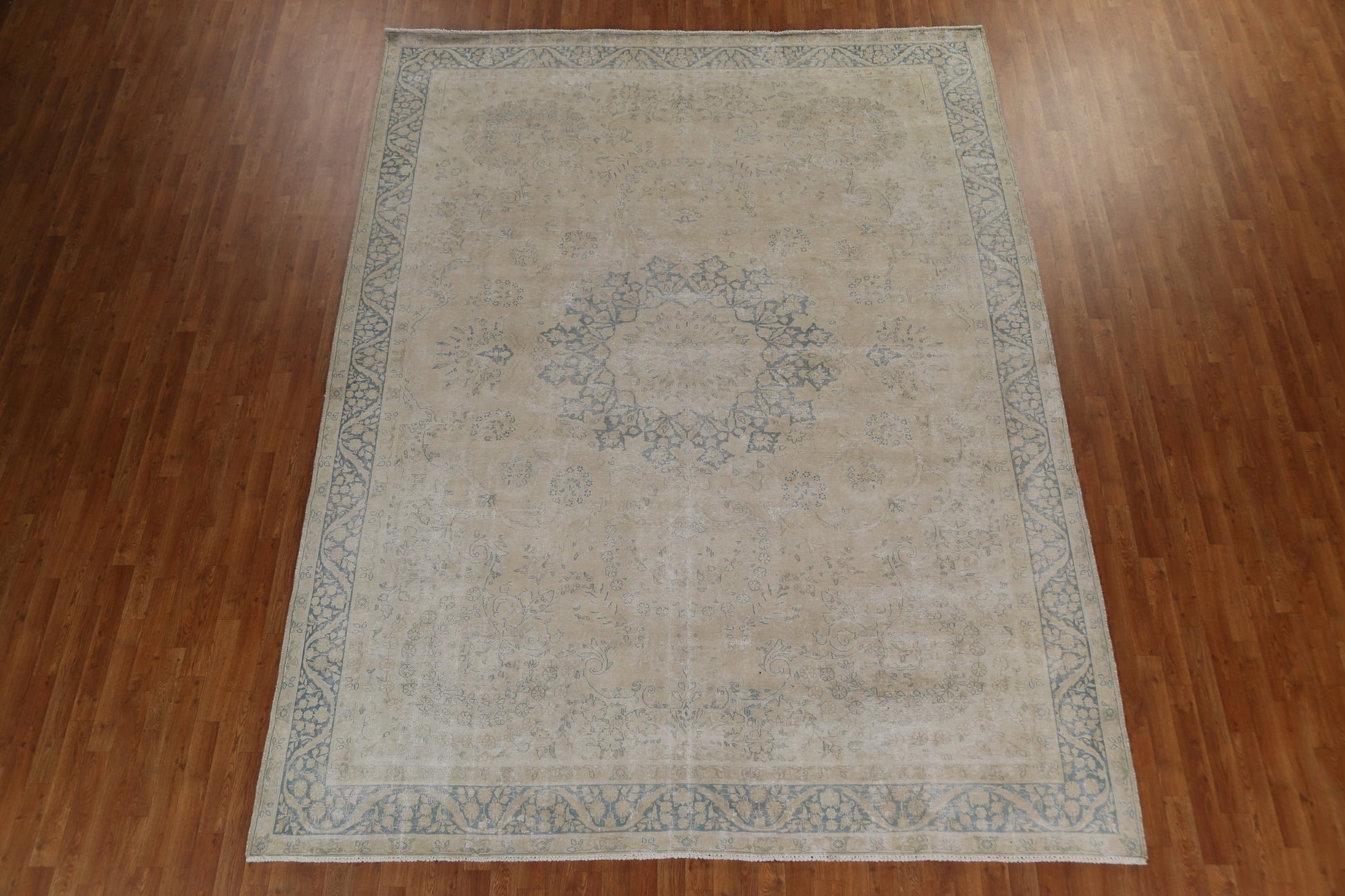 A Beautiful Genuine Persia ( Persia ) Kerman rug is Hand Knotted by skillful weavers in Persia ( Persia ) with 100% Wool Material. This rug is in Very Good (Evenly Low Pile) condition. dimensions are 11' 11'' X 9' 0'' in foot and 363 X 274 in centimeter. the primary color is Beige & Ivories.
