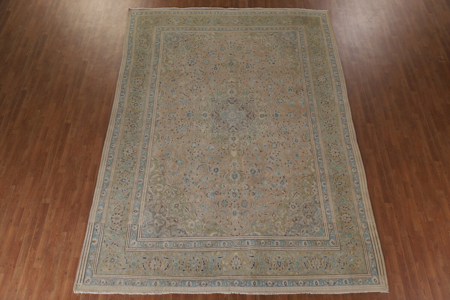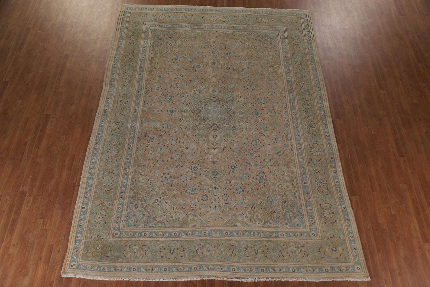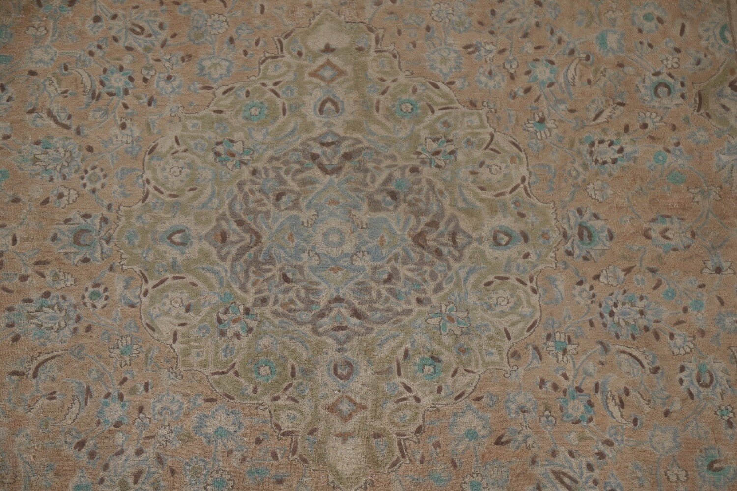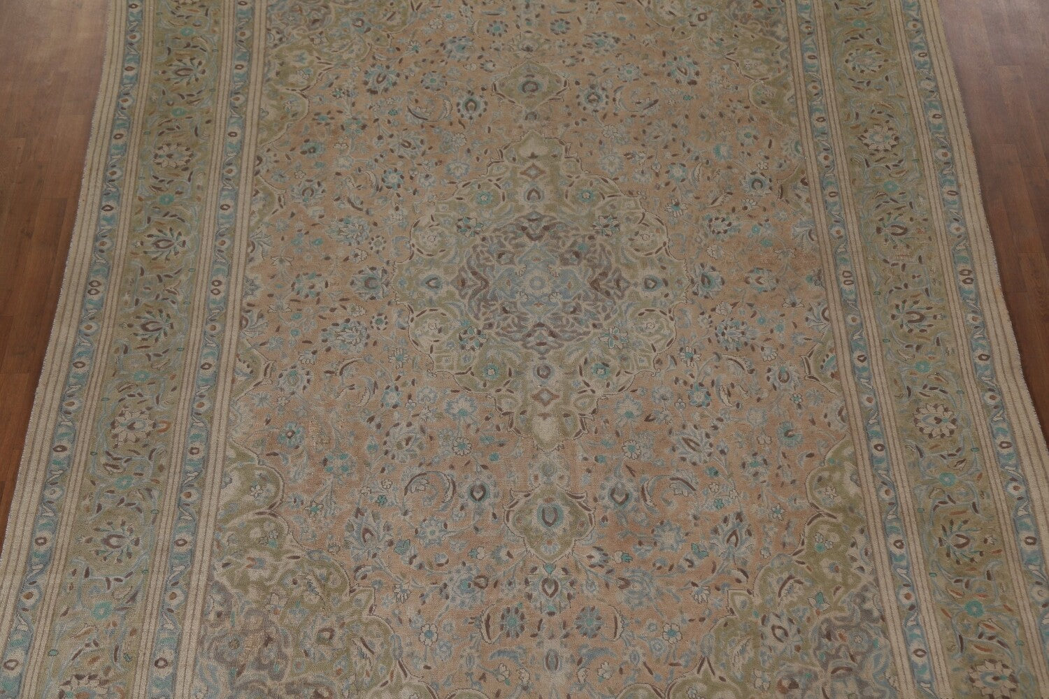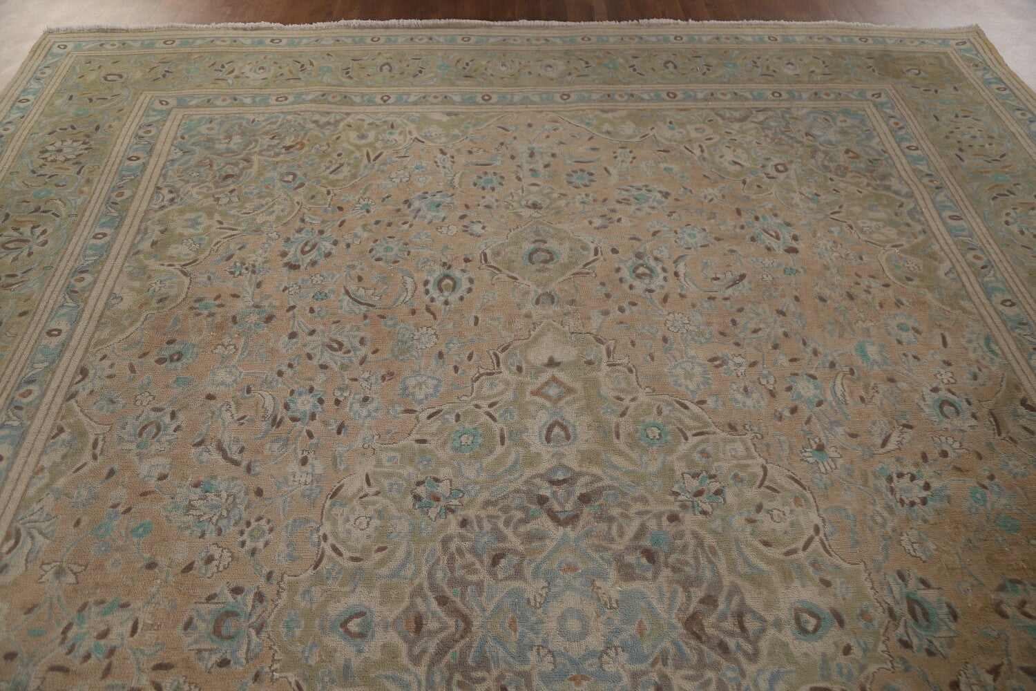 A Beautiful Genuine Persia ( Persia ) Mashad rug is Hand Knotted by skillful weavers in Persia ( Persia ) with 100% Wool Material. This rug is in Very Good (Evenly Low Pile-Repair) condition. dimensions are 12' 8'' X 9' 6'' in foot and 386 X 290 in centimeter. the primary color is Coral.