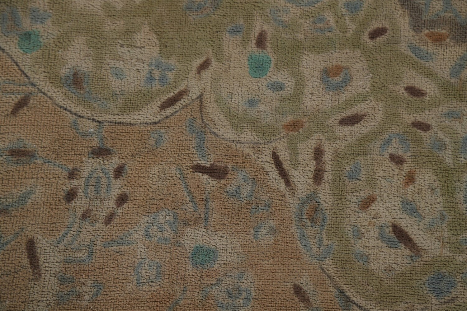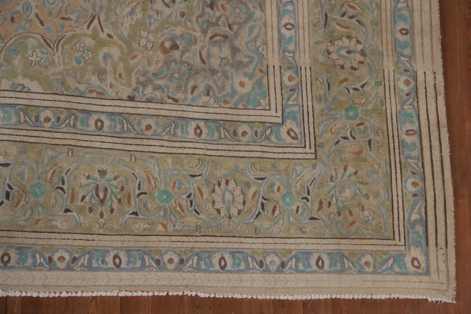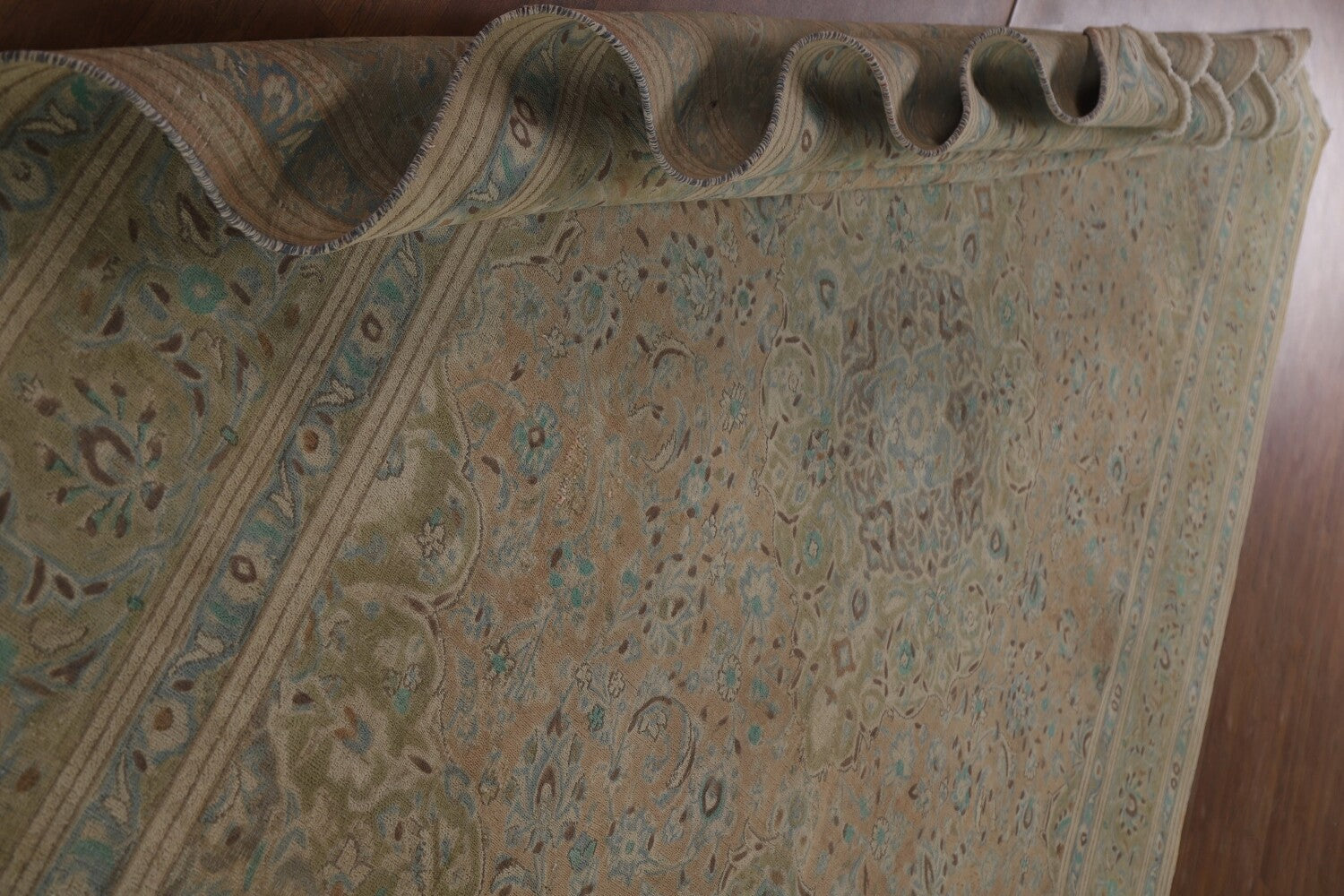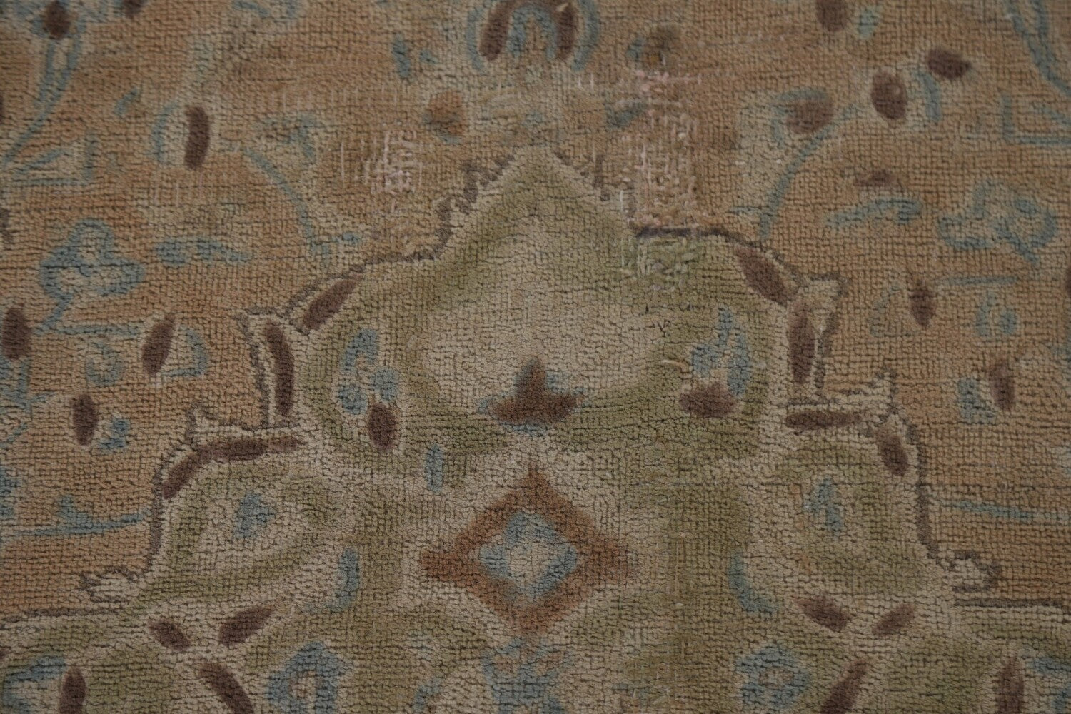 A Beautiful Genuine Persia ( Persia ) Mashad rug is Hand Knotted by skillful weavers in Persia ( Persia ) with 100% Wool Material. This rug is in Very Good (Evenly Low Pile-Repair) condition. dimensions are 12' 8'' X 9' 6'' in foot and 386 X 290 in centimeter. the primary color is Coral.