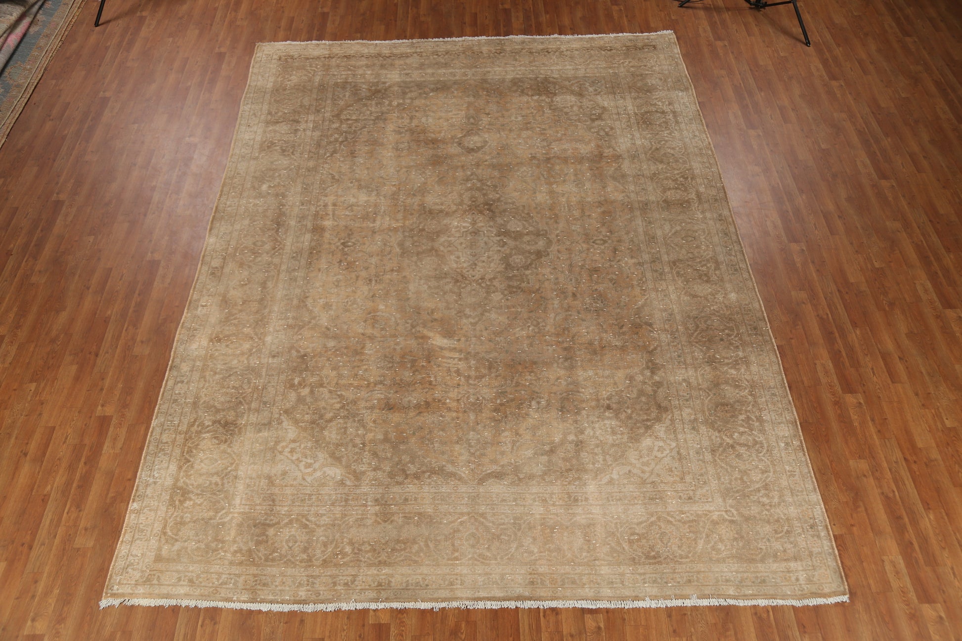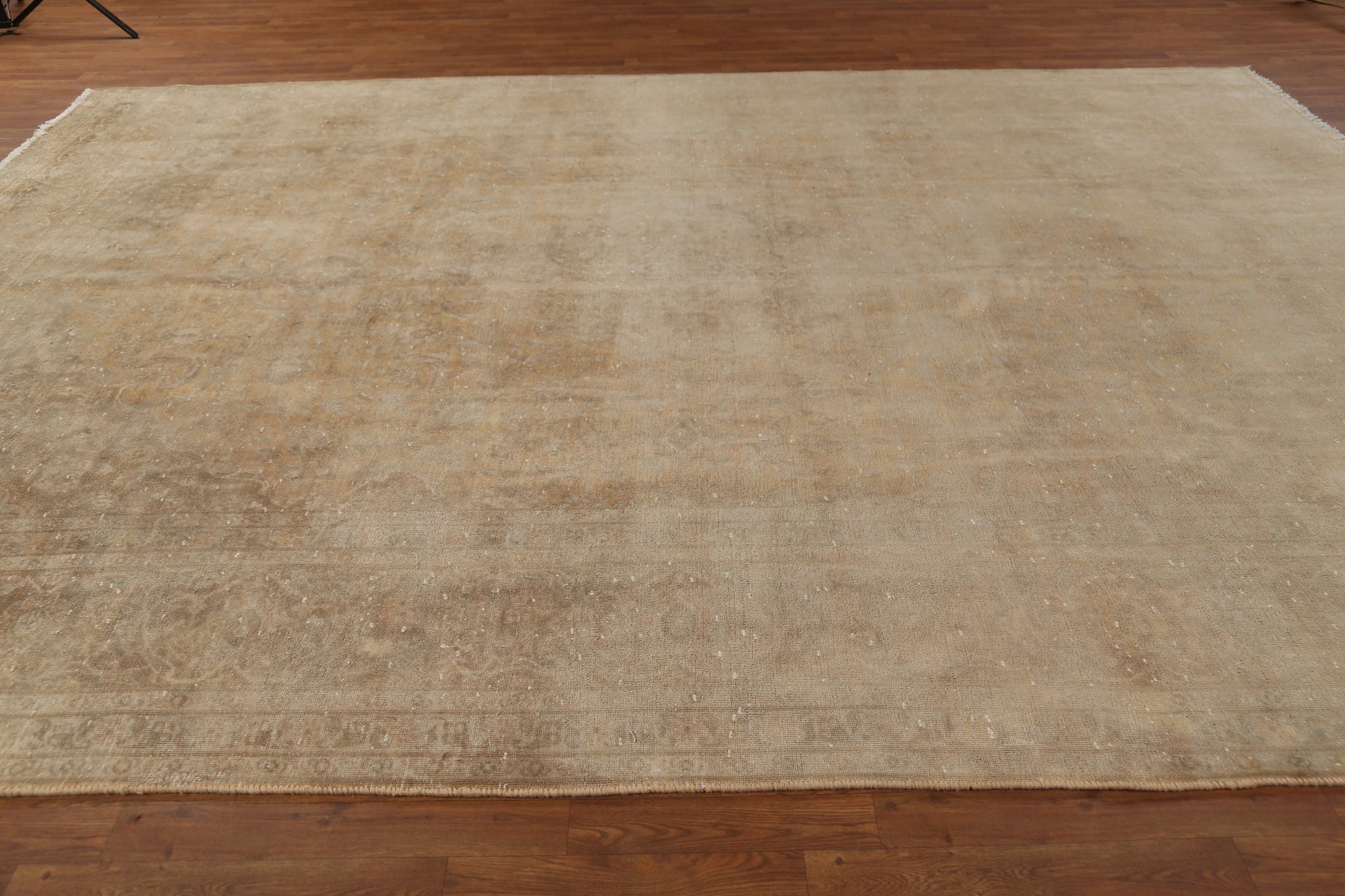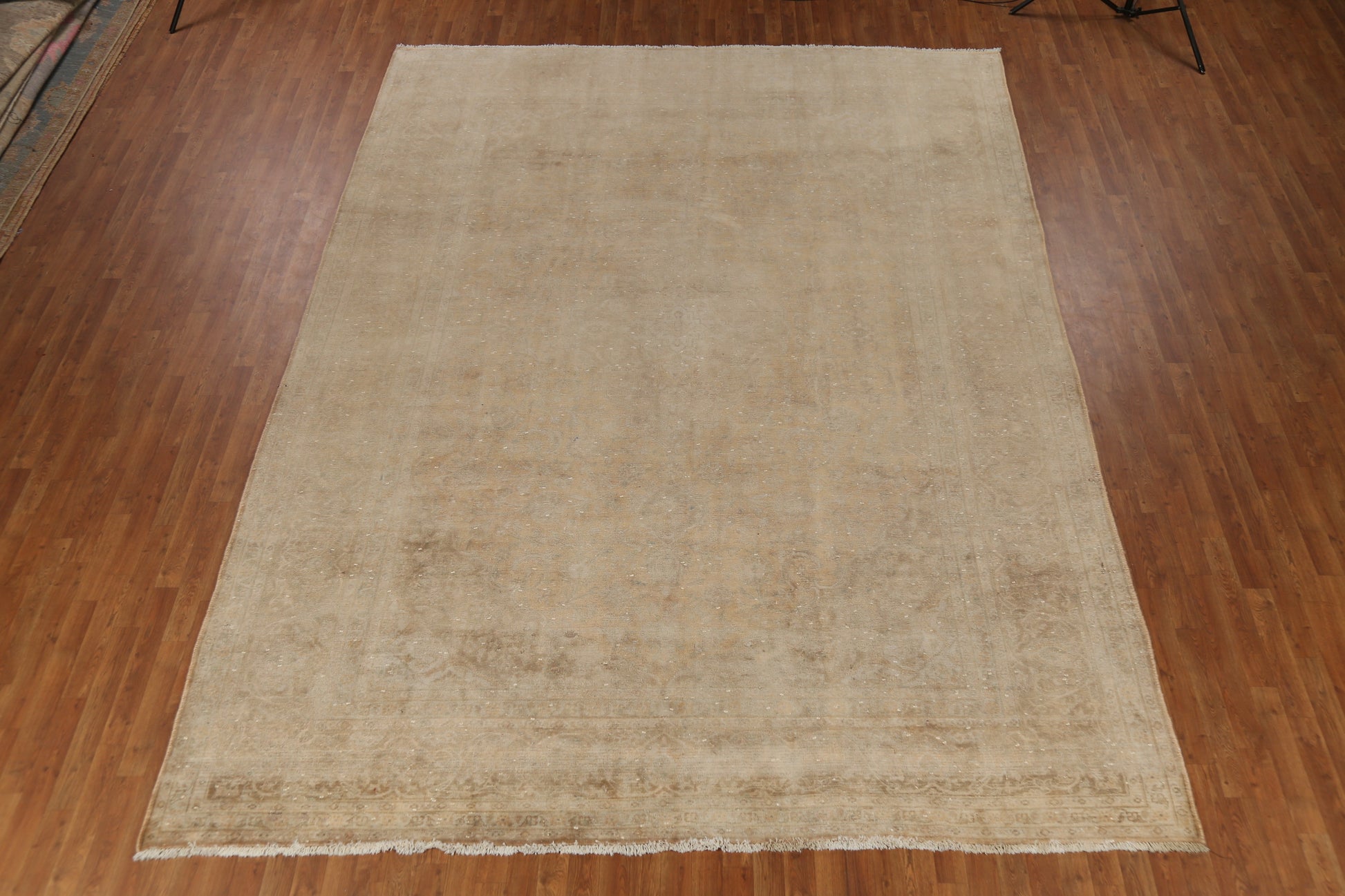 A Beautiful Genuine Persia ( Persia ) Mashad rug is Hand Knotted by skillful weavers in Persia ( Persia ) with 100% Wool Material. This rug is in Good (Low Pile-Faded) condition. dimensions are 13' 1'' X 9' 8'' in foot and 399 X 295 in centimeter. the primary color is Brown.