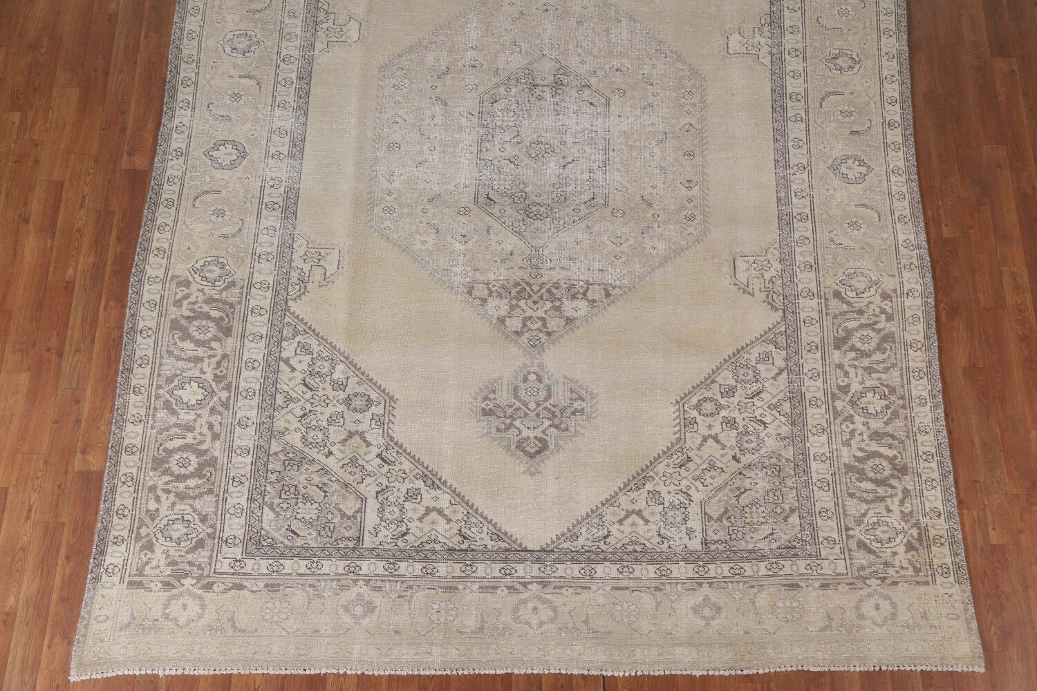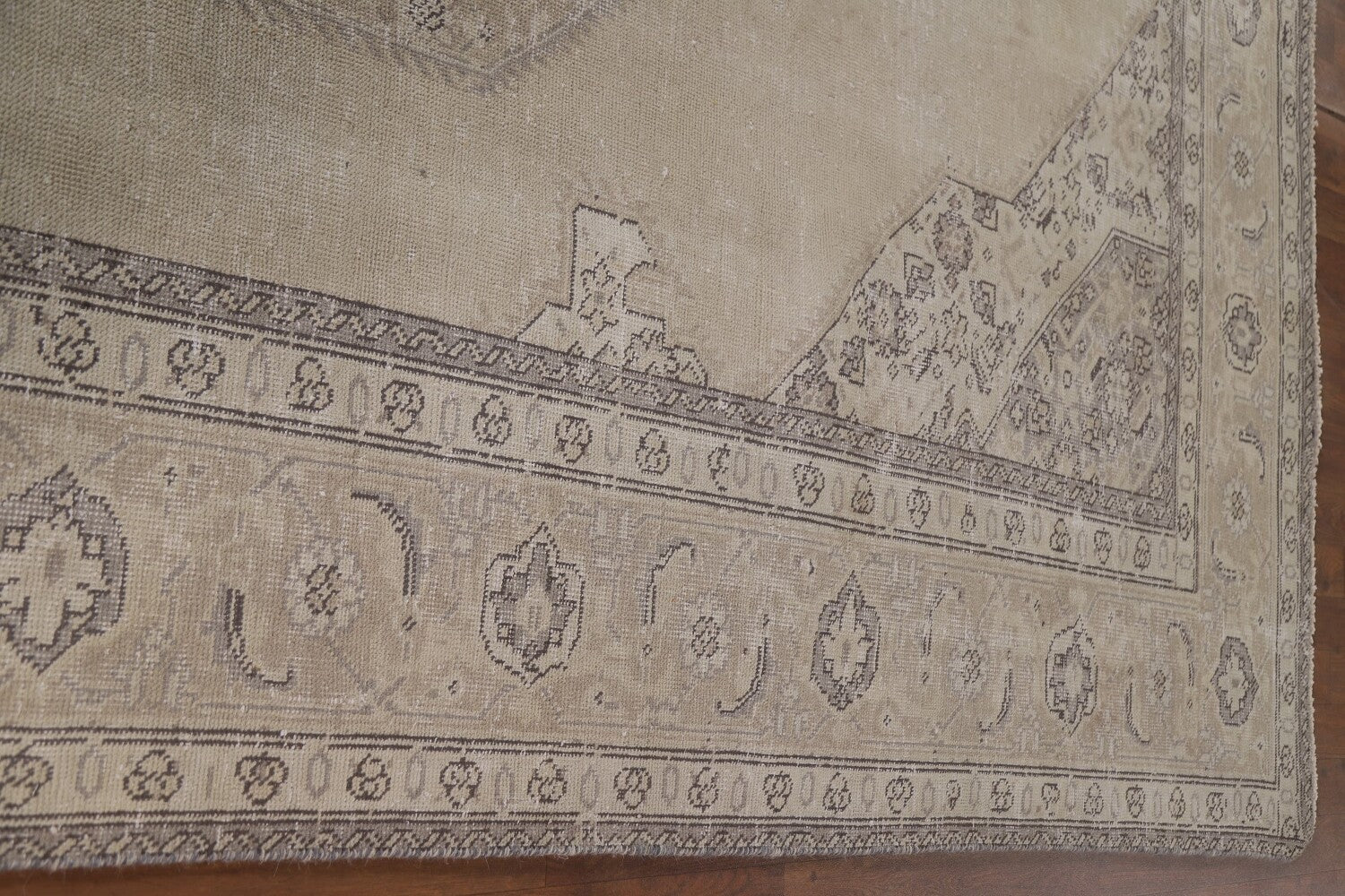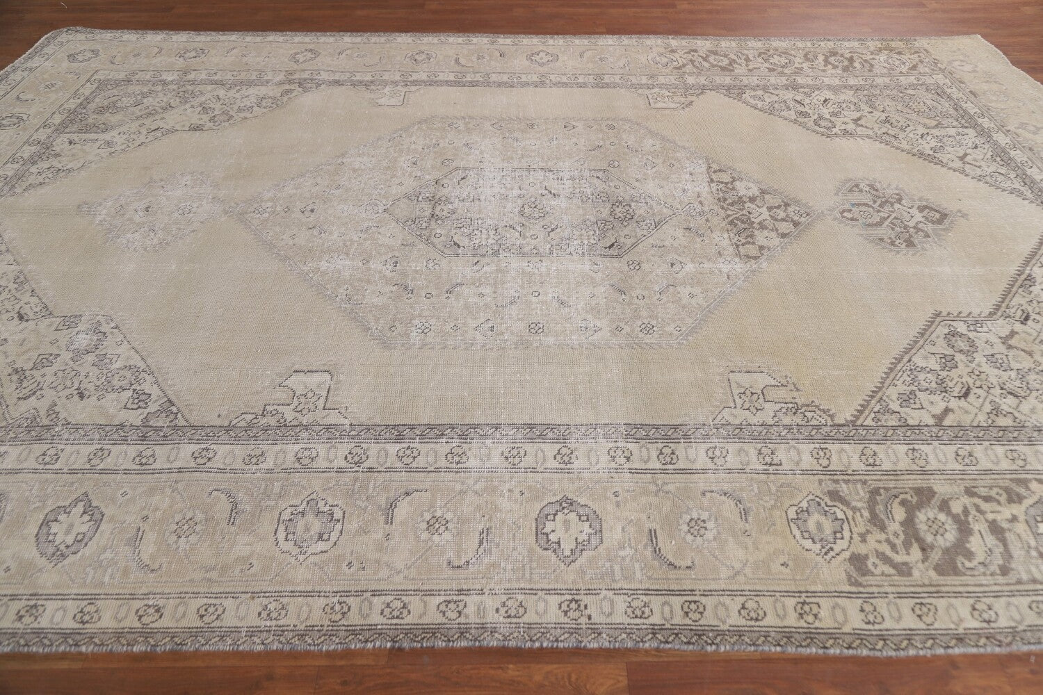 A Beautiful Genuine Persia ( Persia ) Mashad rug is Hand Knotted by skillful weavers in Persia ( Persia ) with 100% Wool Material. This rug is in Very Good (Evenly Low Pile) condition. dimensions are 11' 4'' X 8' 1'' in foot and 345 X 246 in centimeter. the primary color is Beige & Ivories.