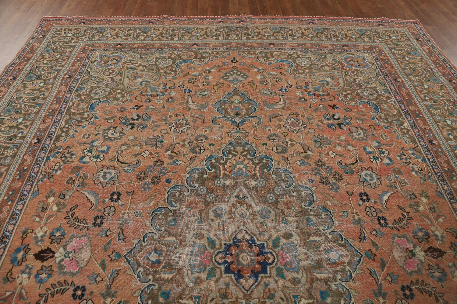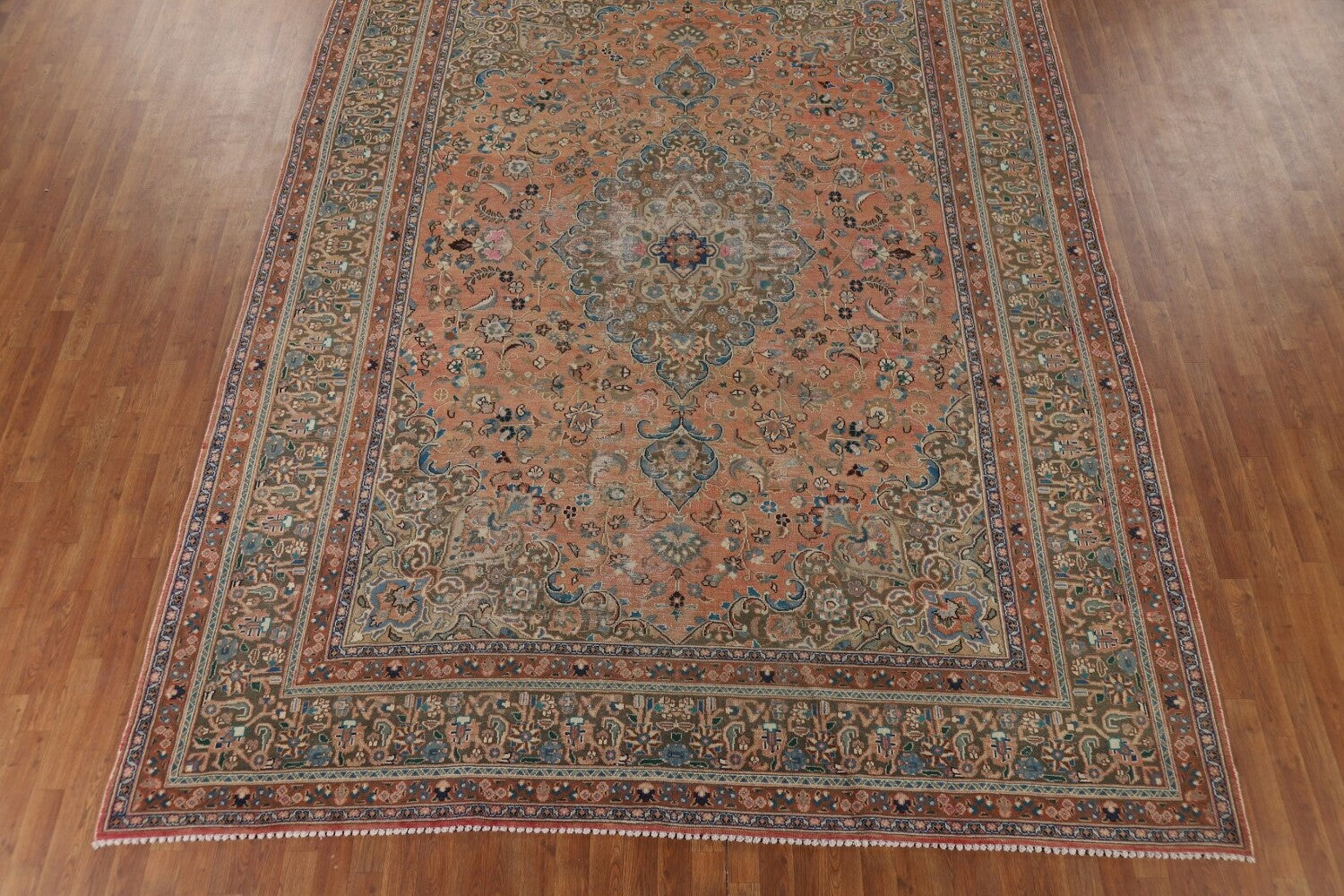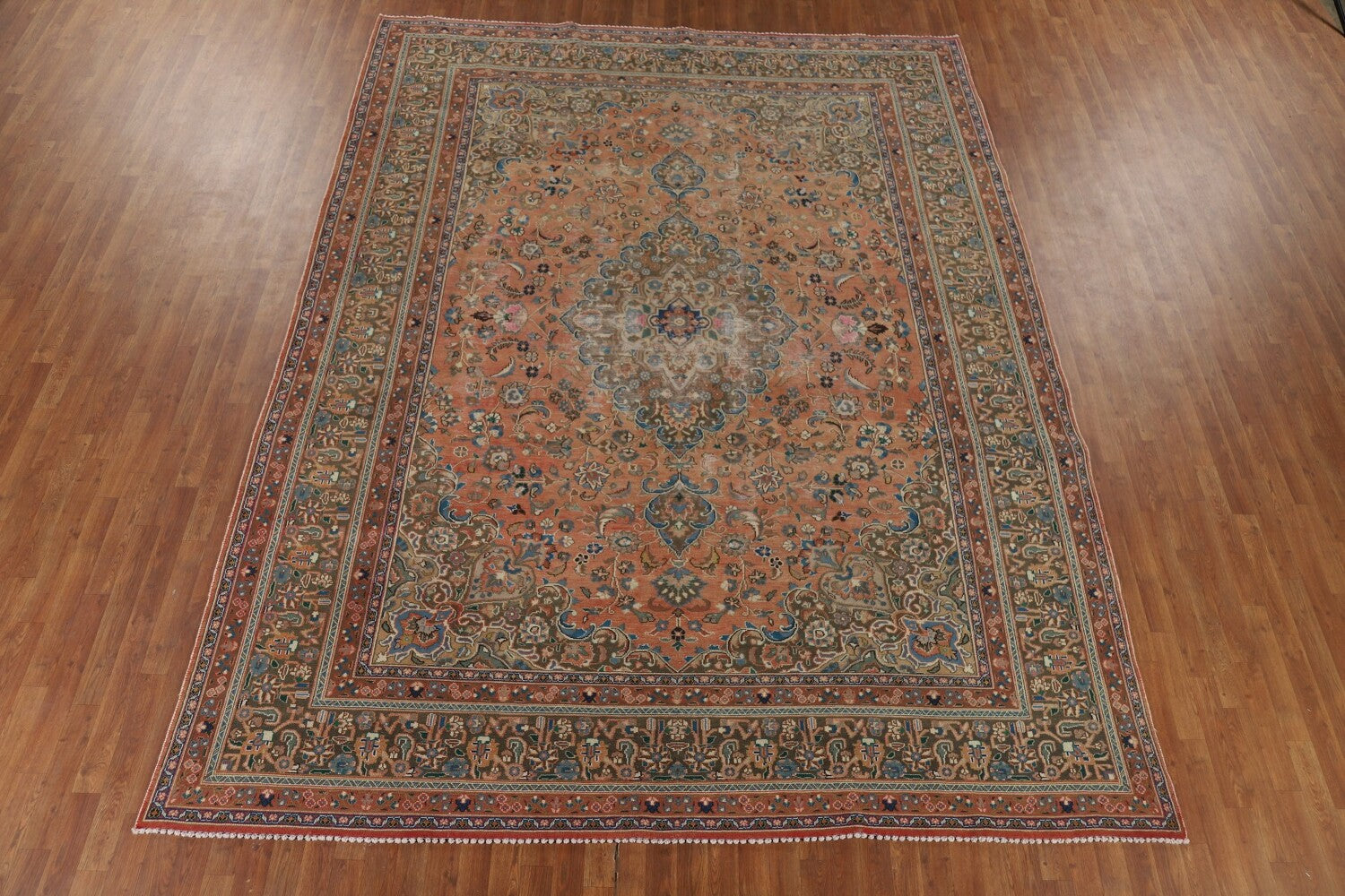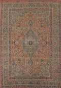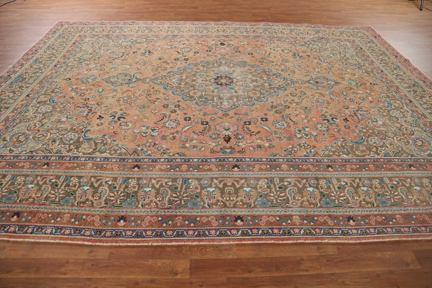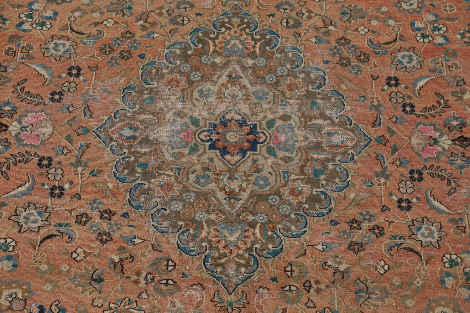 A Beautiful Genuine Persia ( Persia ) Mashad rug is Hand Knotted by skillful weavers in Persia ( Persia ) with 100% Wool Material. This rug is in Very Good (Evenly Low Pile) condition. dimensions are 12' 5'' X 9' 5'' in foot and 378 X 287 in centimeter. the primary color is Coral.