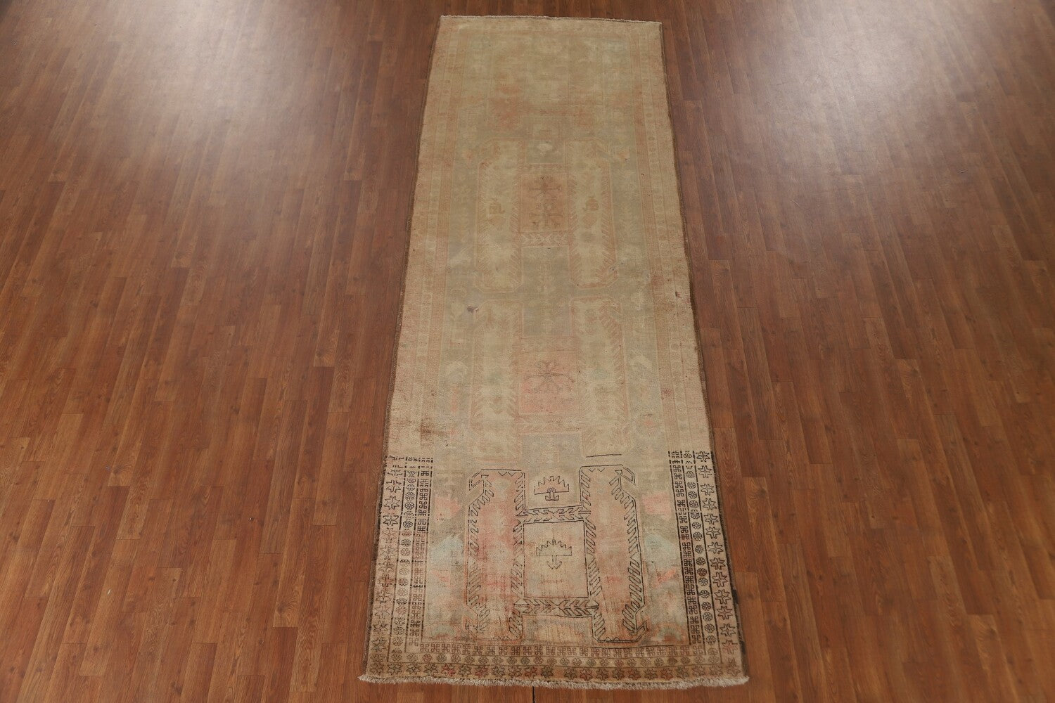 A Beautiful Genuine Persia ( Persia ) Meshkin rug is Hand Knotted by skillful weavers in Persia ( Persia ) with 100% Wool Material. This rug is in Very Good (Abrash) condition. dimensions are 10' 11'' X 3' 11'' in foot and 333 X 119 in centimeter. the primary color is Beige & Ivories.